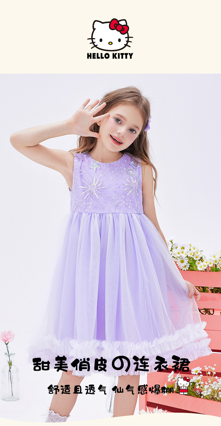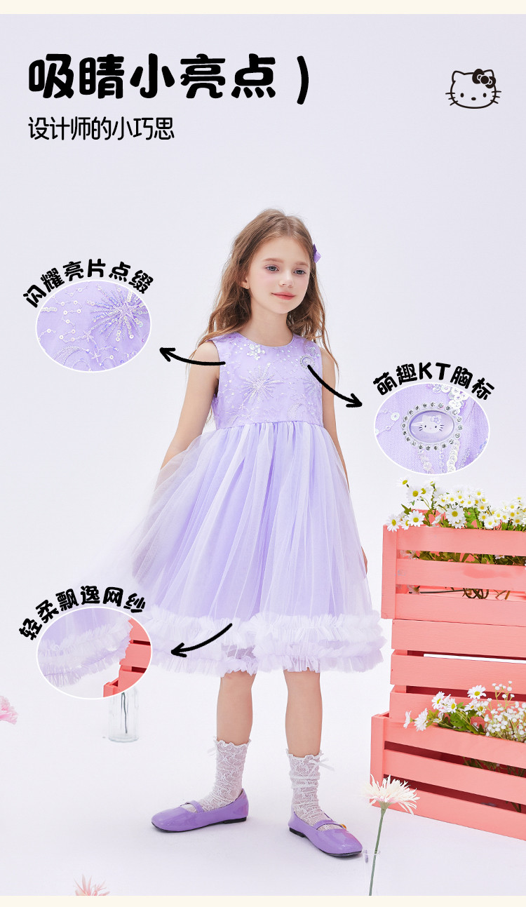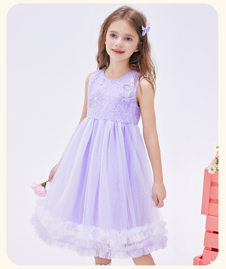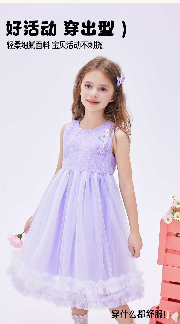 商品名称:女童夏季连衣裙2025款女宝夏装舒适可爱透气无袖网纱公主裙子 751070