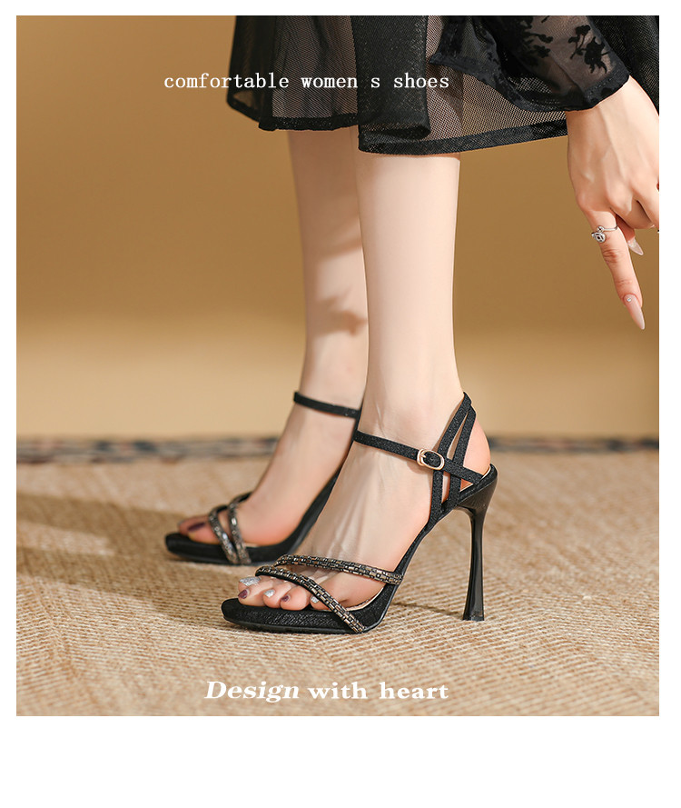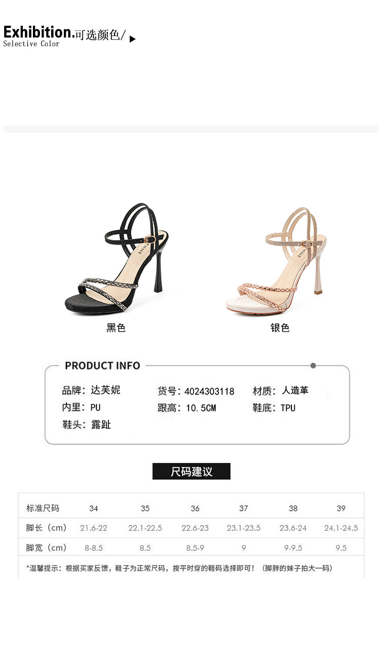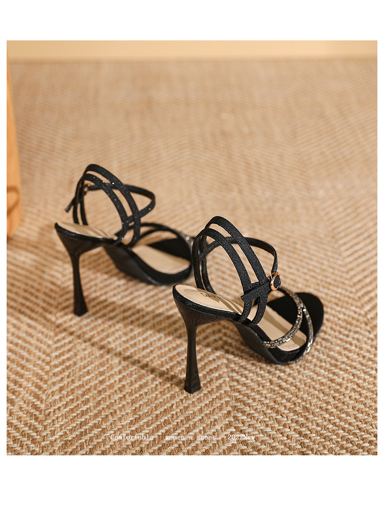 商品名称:夏季女时装凉鞋高级感性感配裙子细跟高跟鞋时尚一字带凉鞋通勤鞋 589591