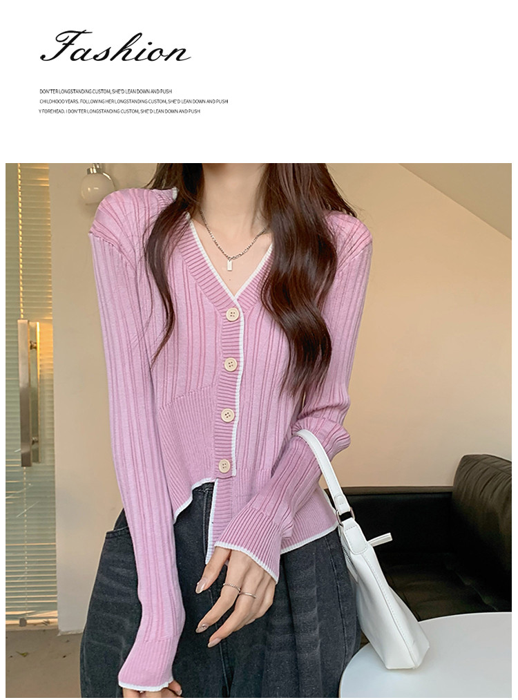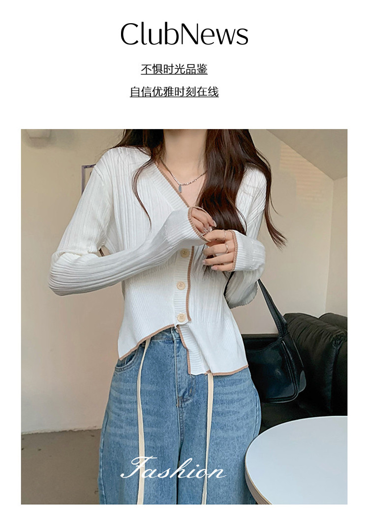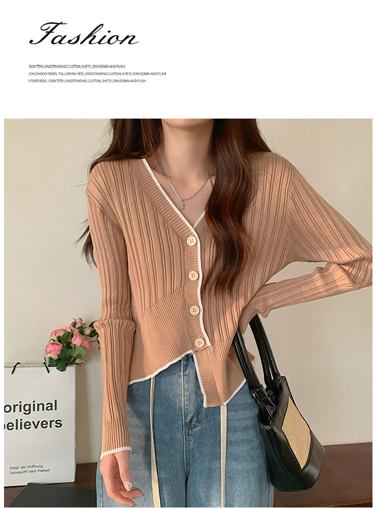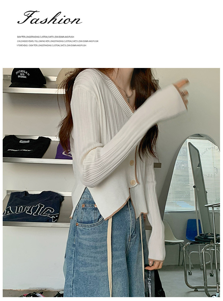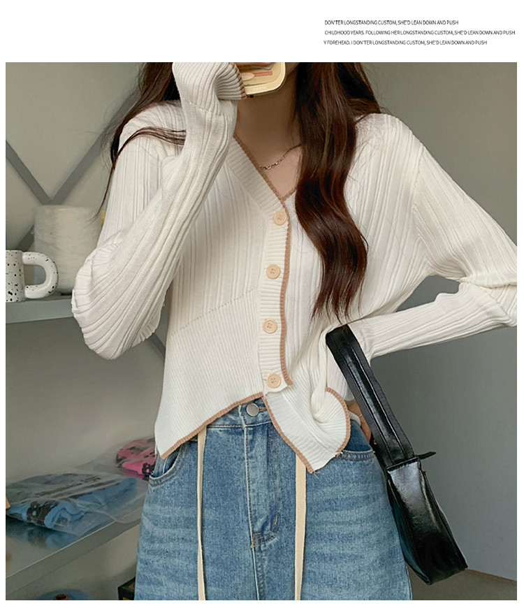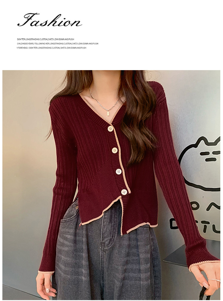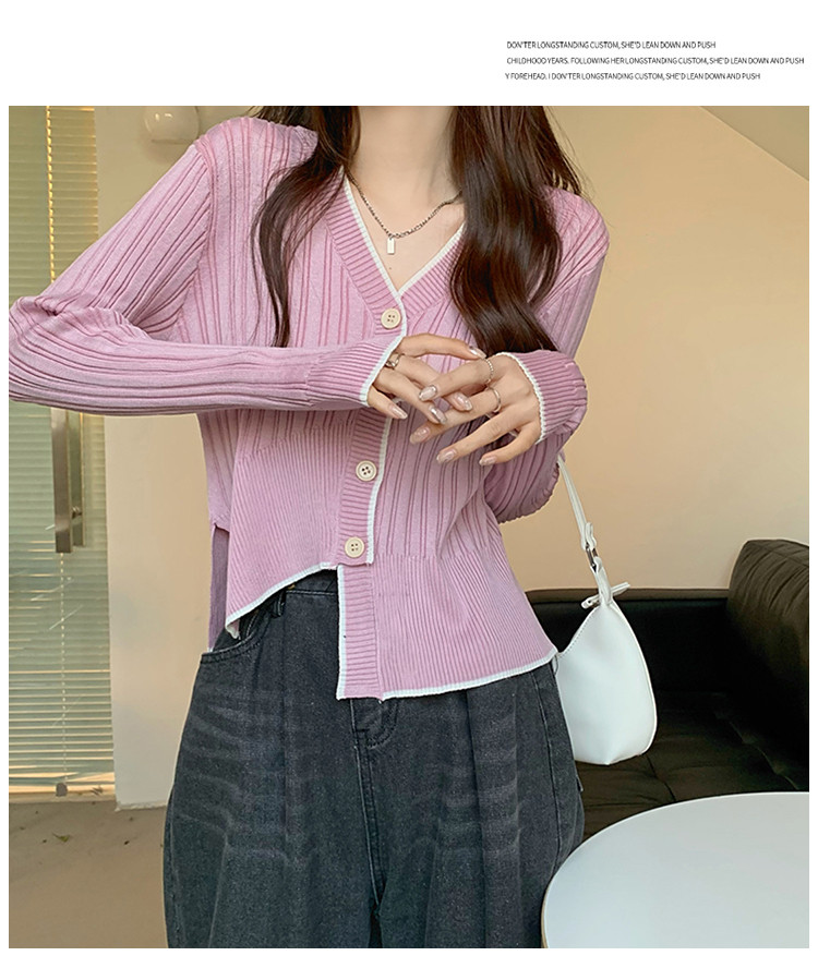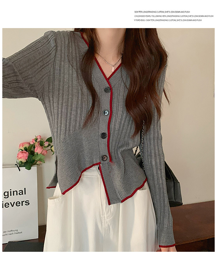 商品名称:V领长袖针织衫女不规则小众开衫上衣女 208195