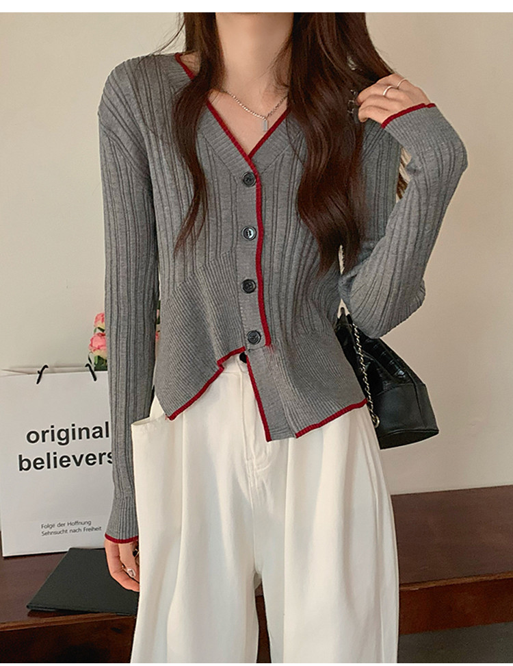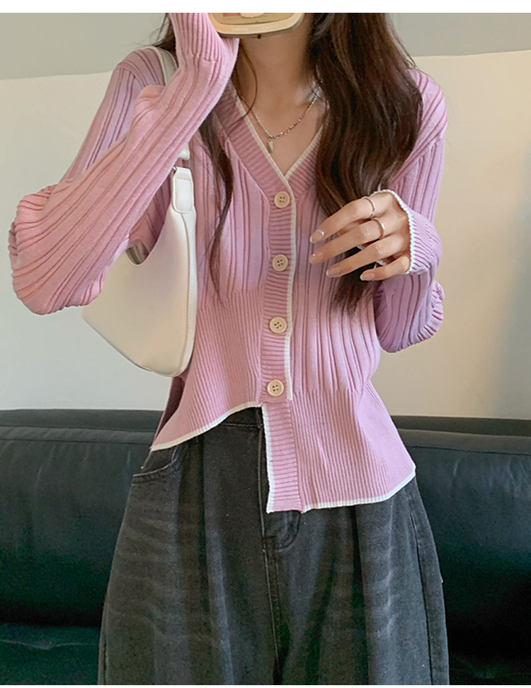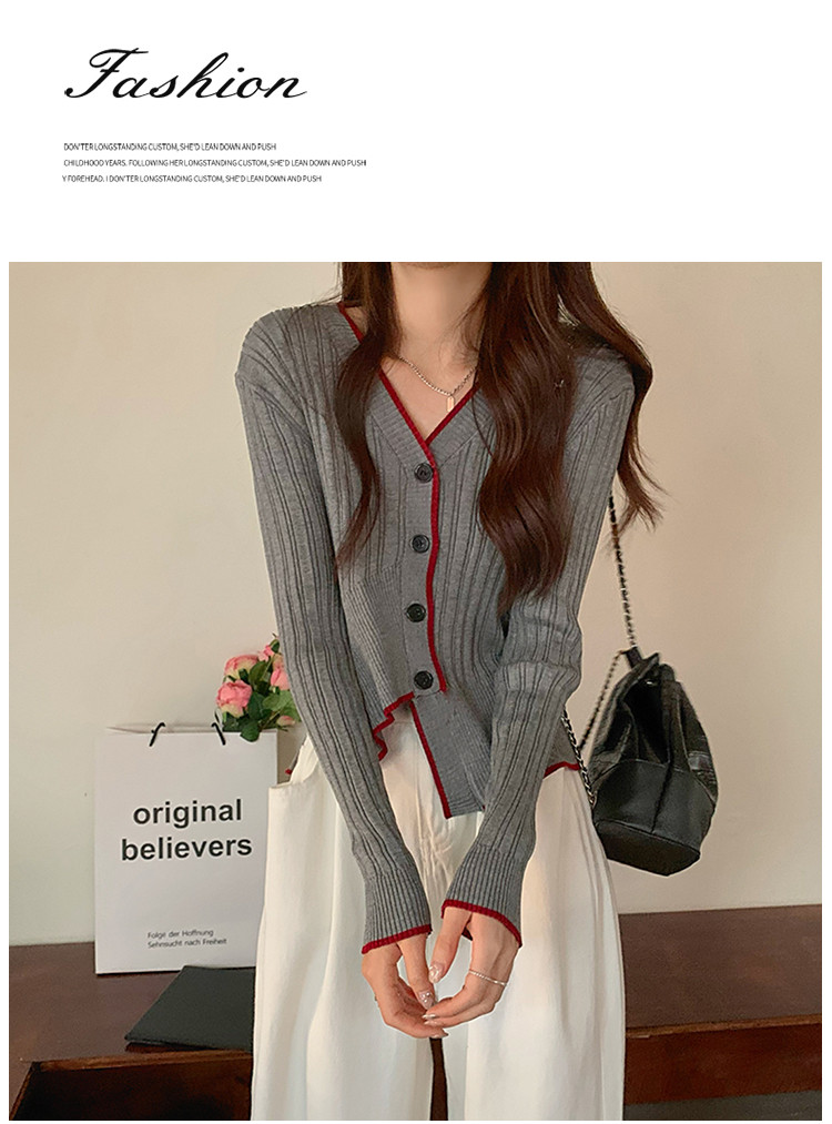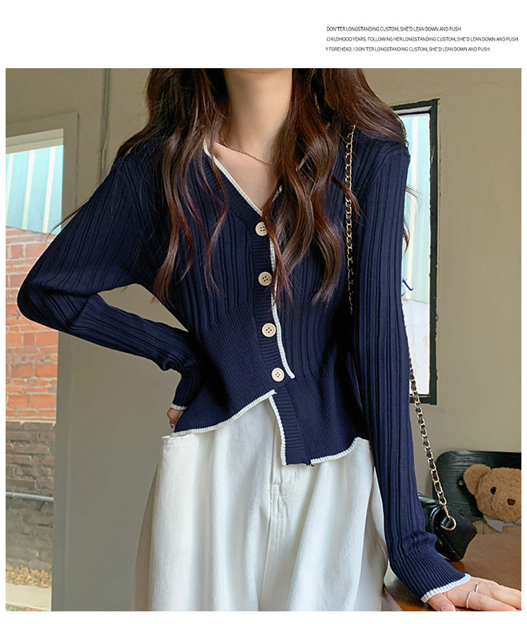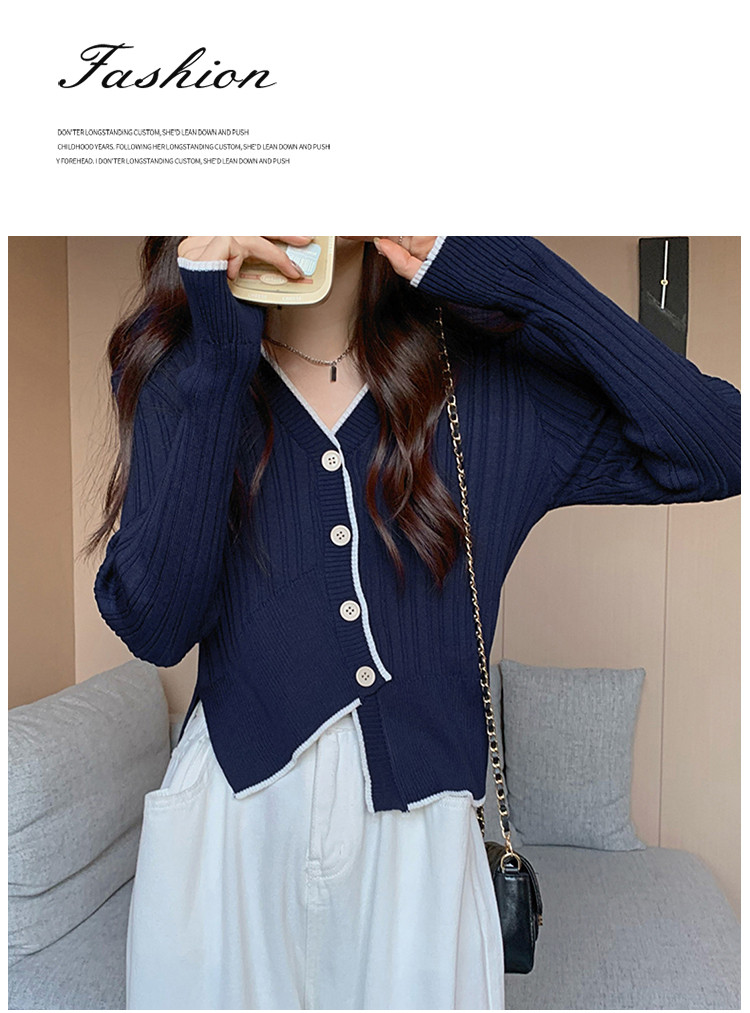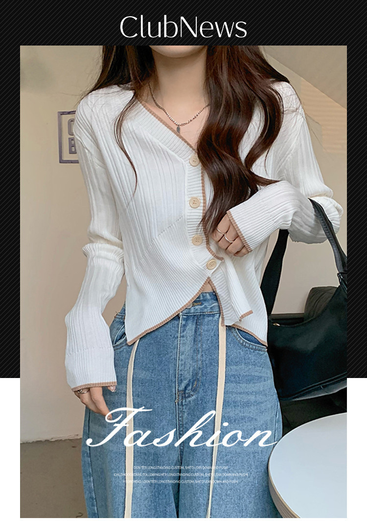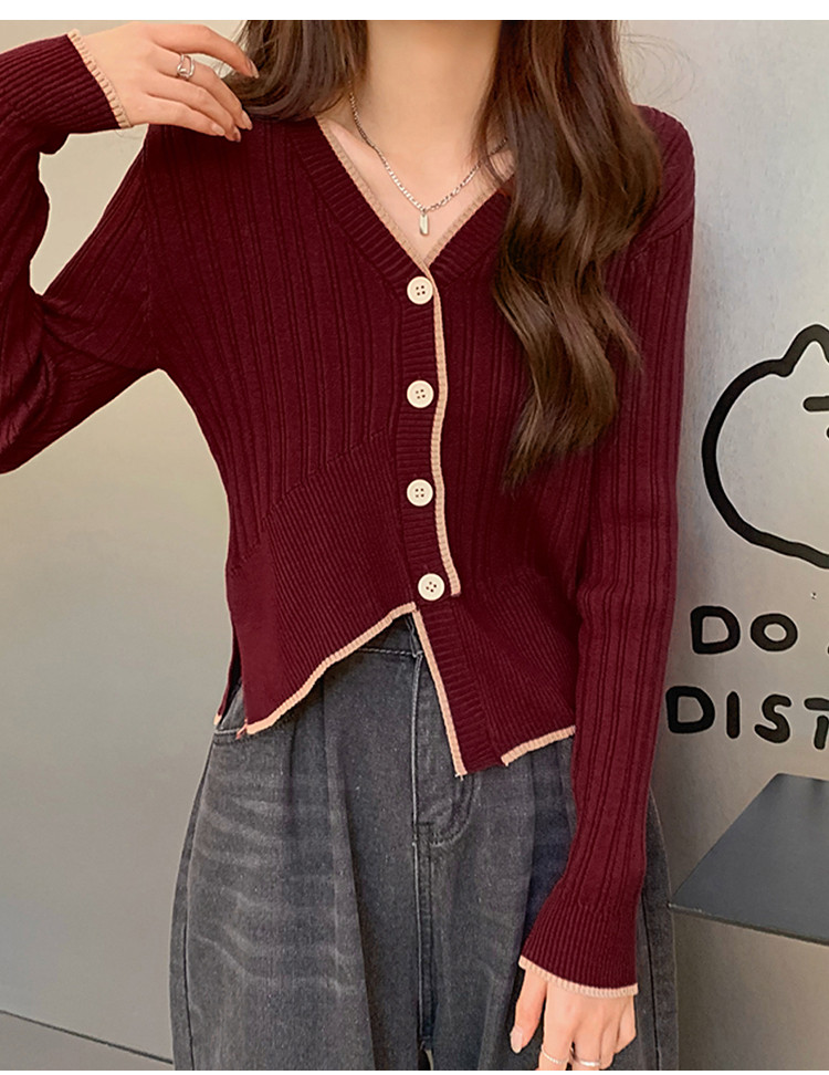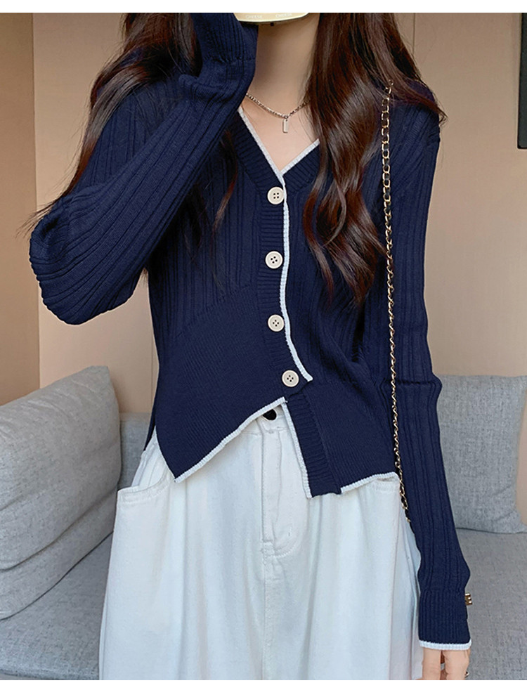 商品名称:V领长袖针织衫女不规则小众开衫上衣女 208195