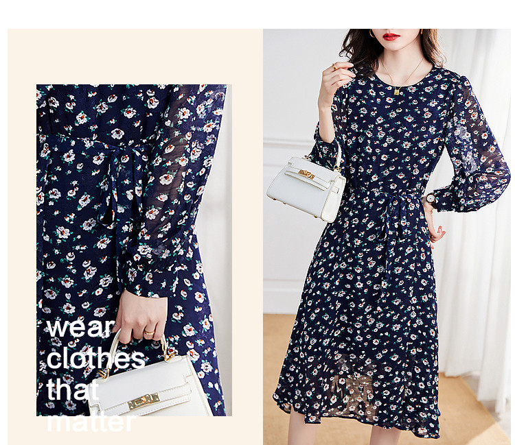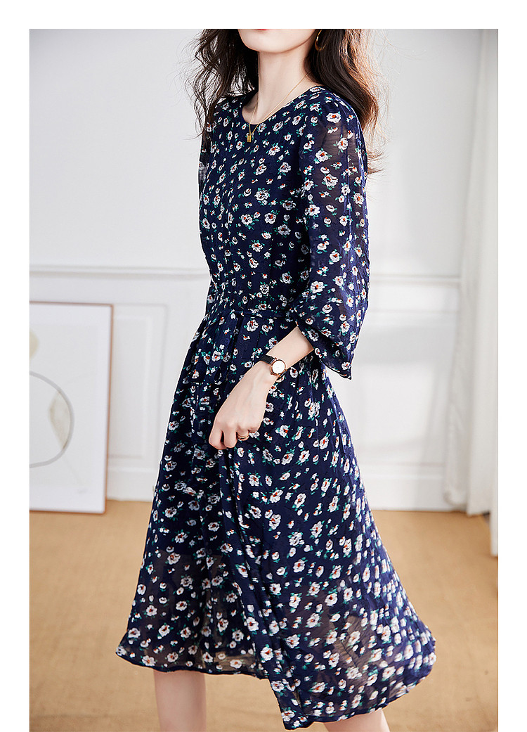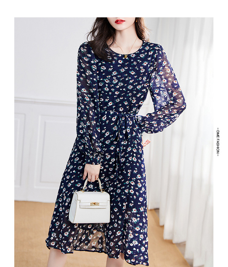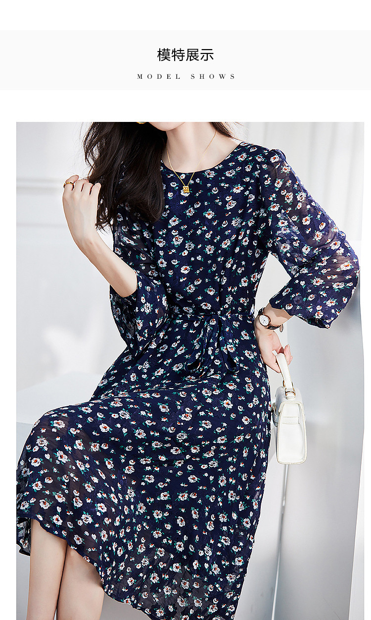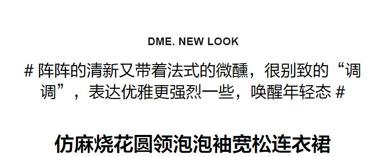 商品名称:【仿麻烧花】春秋圆领泡泡袖宽松连衣裙 237249