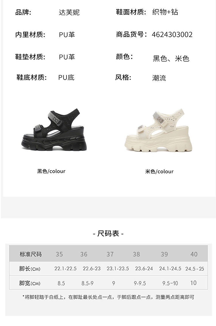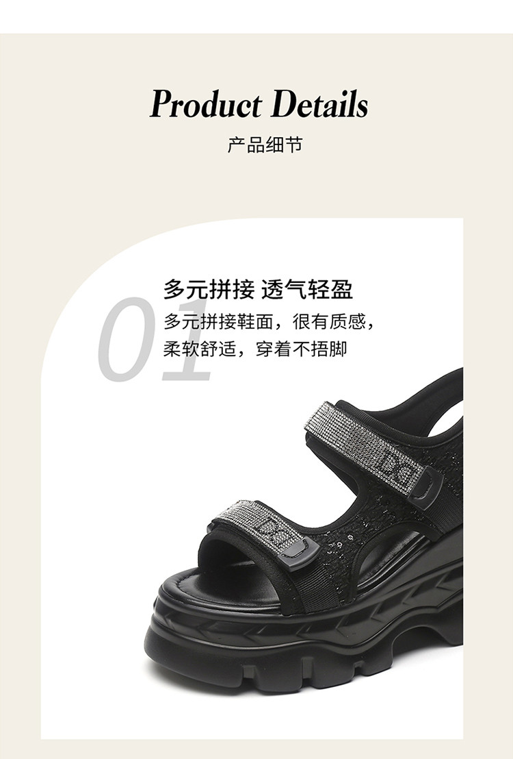 商品名称:【秒增7.5CM】夏季运动凉鞋女款休闲魔术贴一字带凉鞋女鞋 211927