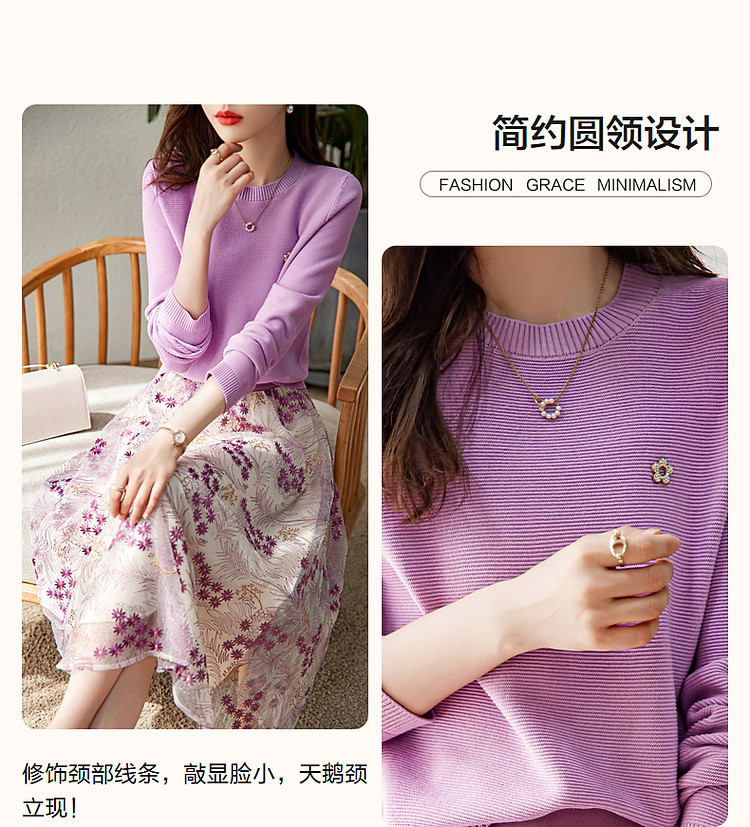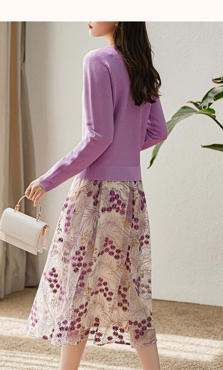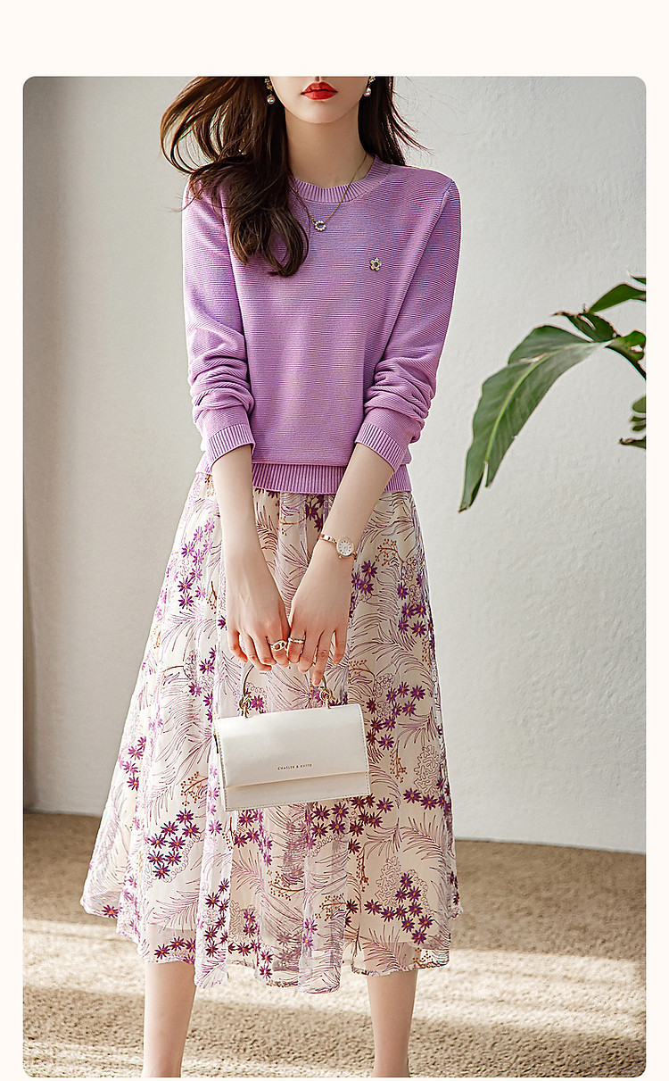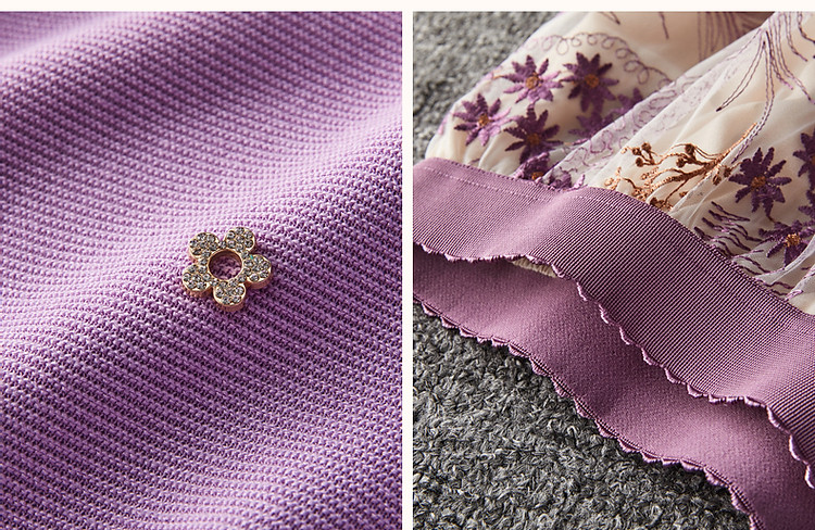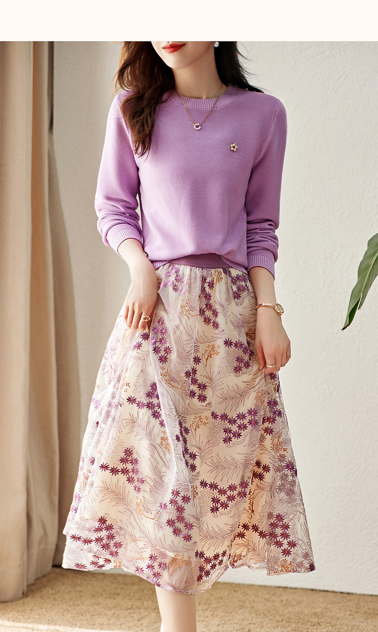 商品名称:【浪漫熏衣紫套装】春秋轻奢金属花朵上衣网纱绣花半裙两件套女 132609