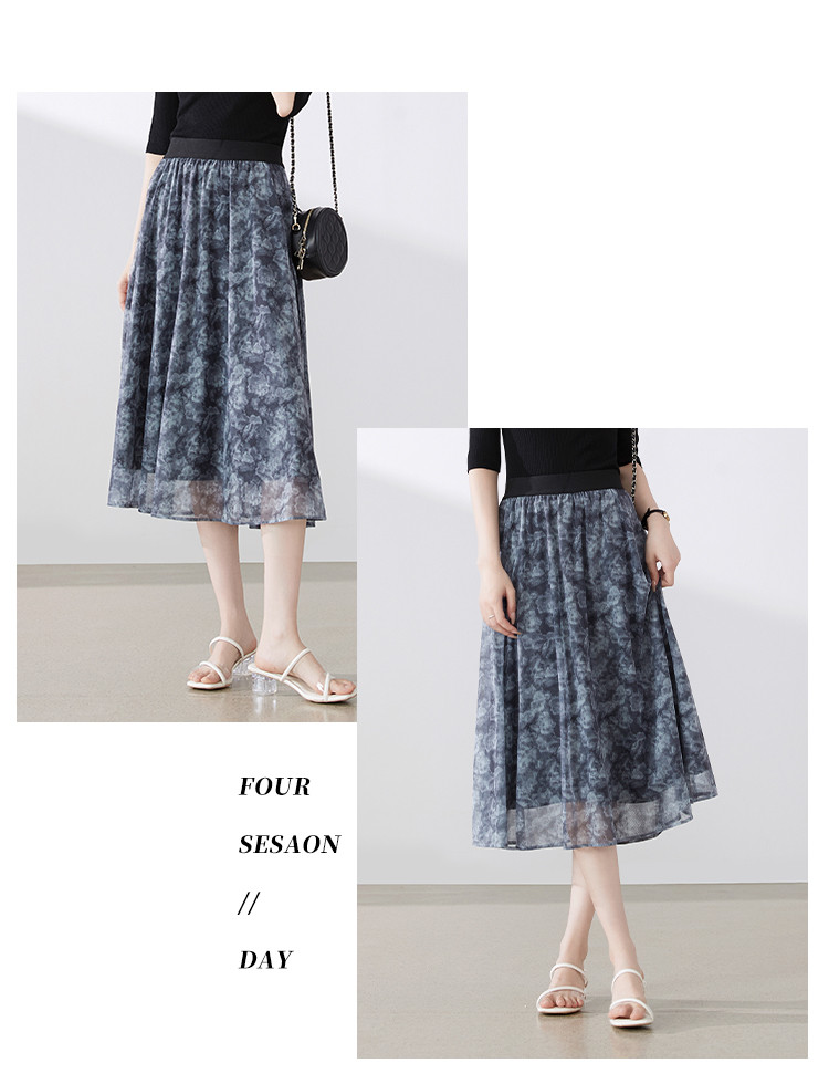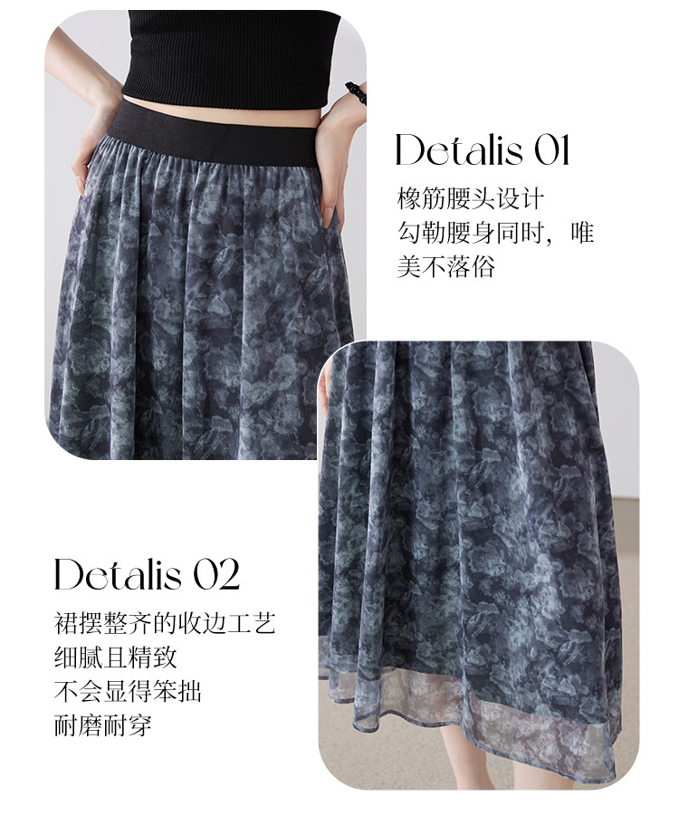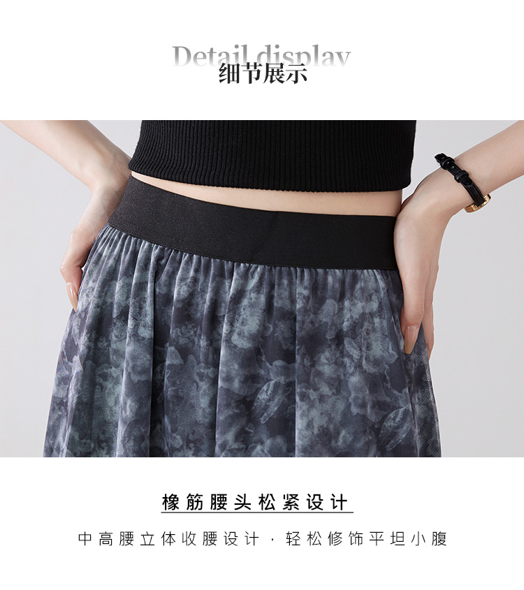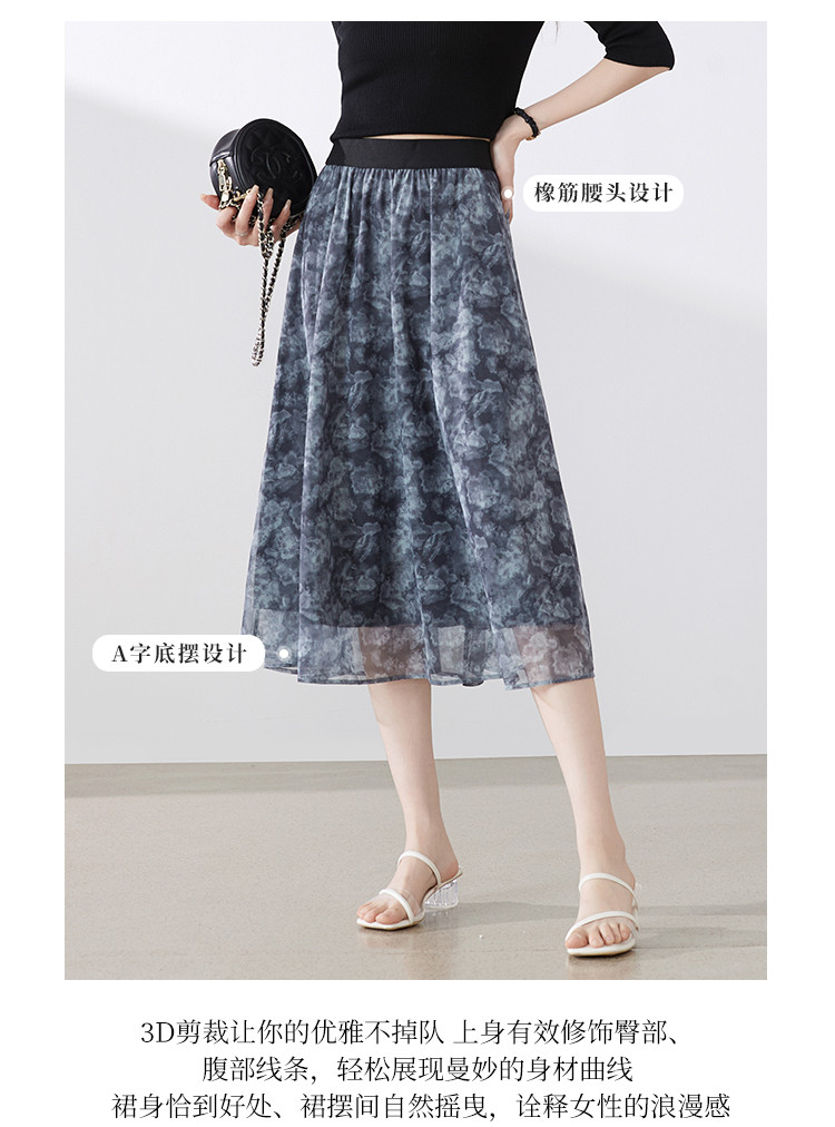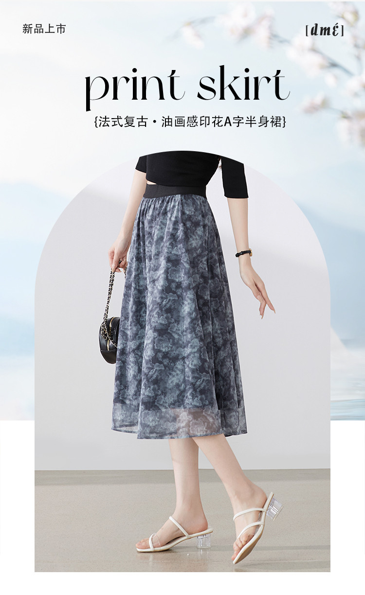 商品名称:【气质油画印花网纱裙】柔软细腻松紧高腰A字伞裙女式半身裙夏季 978625