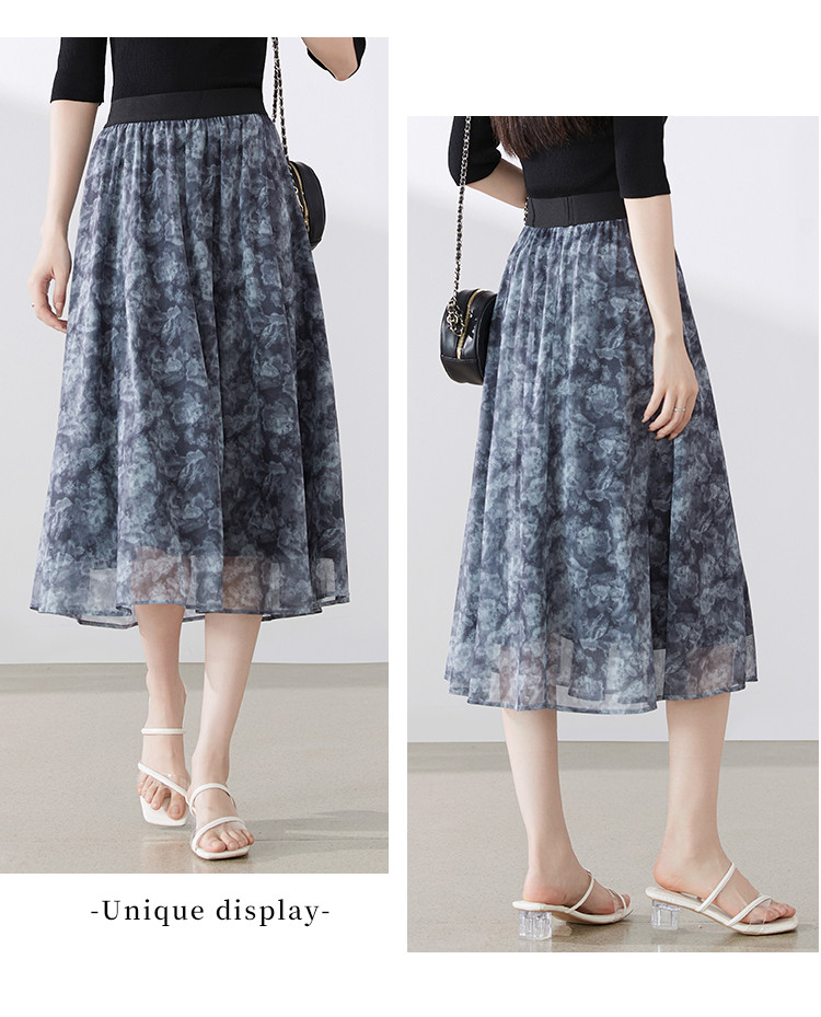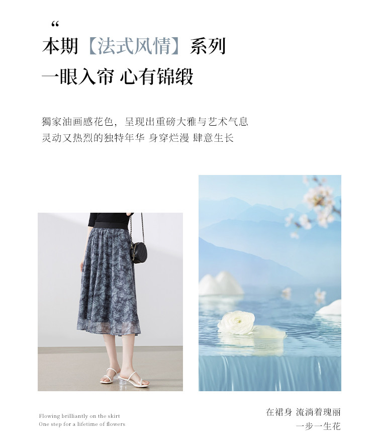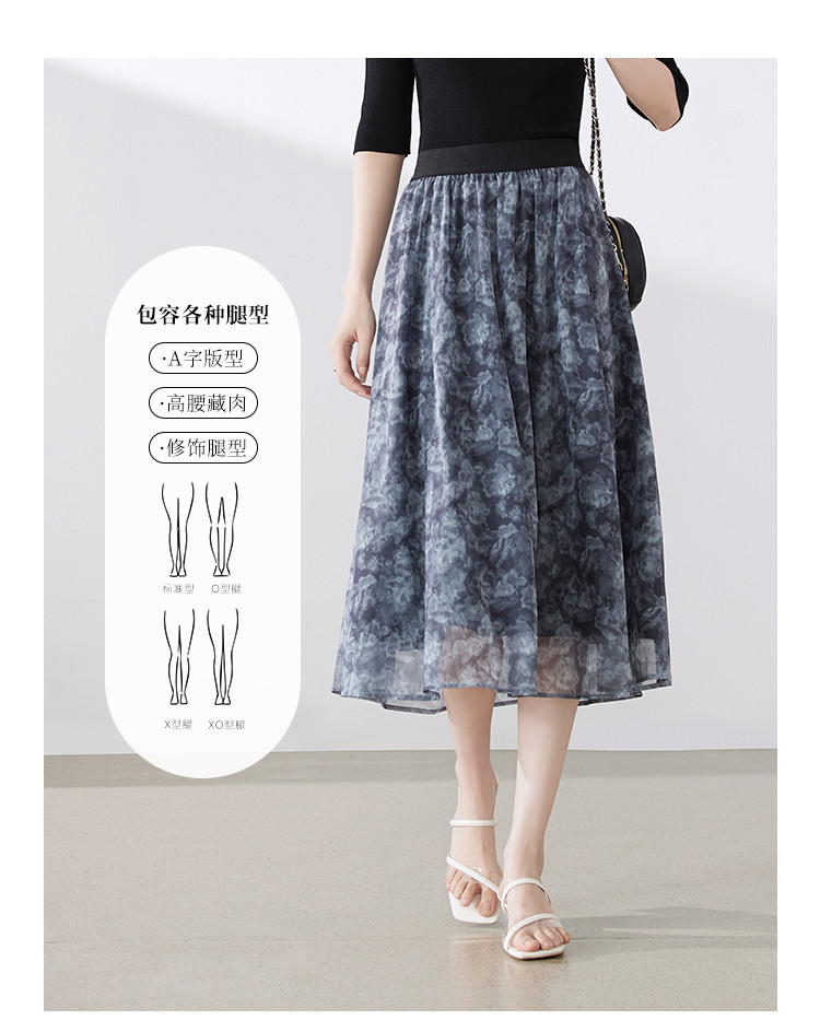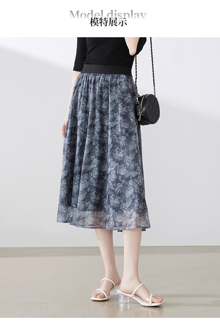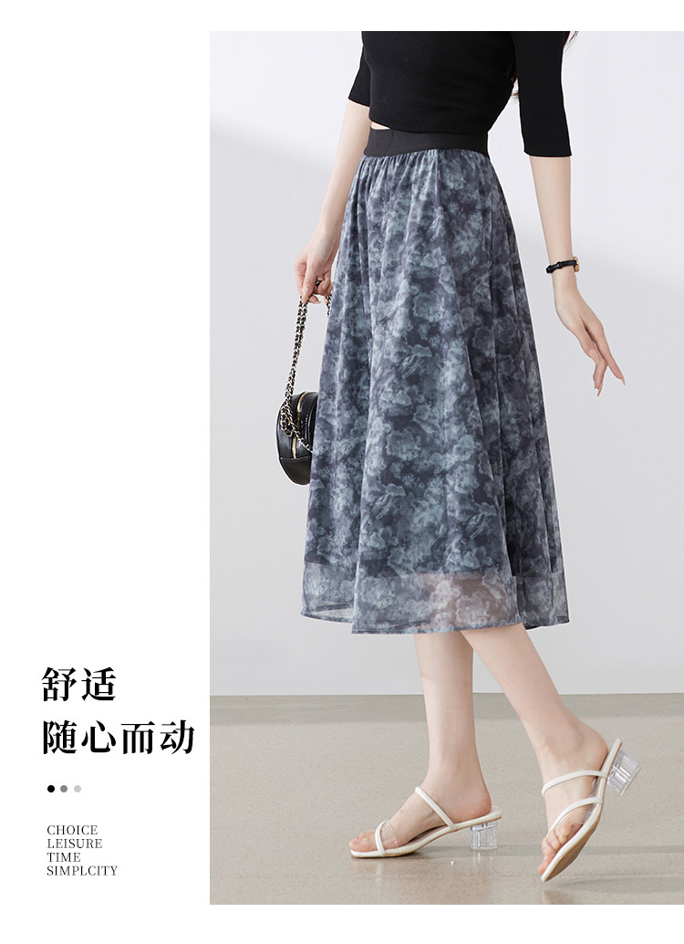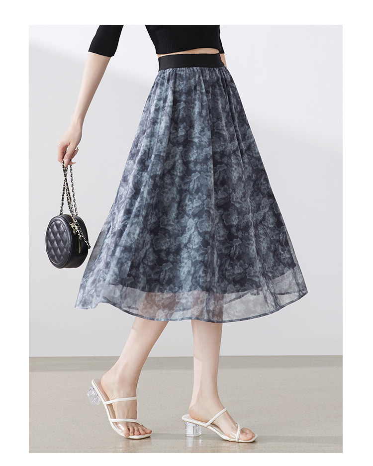 商品名称:【气质油画印花网纱裙】柔软细腻松紧高腰A字伞裙女式半身裙夏季 978625
