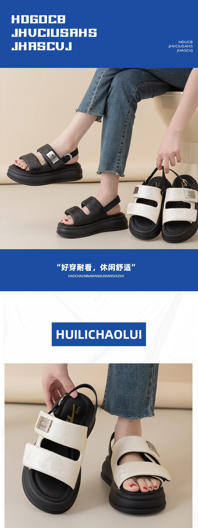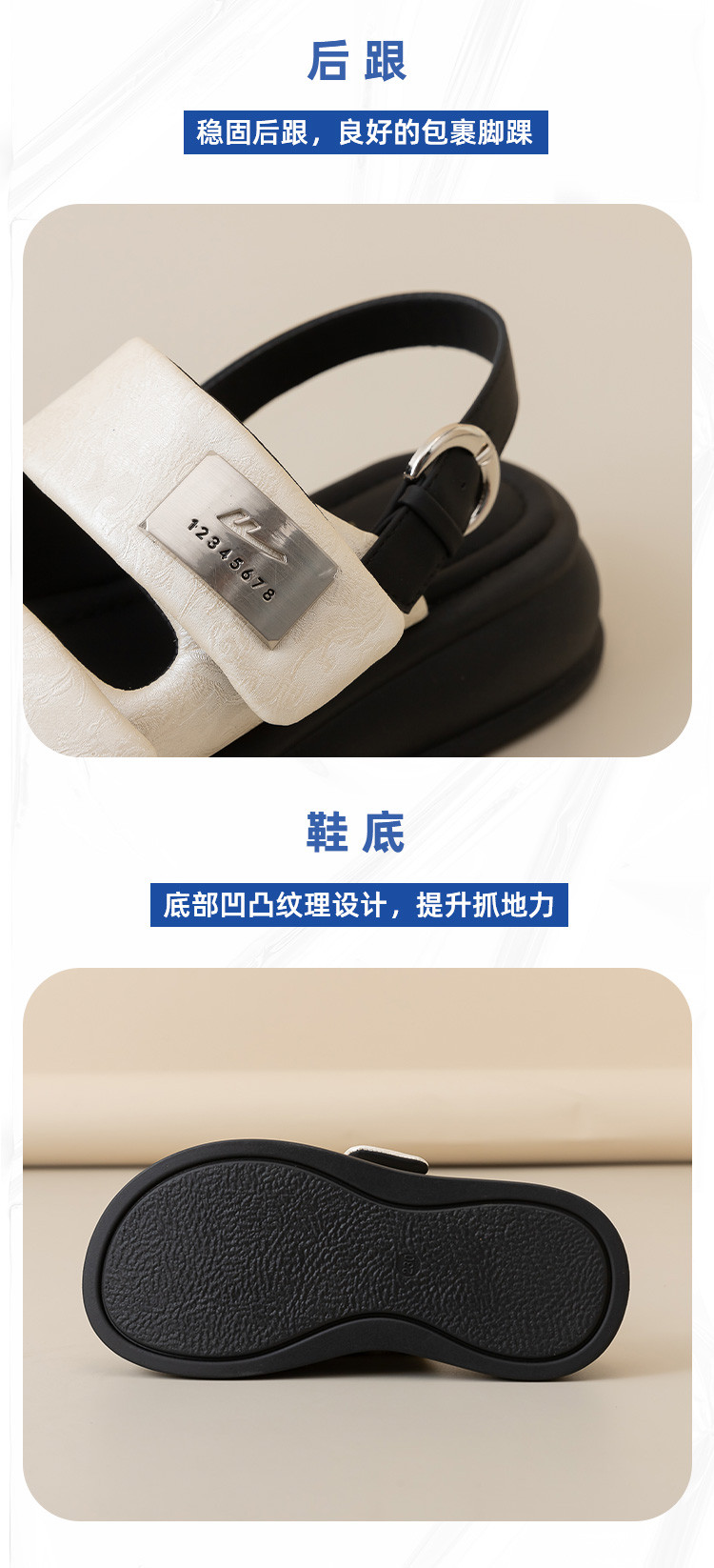 商品名称:【夏季热卖】时尚法式厚底凉鞋女轻便踩屎感防臭防滑沙滩女士凉拖 383427