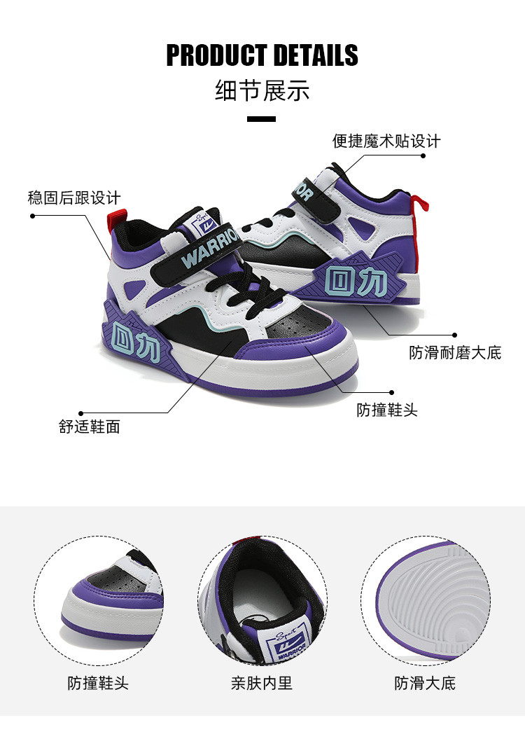 商品名称:【回力童鞋】新潮时尚儿童高帮休闲板鞋户外运动款校园板鞋 126928