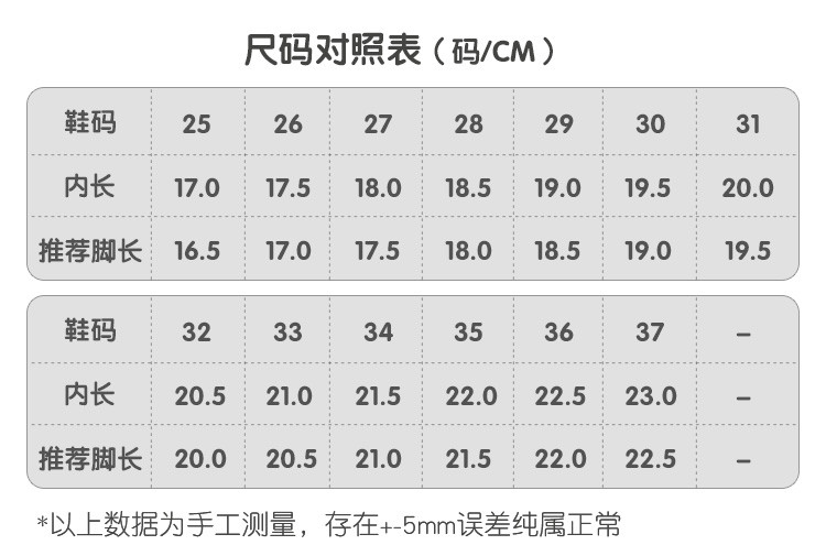 鞋内长(mm)