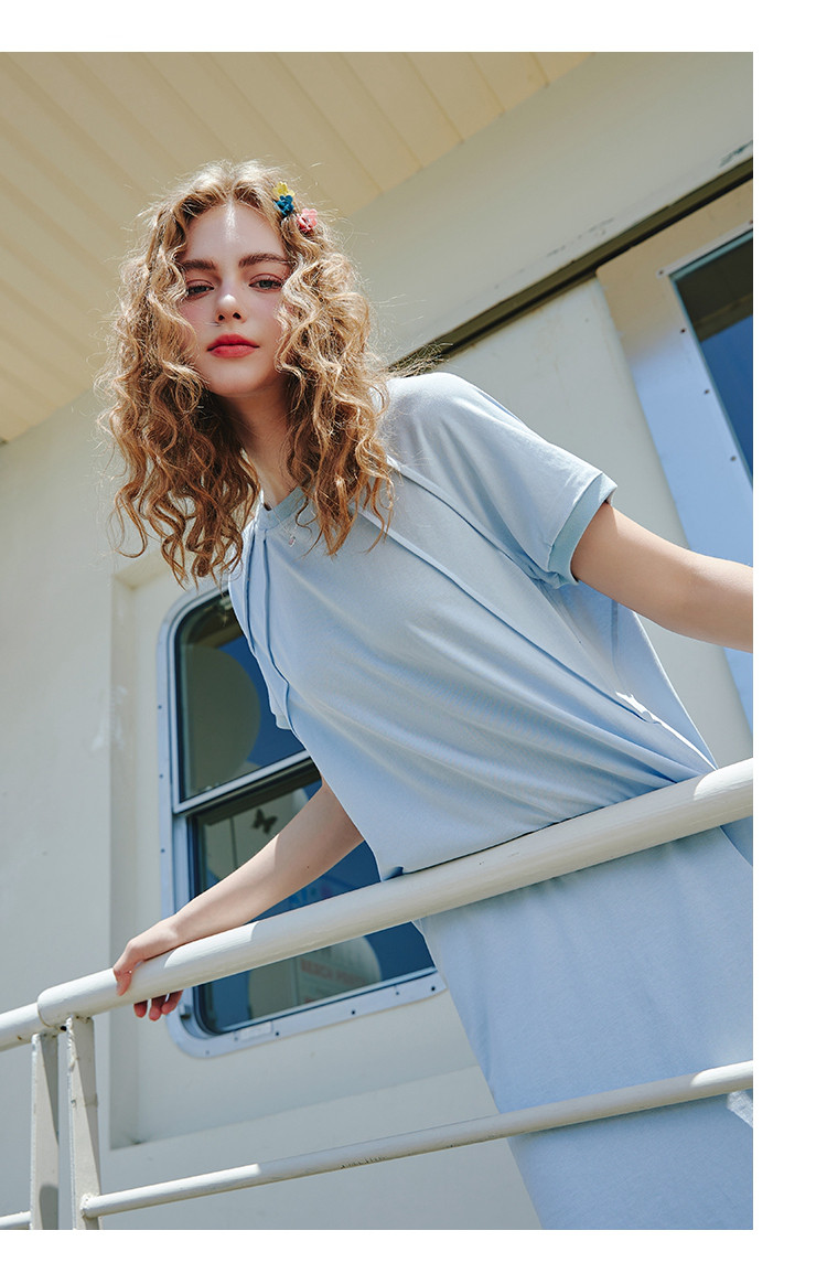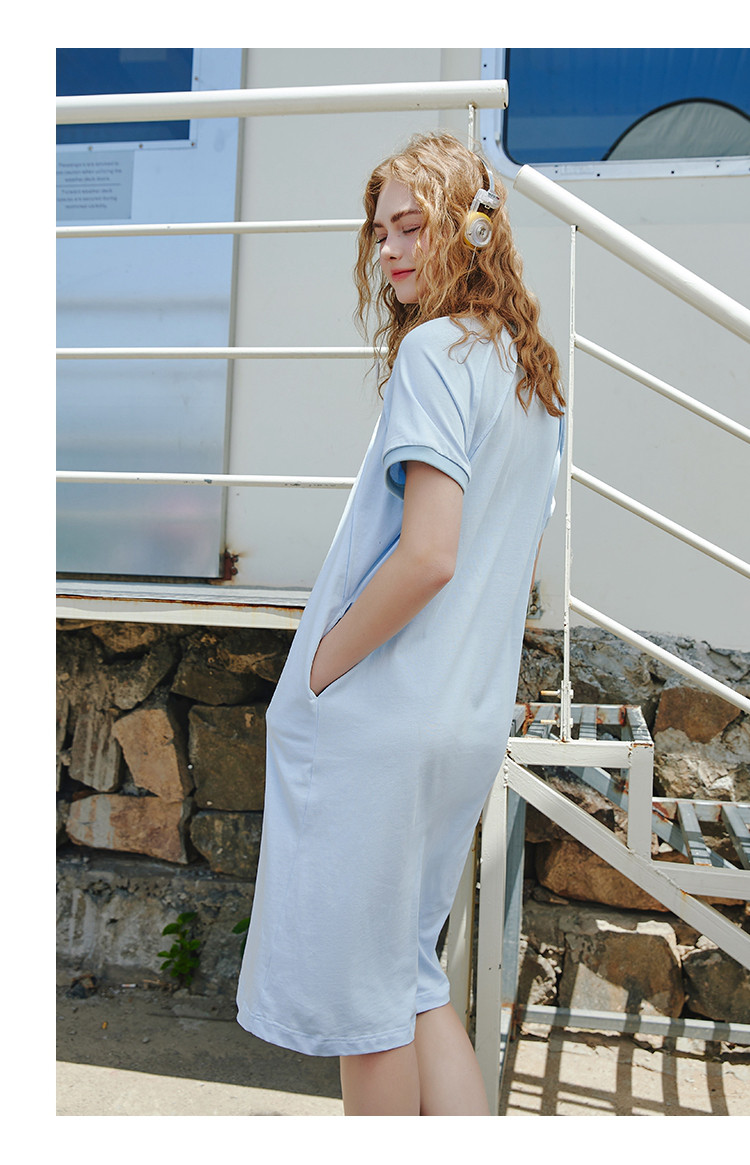 商品名称:【100%棉】纯色简约遮肚子减龄T恤裙夏季度假连衣裙 241437