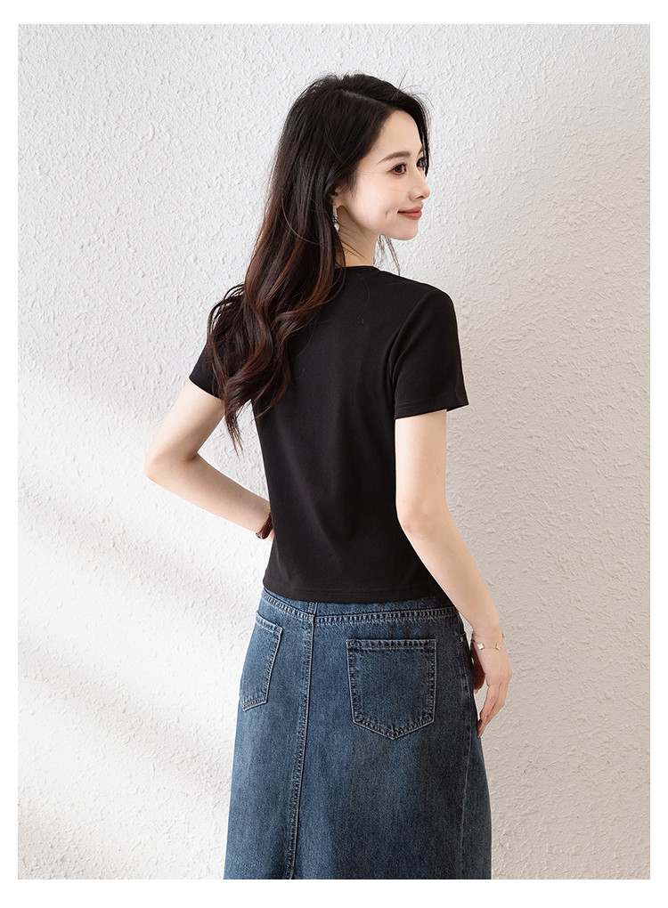 时尚潮流不规则夏季短袖T恤女高弹舒适休闲百搭修身显瘦印花上衣 797057