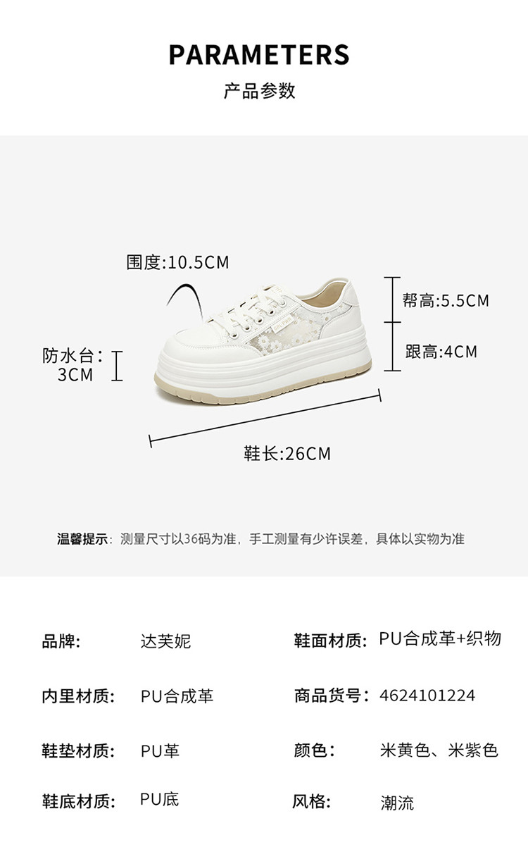 商品名称:【厚底增高】透气网面厚底鞋百搭小白鞋板鞋休闲运动鞋女舒适女鞋 128535