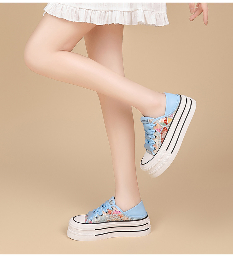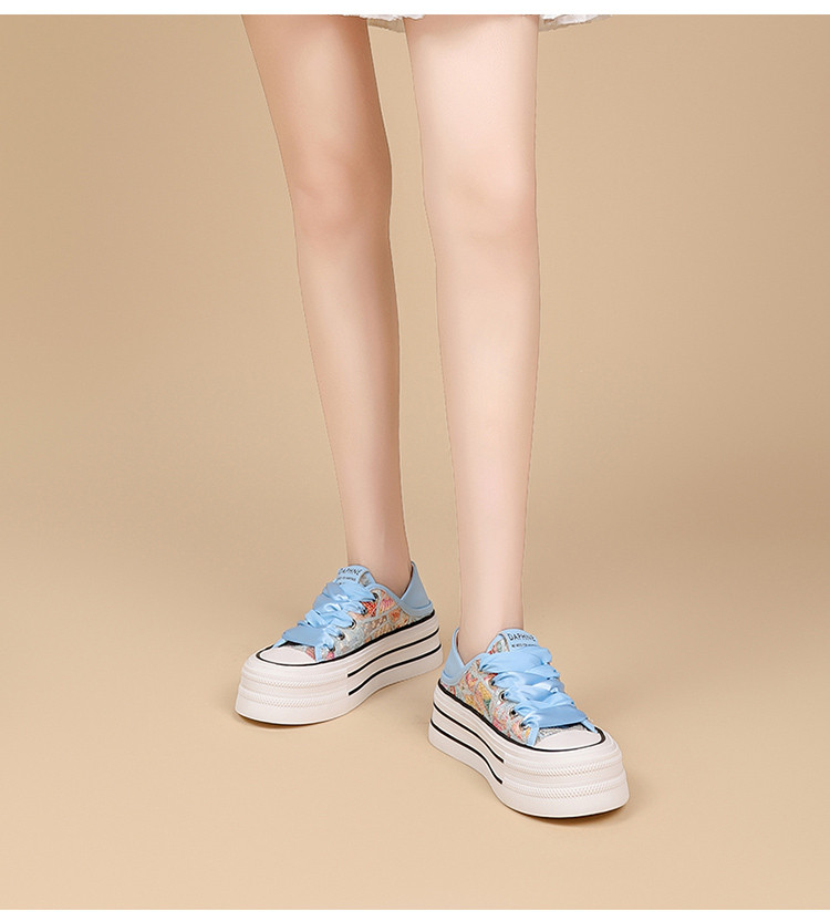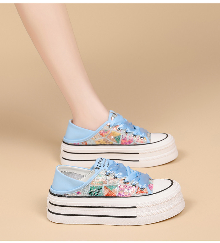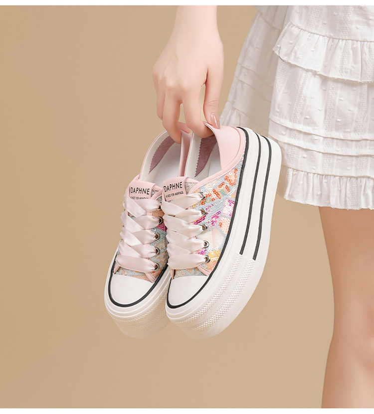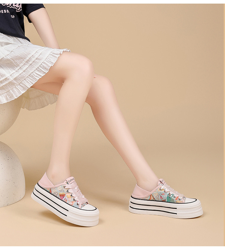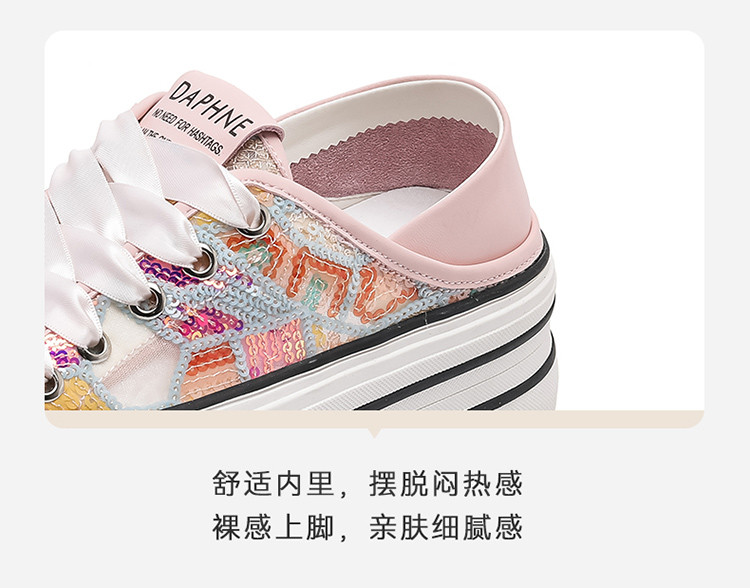 夏季透气网面鞋轻便薄款厚底时尚板鞋百搭简约小白鞋女运动休闲鞋 500503