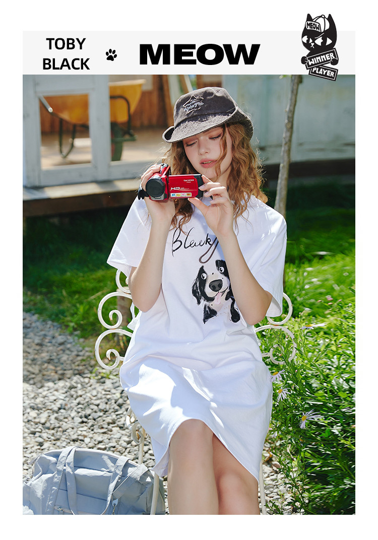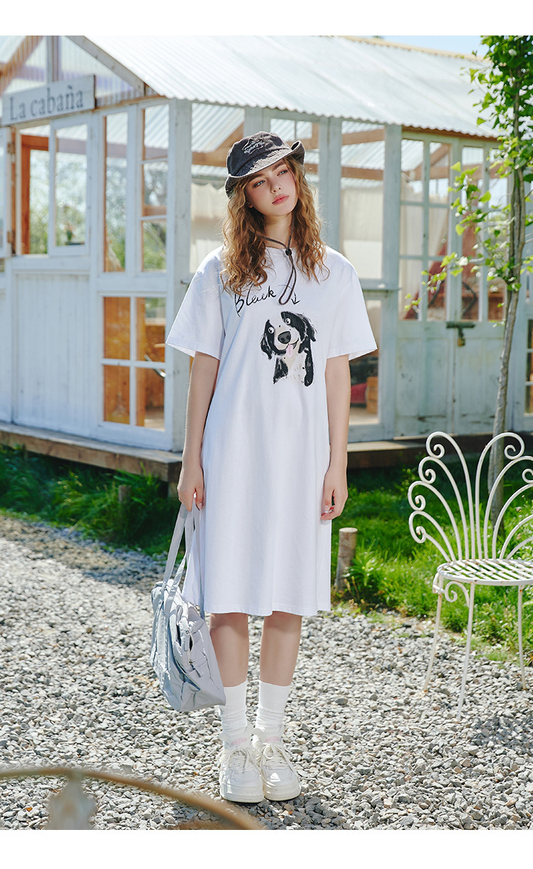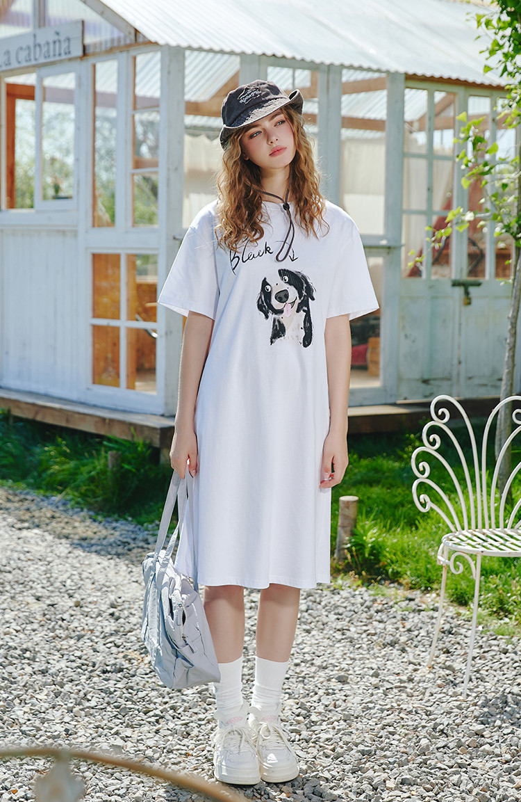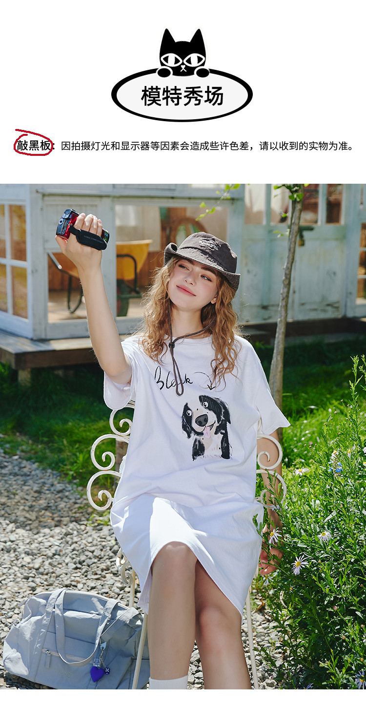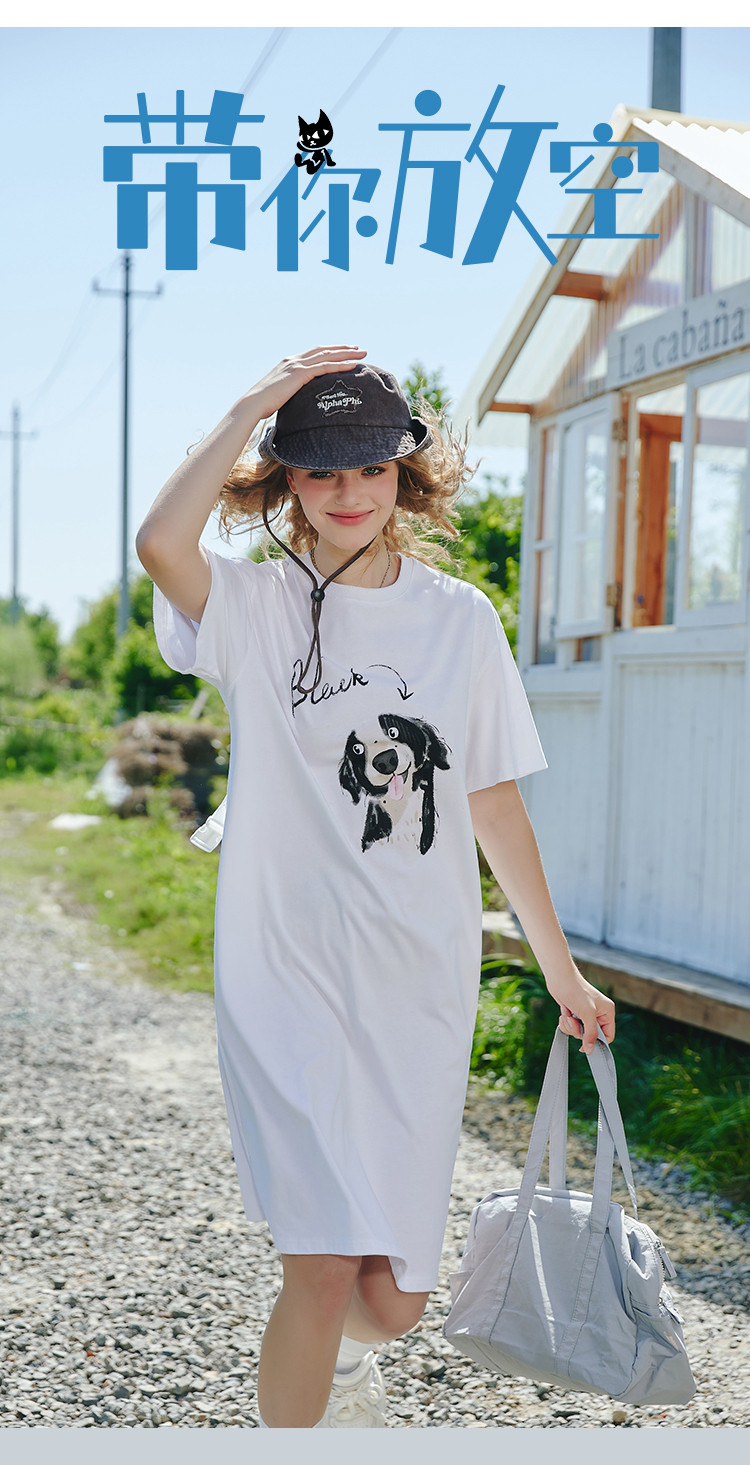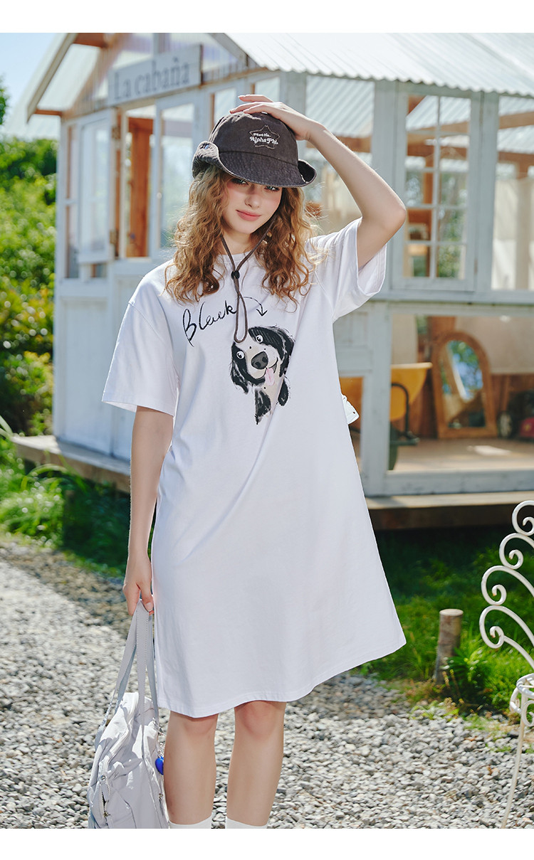 商品名称:【100%棉】宽松时尚狗狗印花个性T恤裙夏季连衣裙 507677