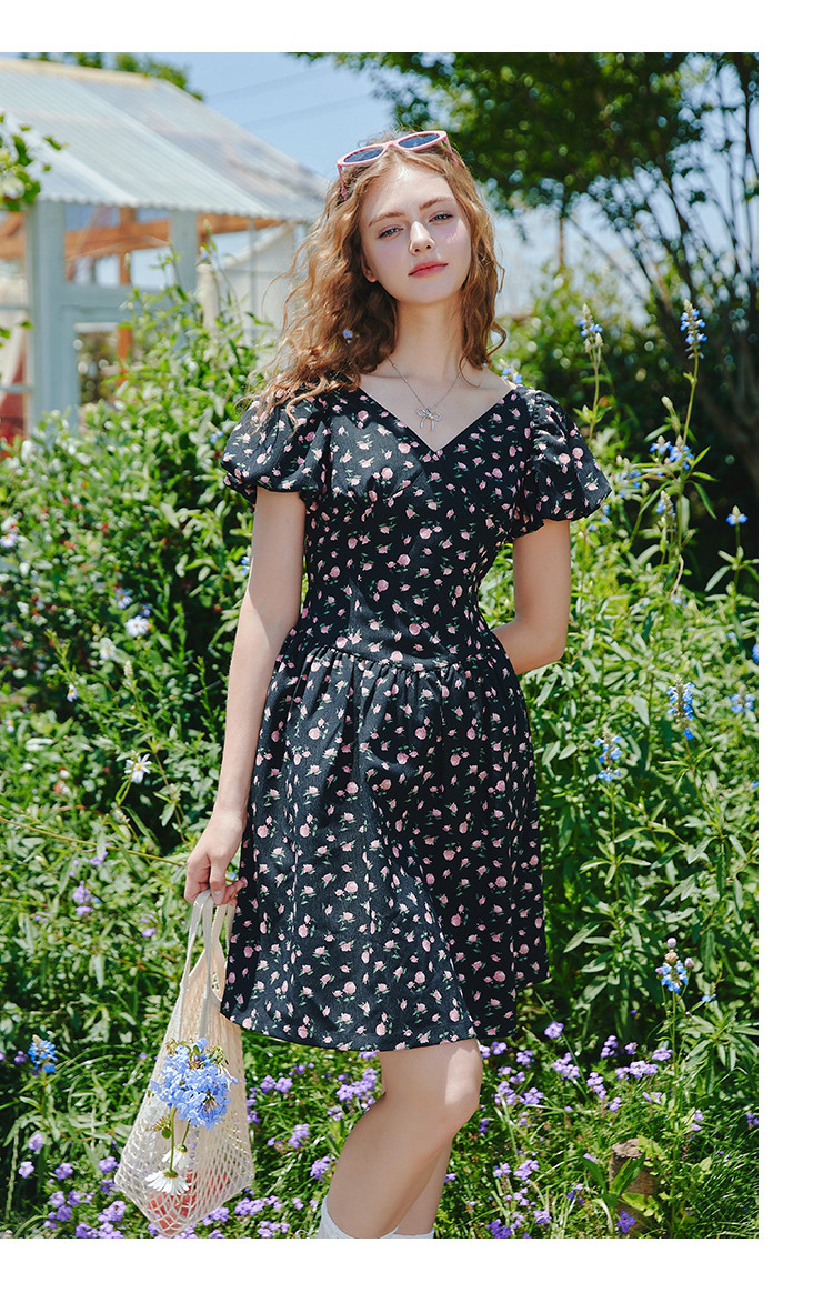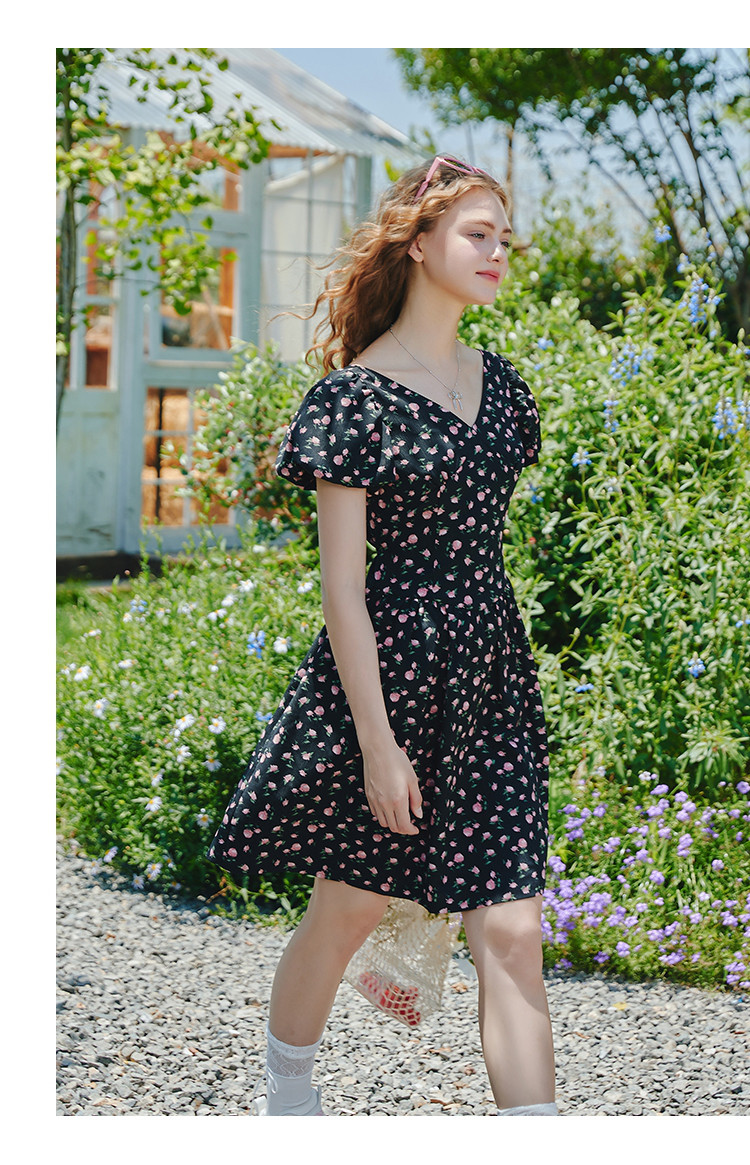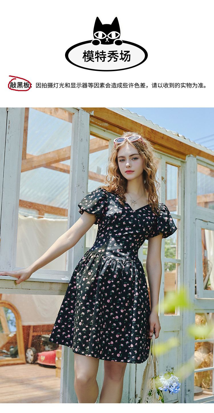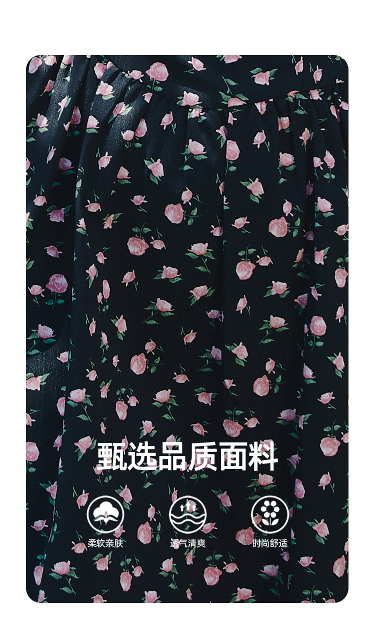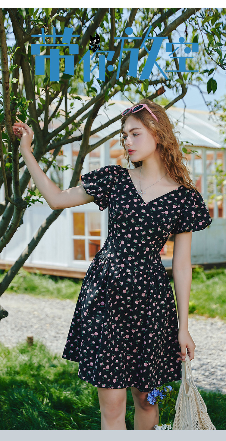 商品名称:V领法式设计感小众碎花收腰连衣裙夏季休闲小清新中裙 556829