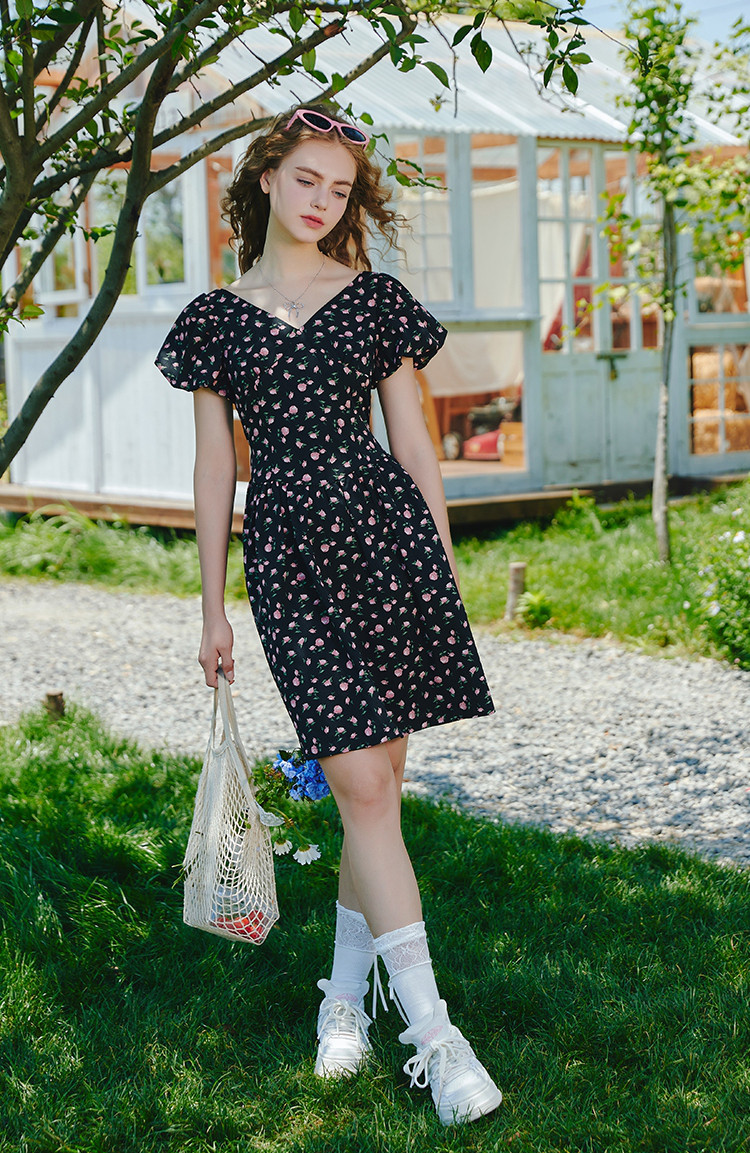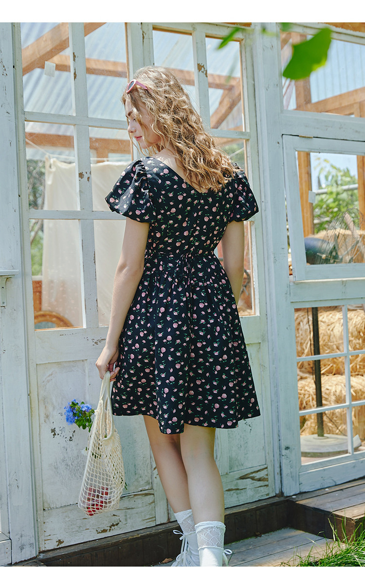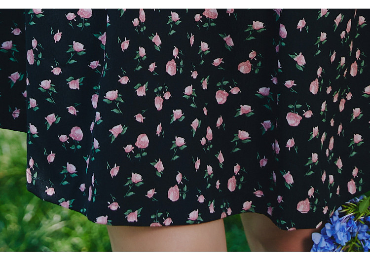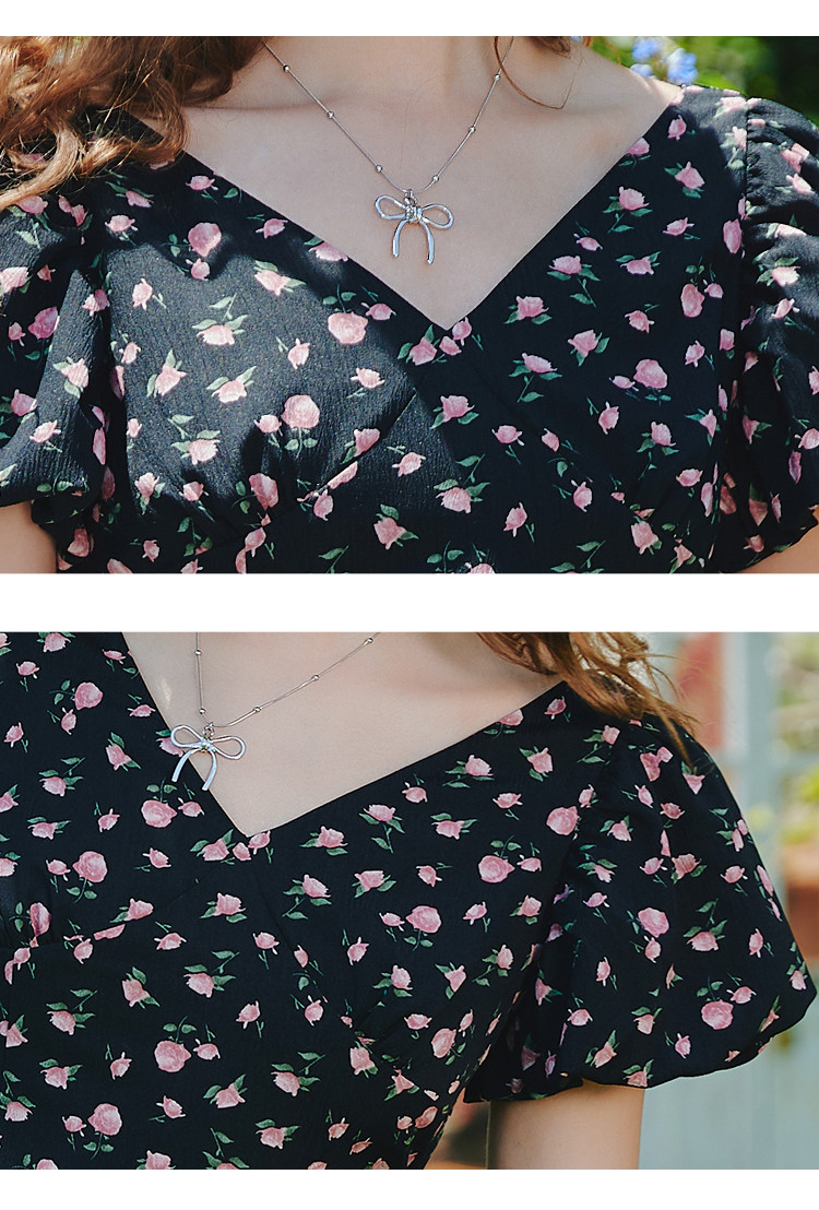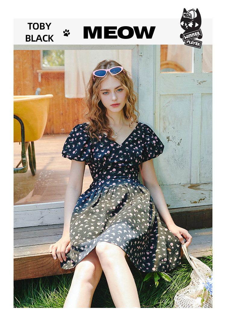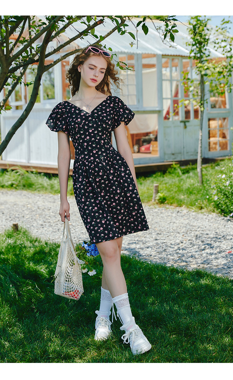 商品名称:V领法式设计感小众碎花收腰连衣裙夏季休闲小清新中裙 556829