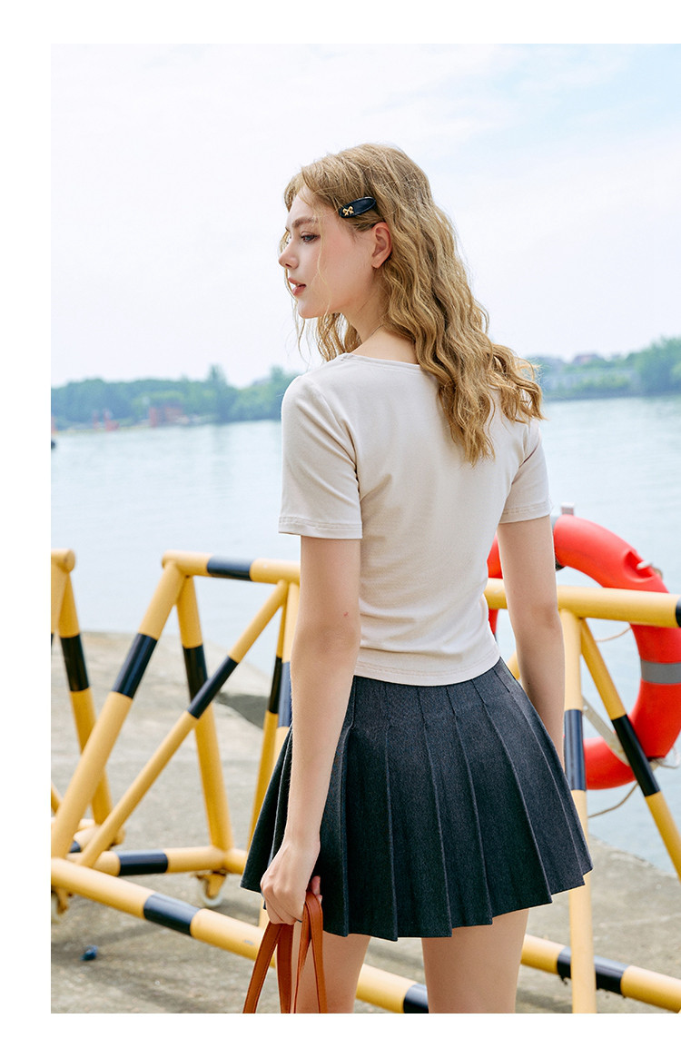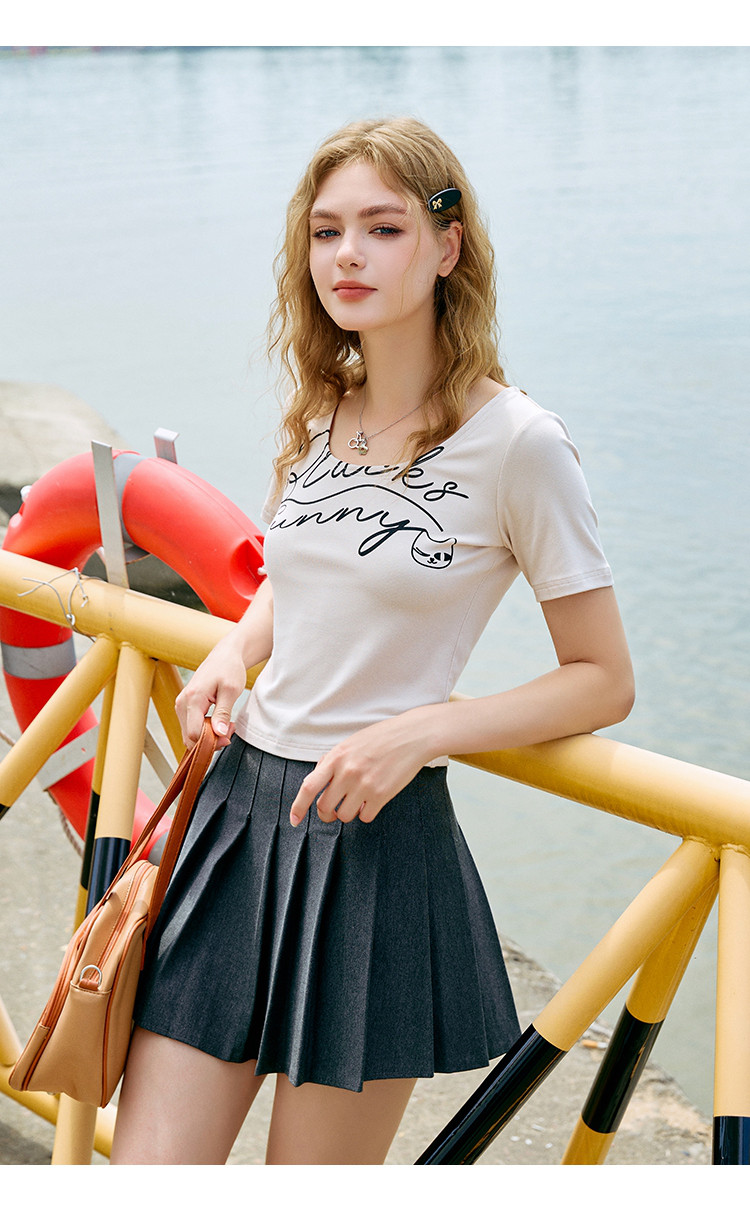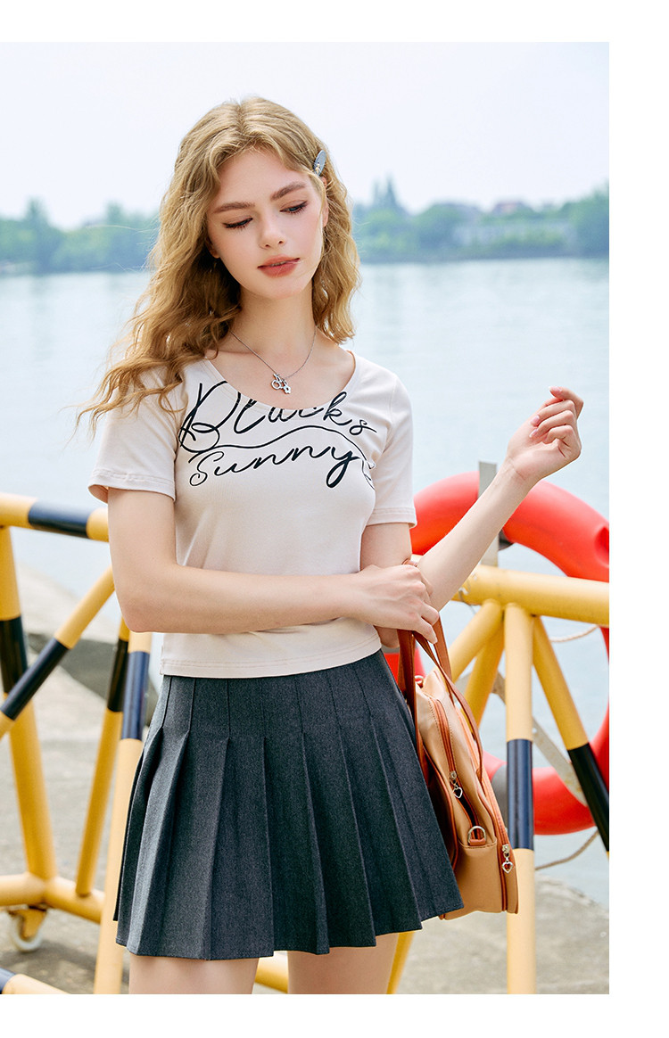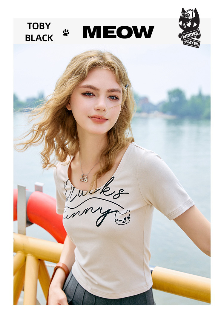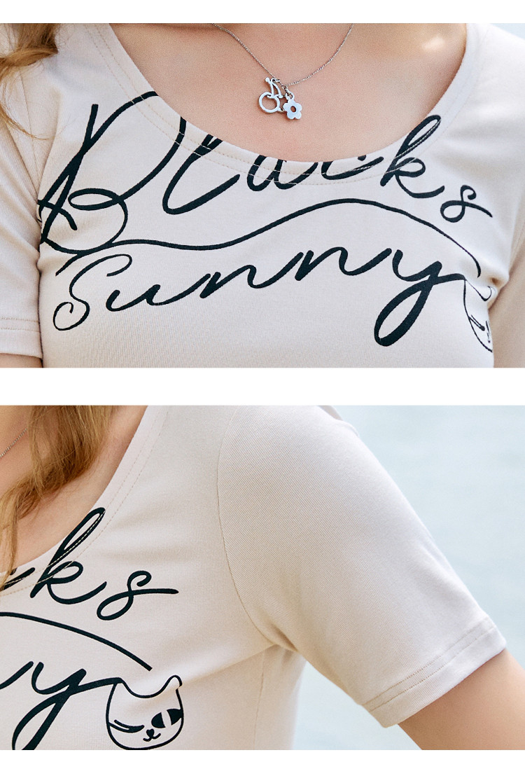 大圆领显瘦修身个性字母印花女式T恤夏季休闲百搭短袖 171805