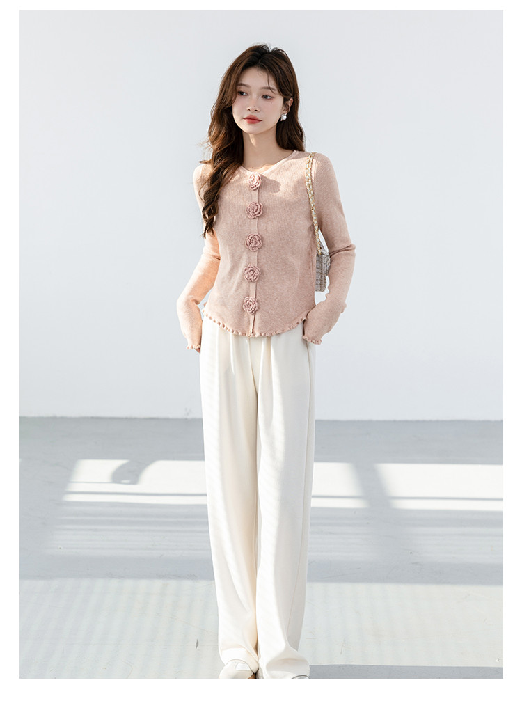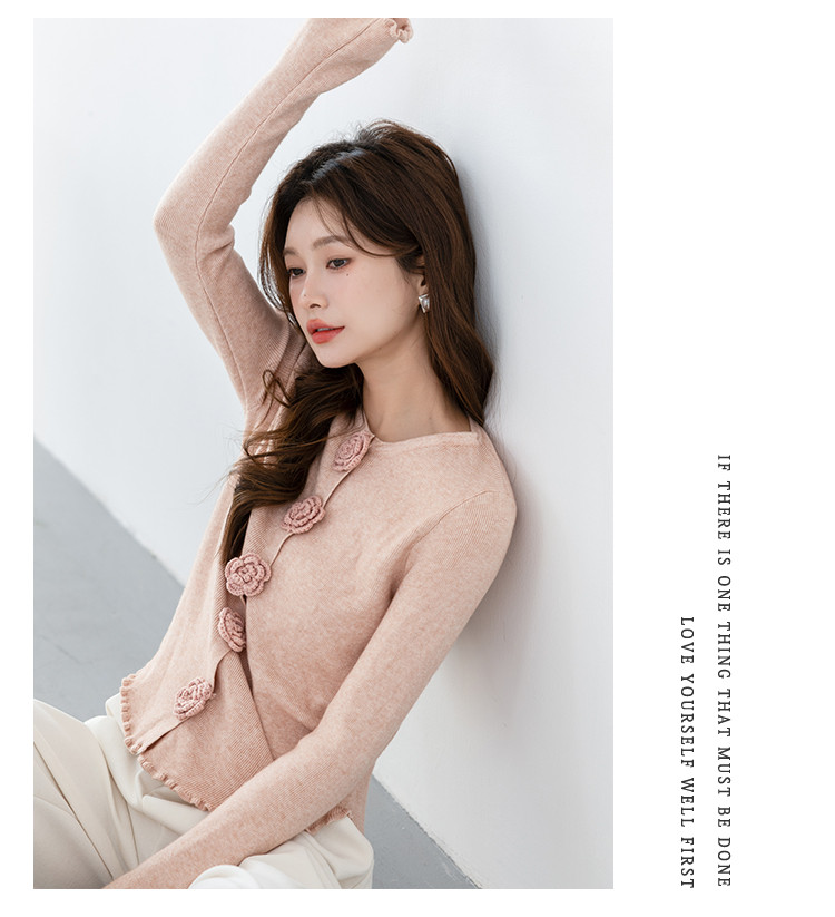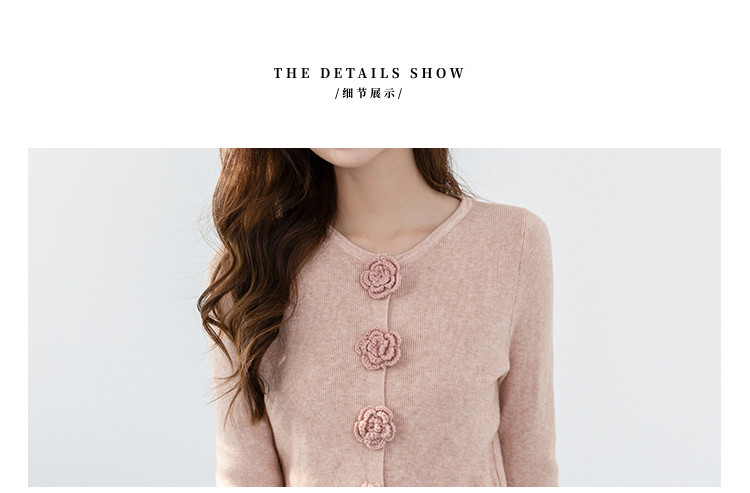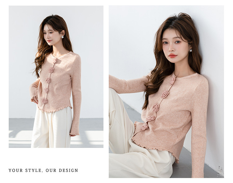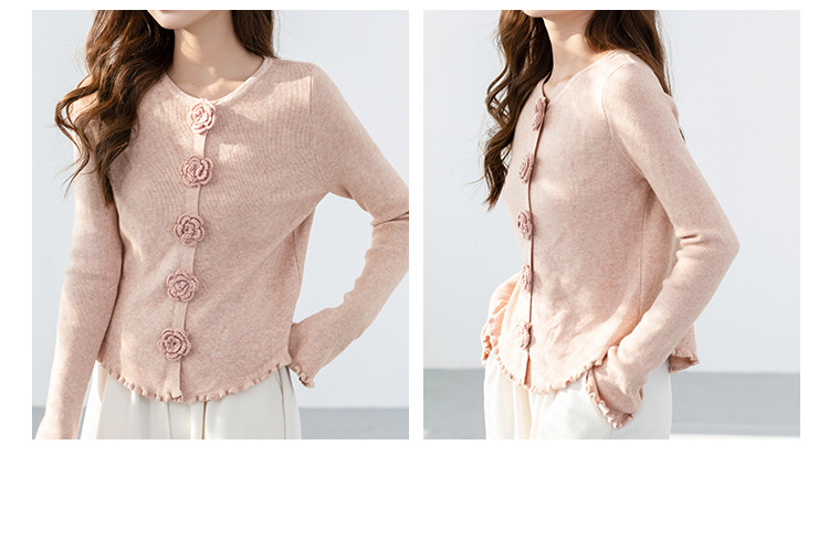 商品名称:甜美圆领玫瑰花朵波浪花边气质显瘦百搭针织衫 546755