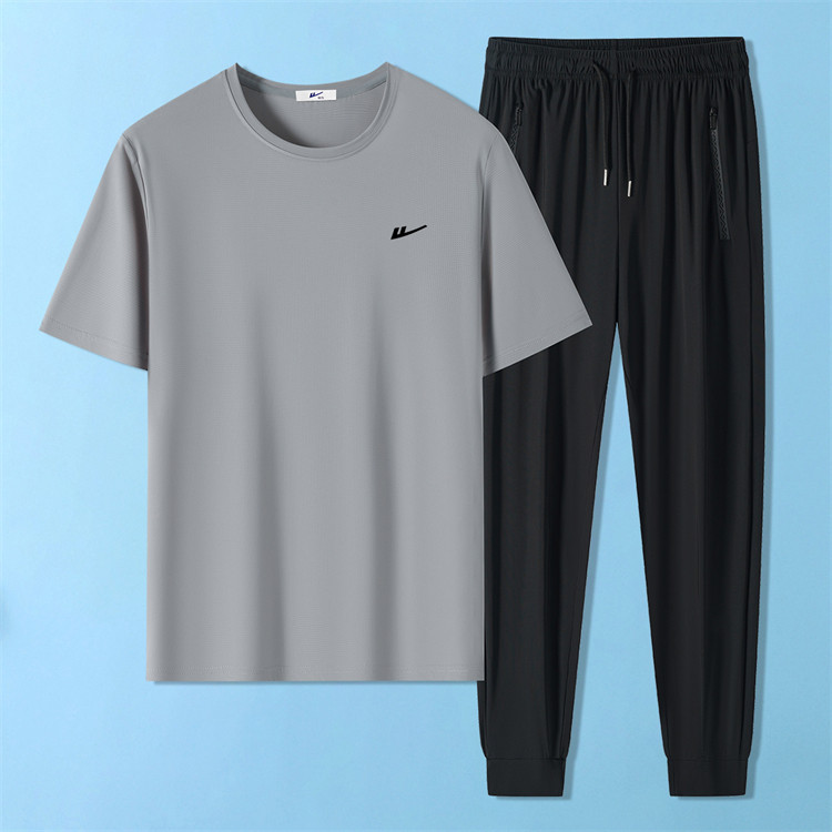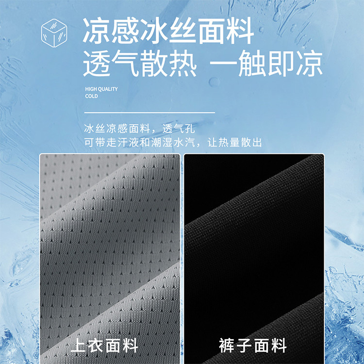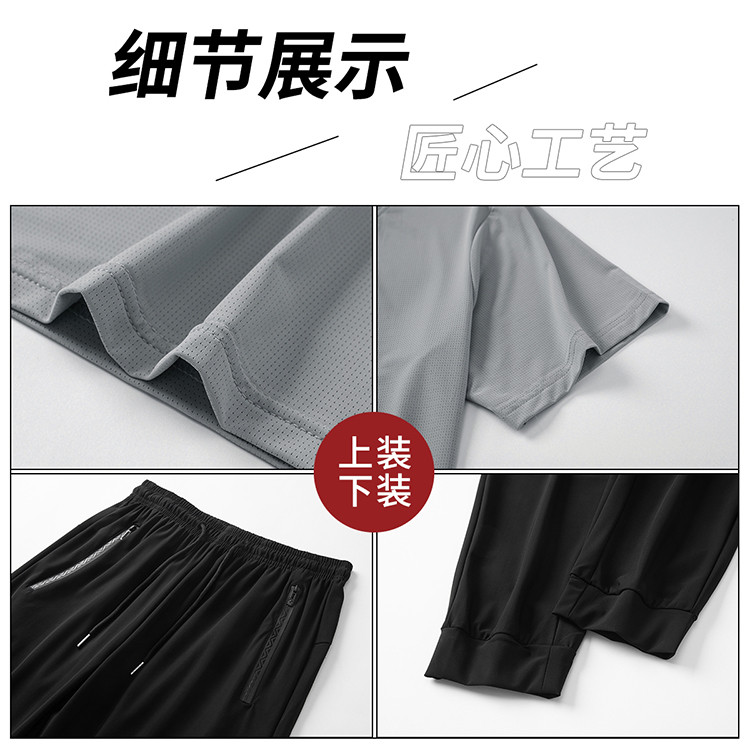 商品名称:【凉感两件套】夏季男士套装高弹薄款休闲短T跑步冰丝运动套装男 079827