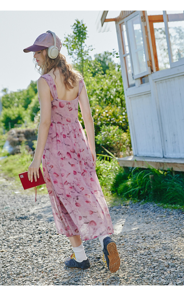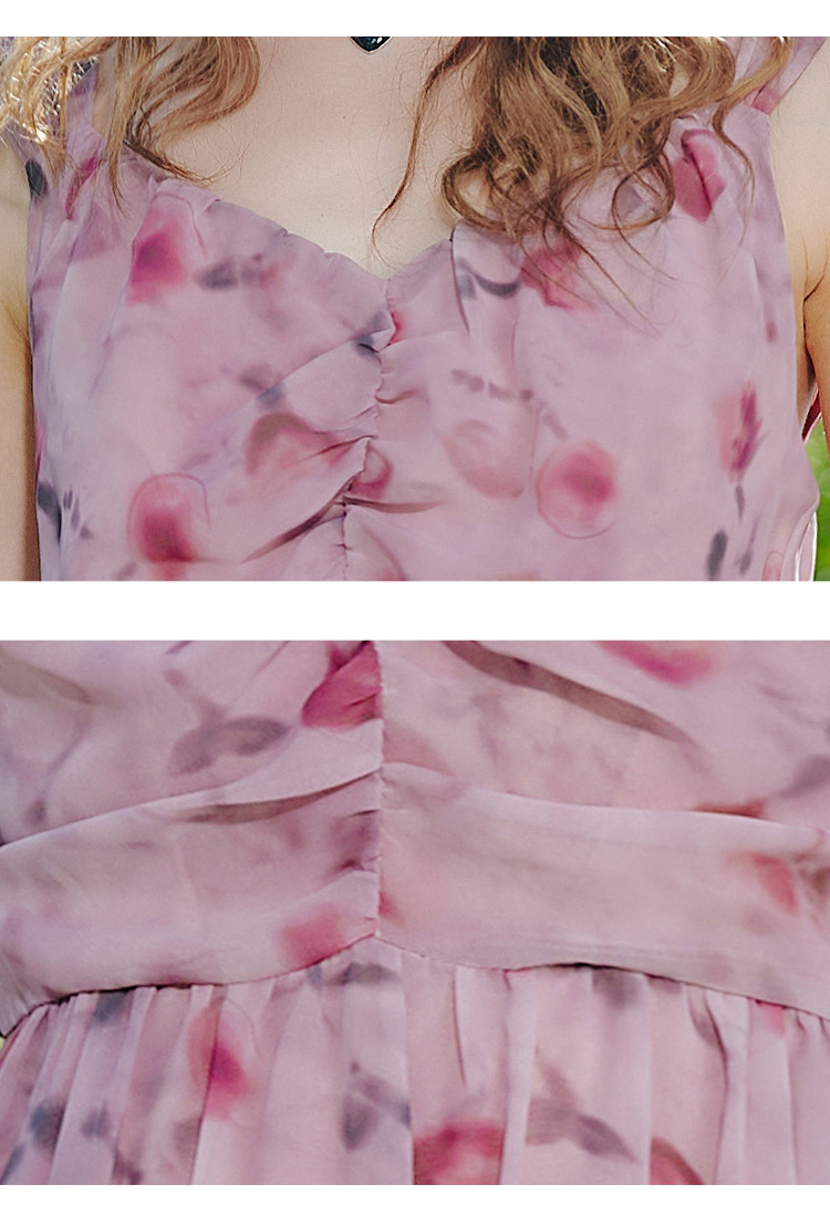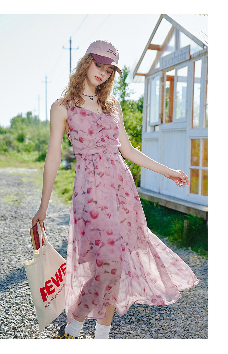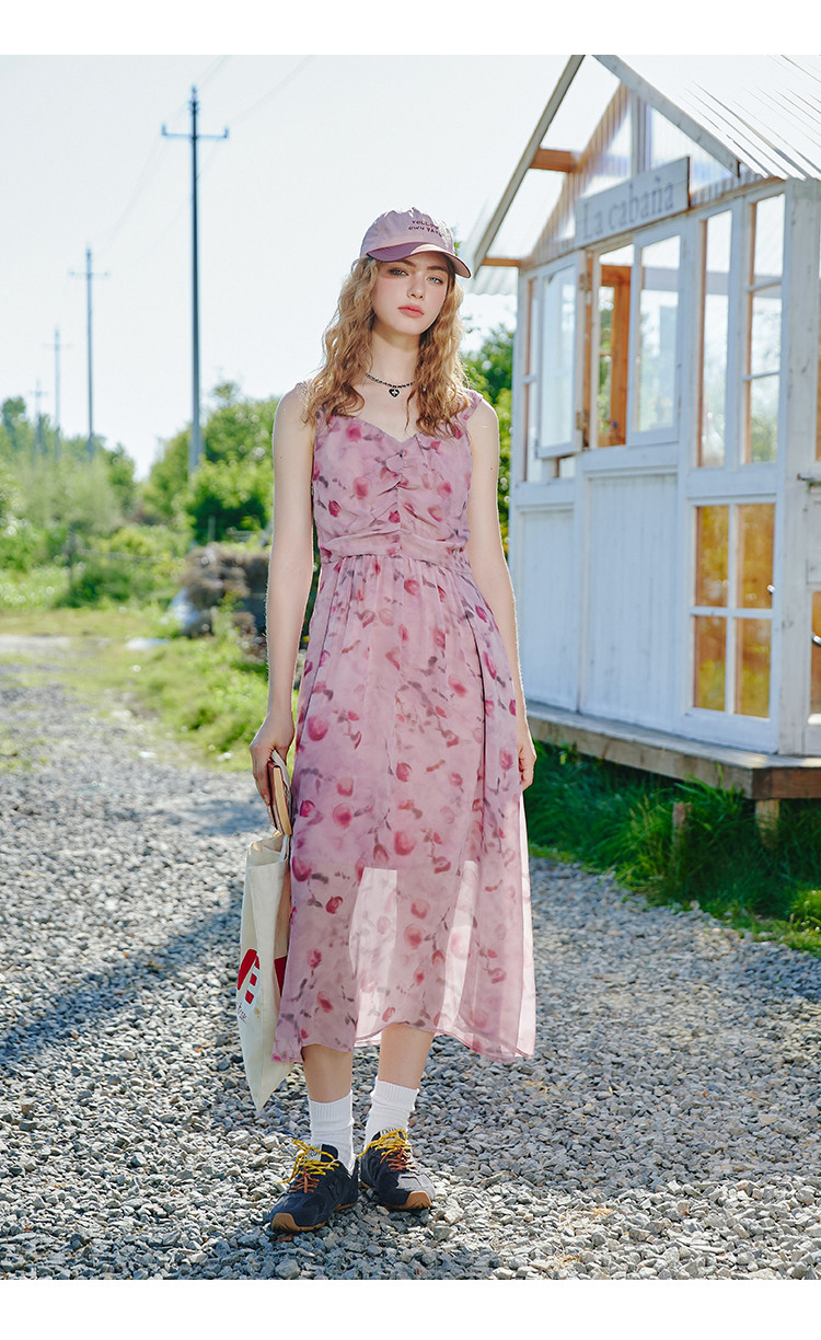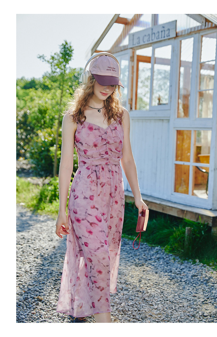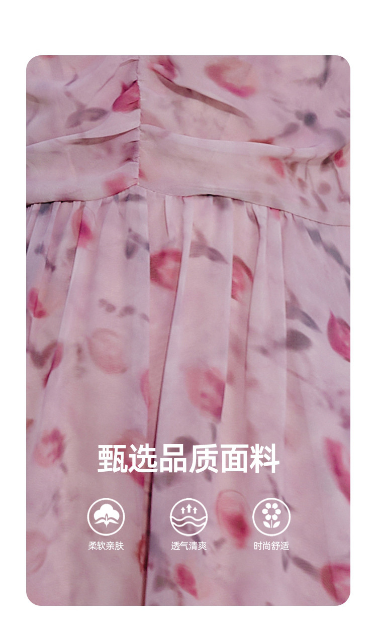 商品名称:设计感抽褶轻盈感面料度假风透气连衣裙夏季吊带网纱裙 446237