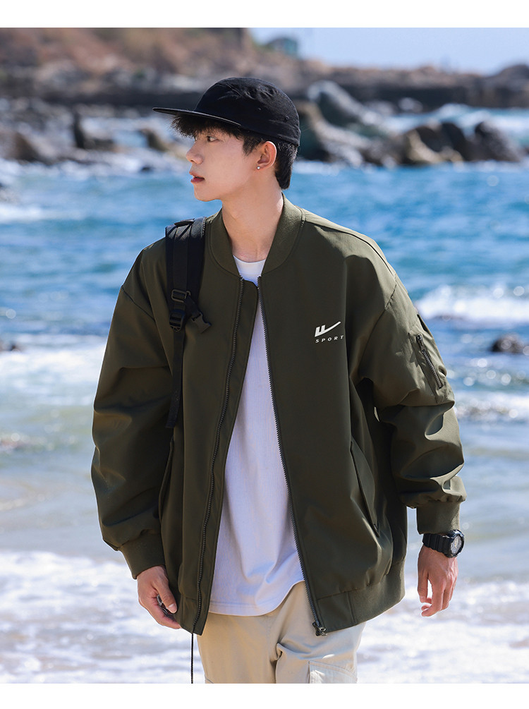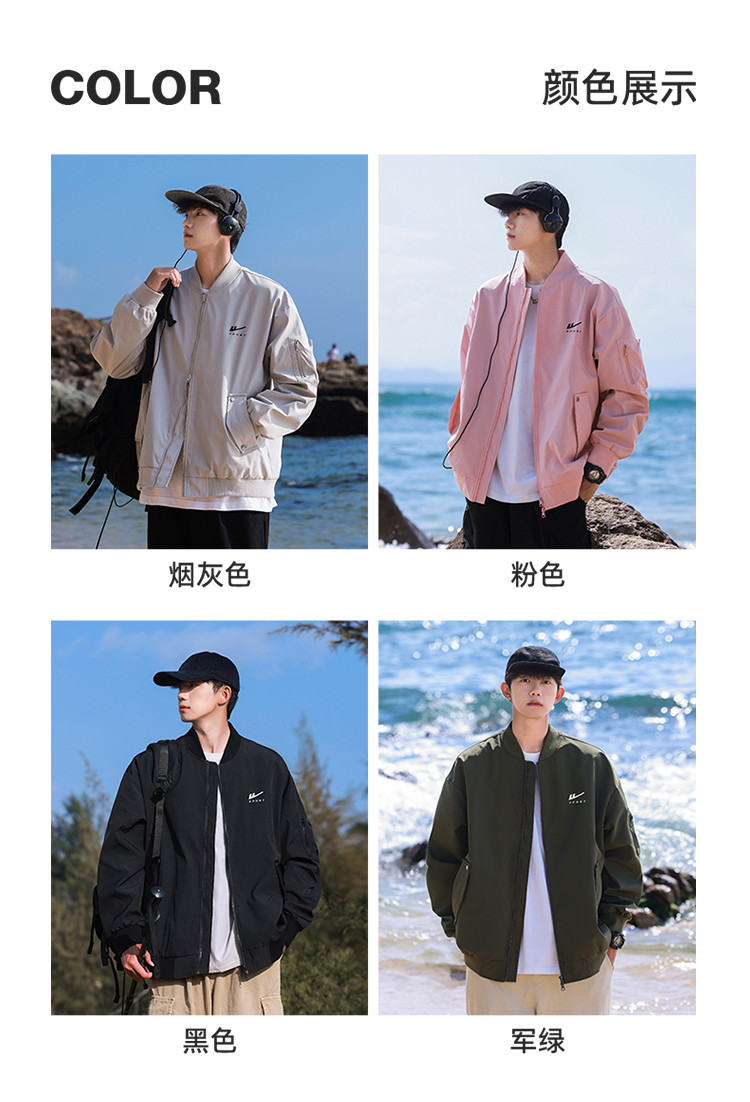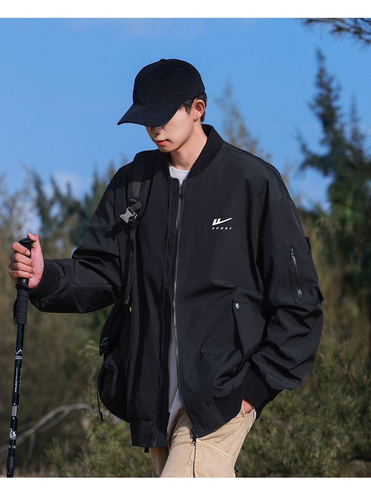 商品名称:日系轻户外运动工装外套男春秋季潮牌多口袋宽松休闲立领棒球服 882579