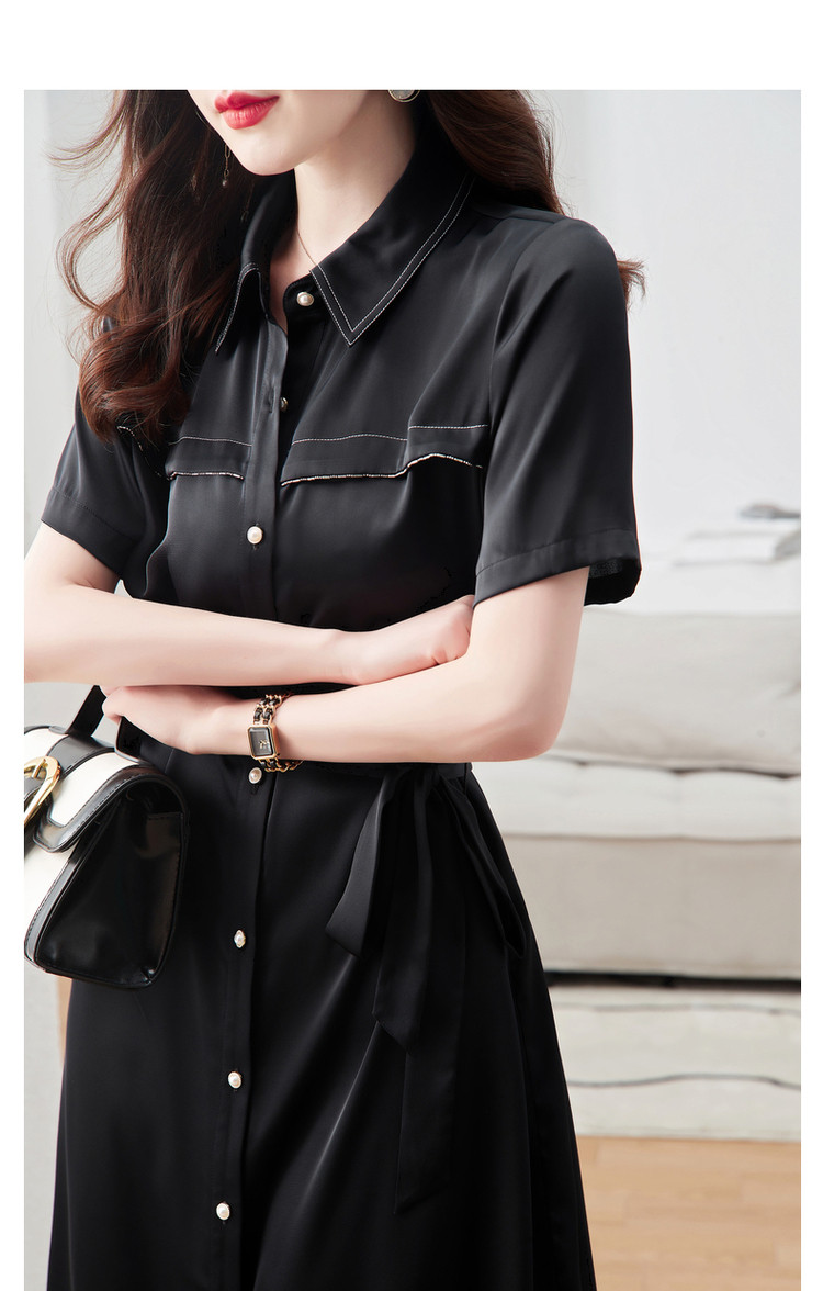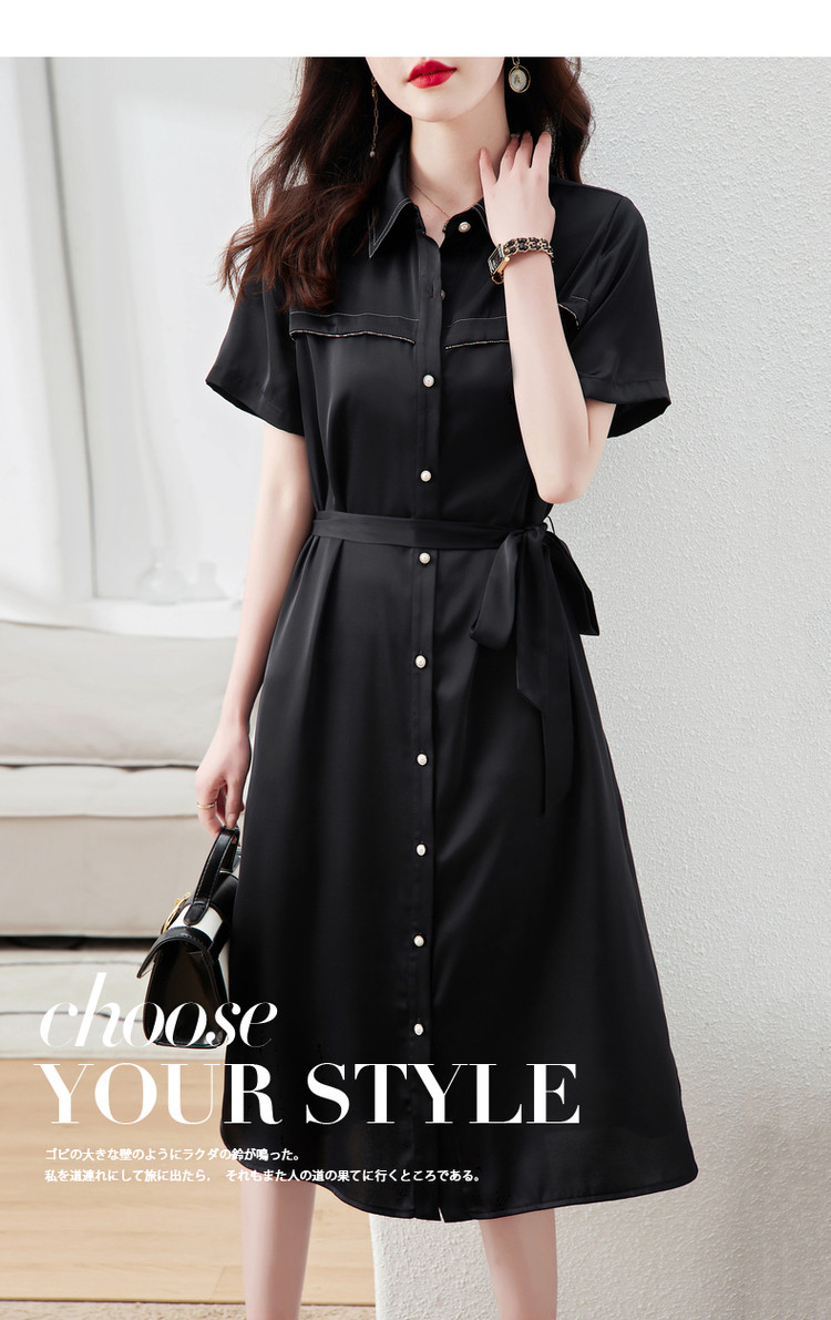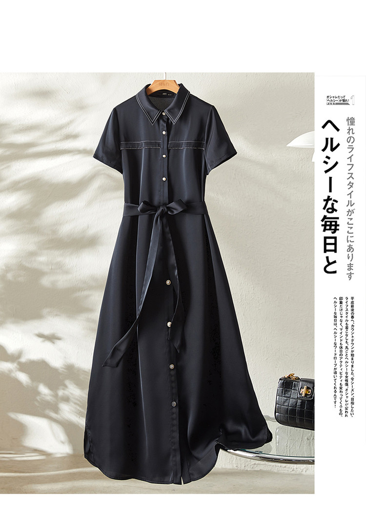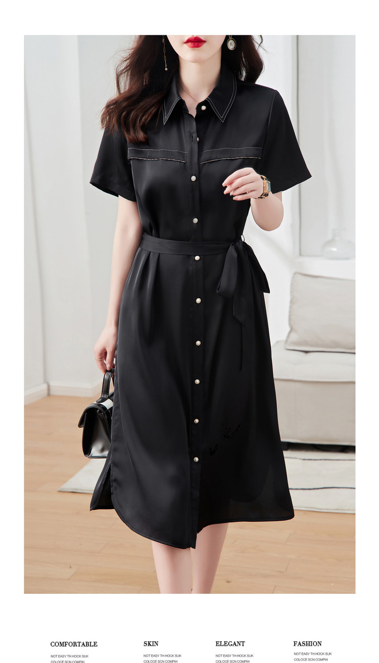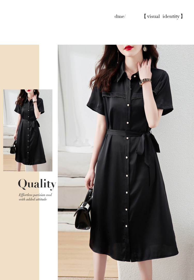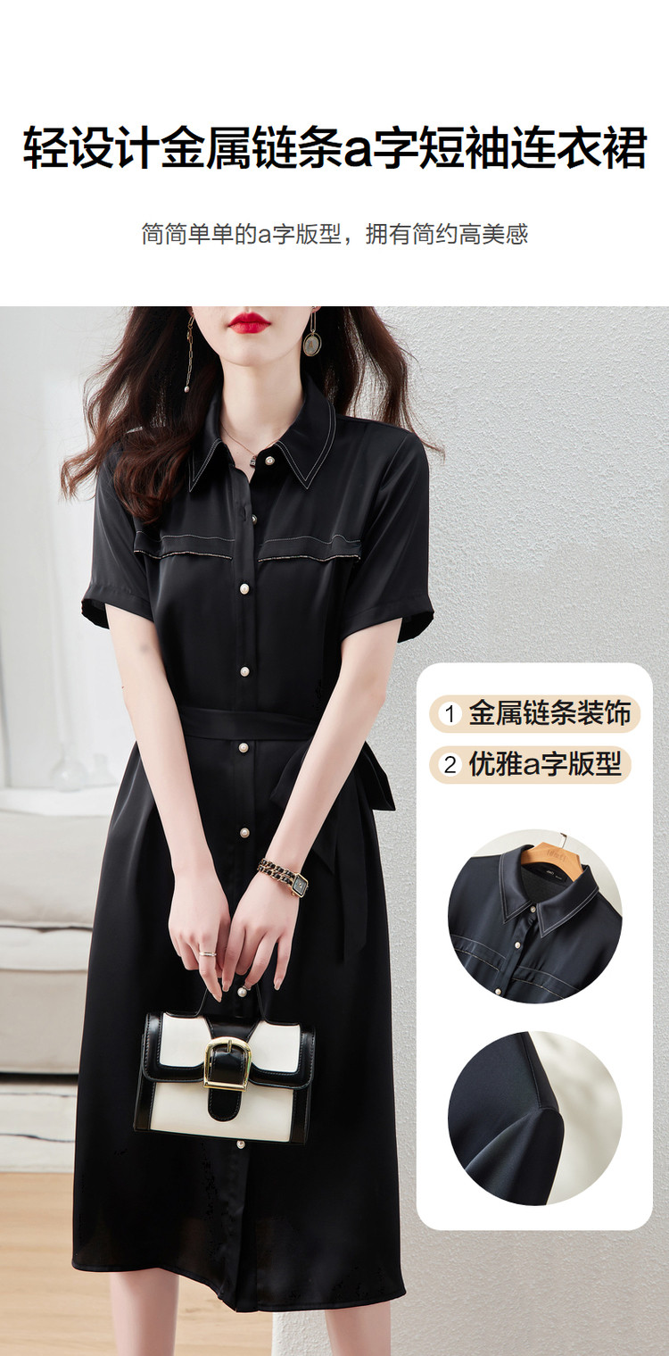 【金属链条装饰】夏季翻领短袖a字单排扣连衣裙女中长款 979777