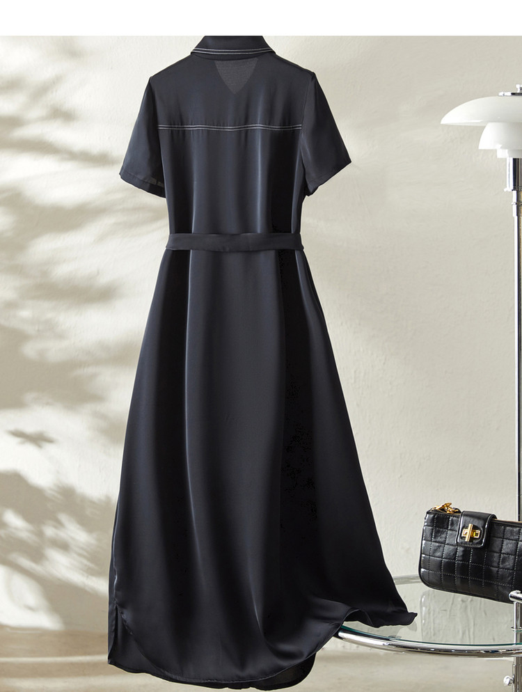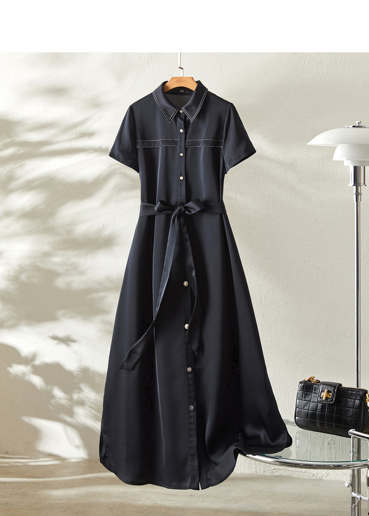 商品名称:【金属链条装饰】夏季翻领短袖a字单排扣连衣裙女中长款 979777