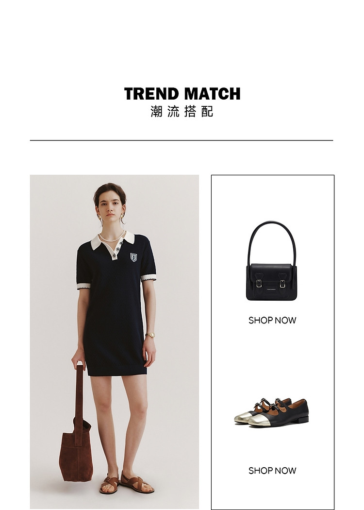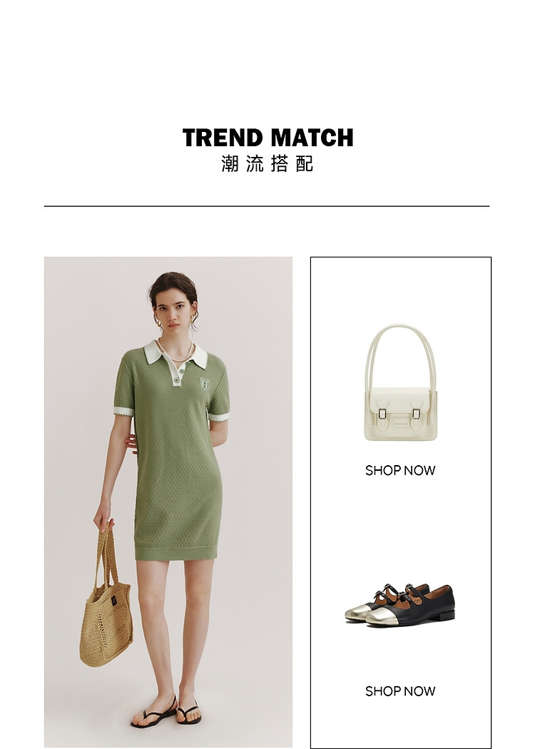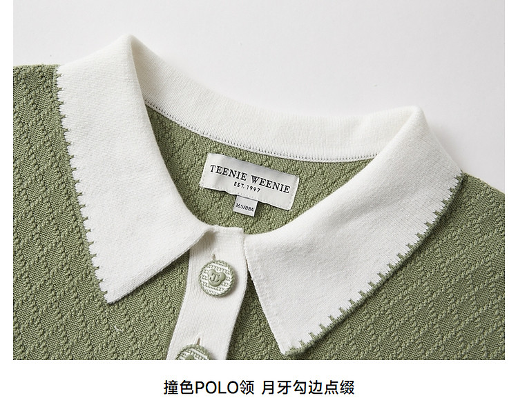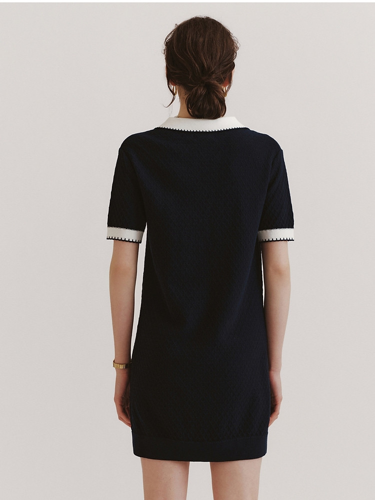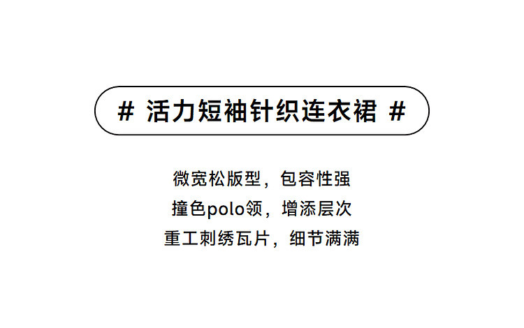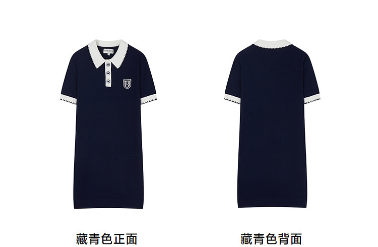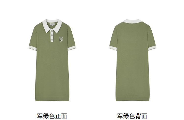 商品名称:连衣裙小熊款夏装肌理感撞色Polo领短袖毛衣连衣裙女装 675457