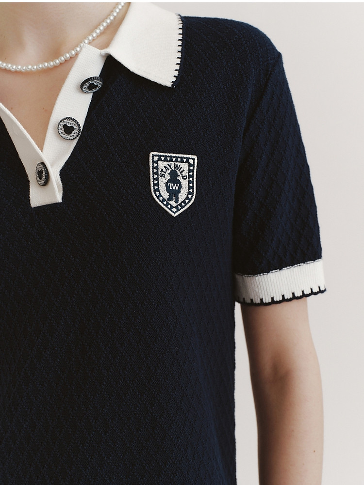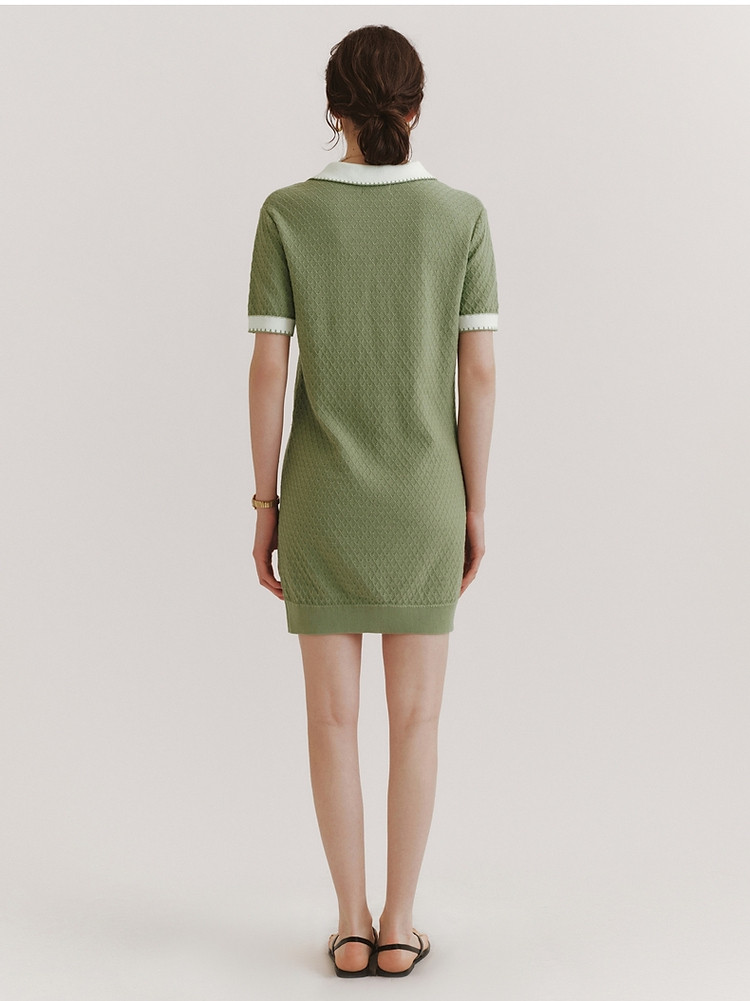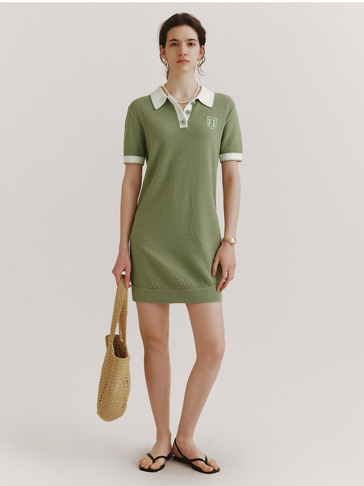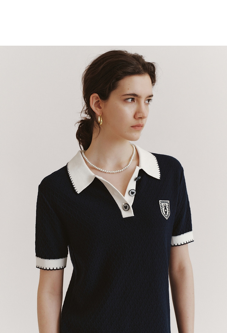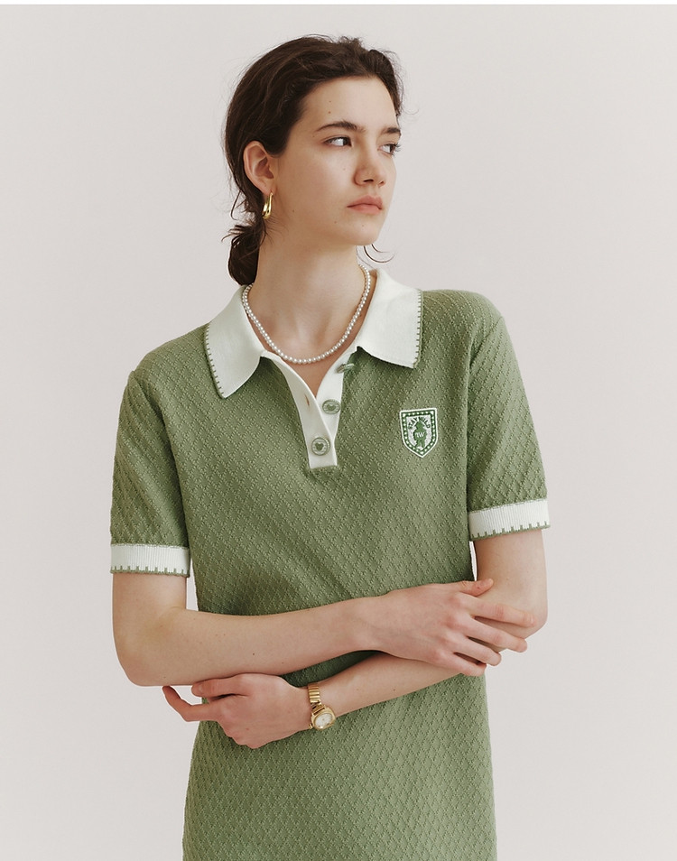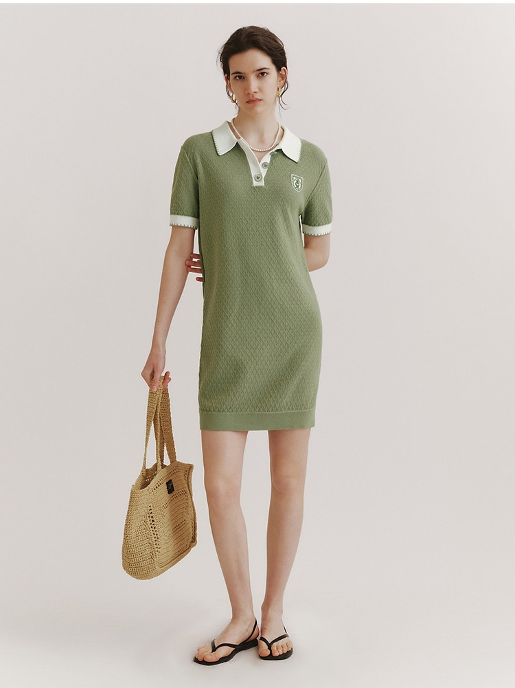 连衣裙小熊款夏装肌理感撞色Polo领短袖毛衣连衣裙女装 675457