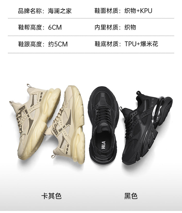商品名称:黑武士系列老爹鞋男子休闲男鞋子男款情侣休闲运动鞋增高 893391
