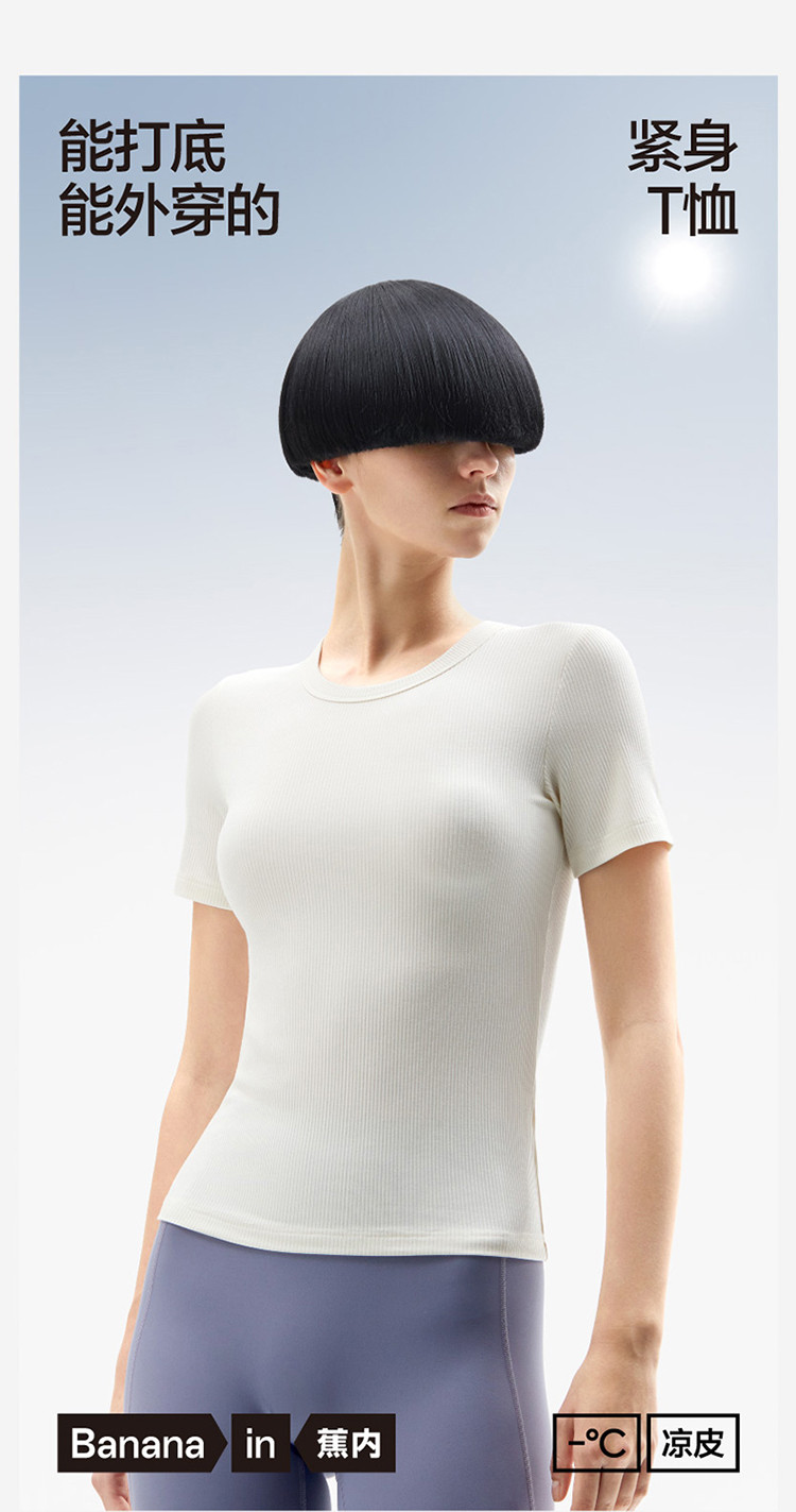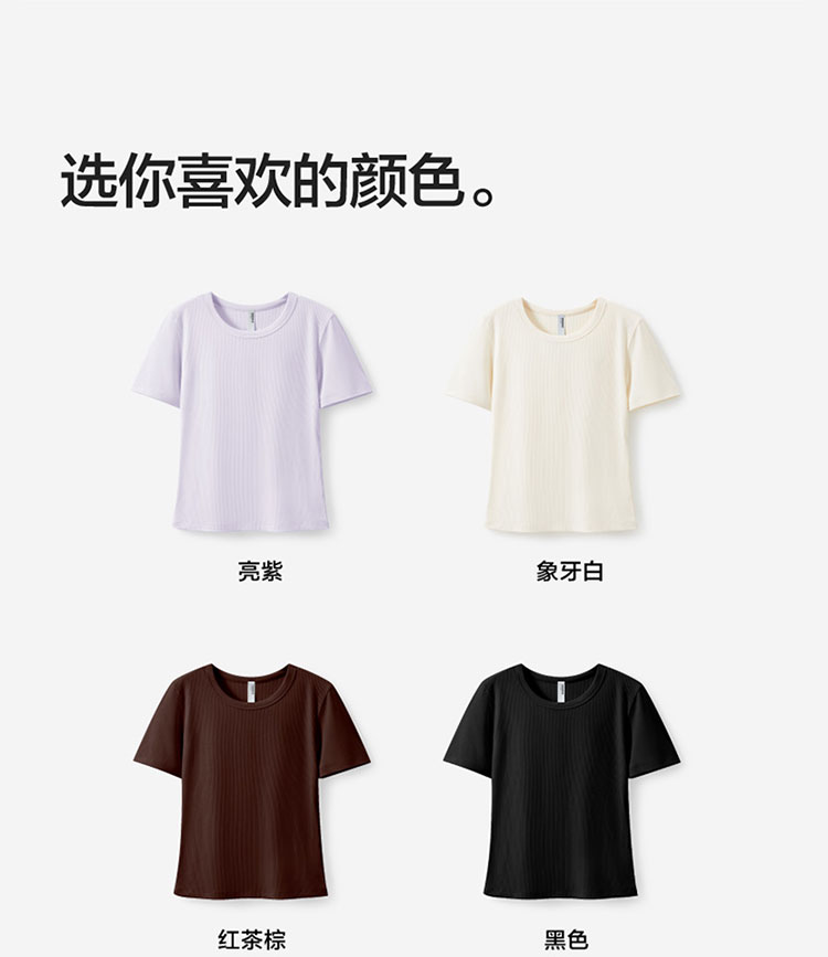 商品名称:凉皮501Cool女士圆领纯色短款T恤柔软亲肤吸汗莫代尔短袖 727749