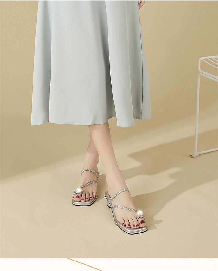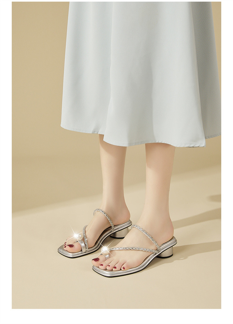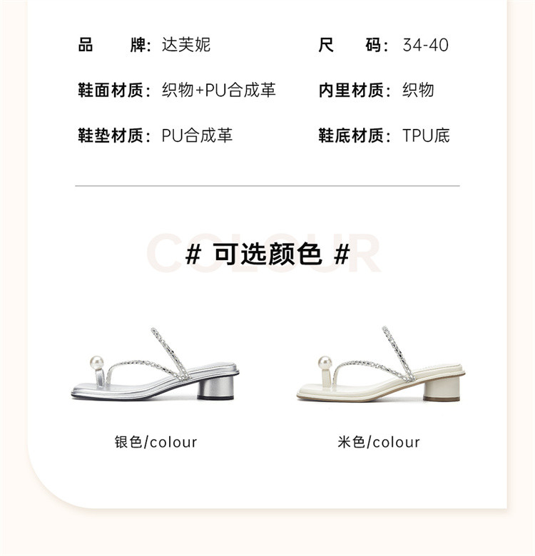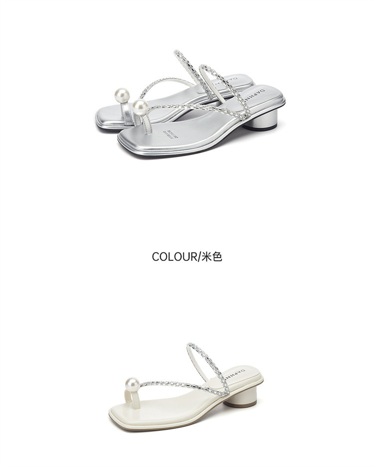商品名称:【珍珠装饰】夏季居家拖鞋女舒适套趾高级感低跟时装凉拖舒适女鞋 877402
