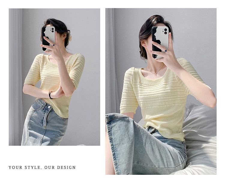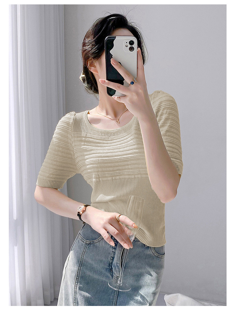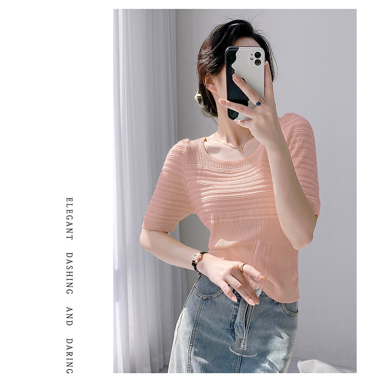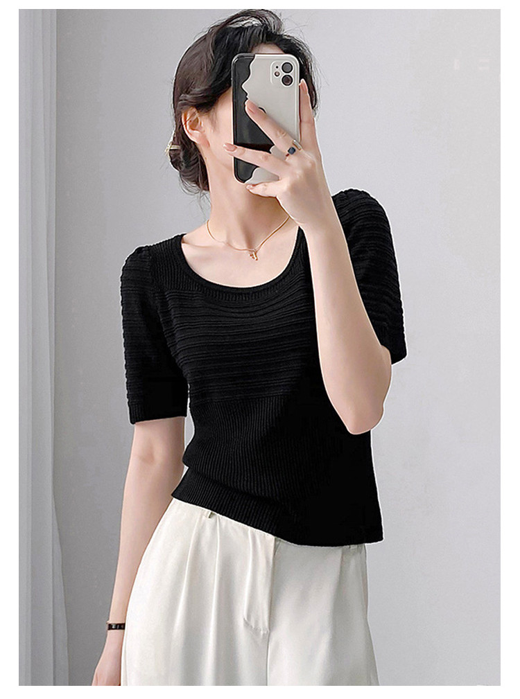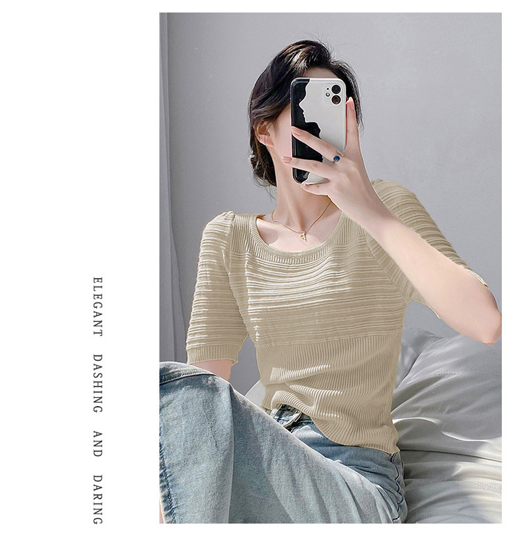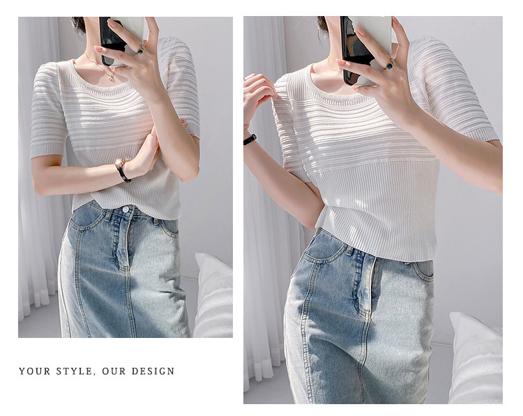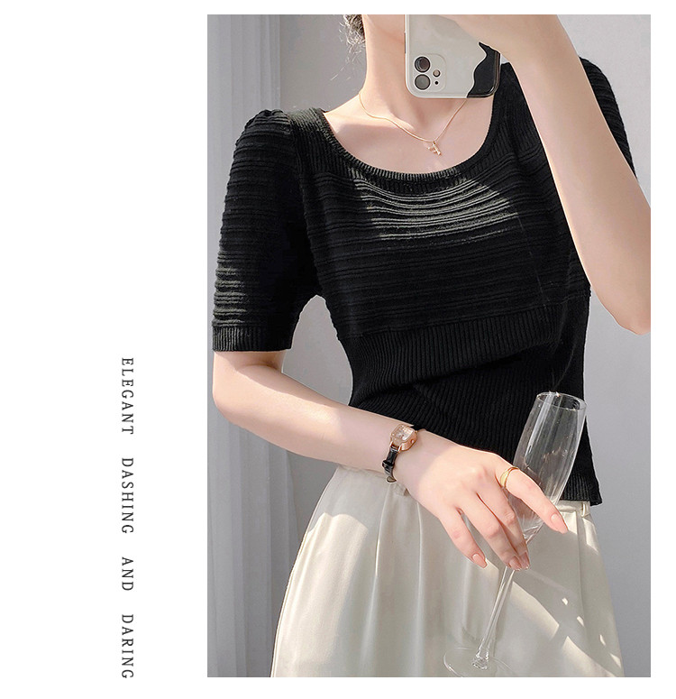商品名称:法式淑女短袖针织衫女设计感圆领气质短款打底外穿上衣女 053955