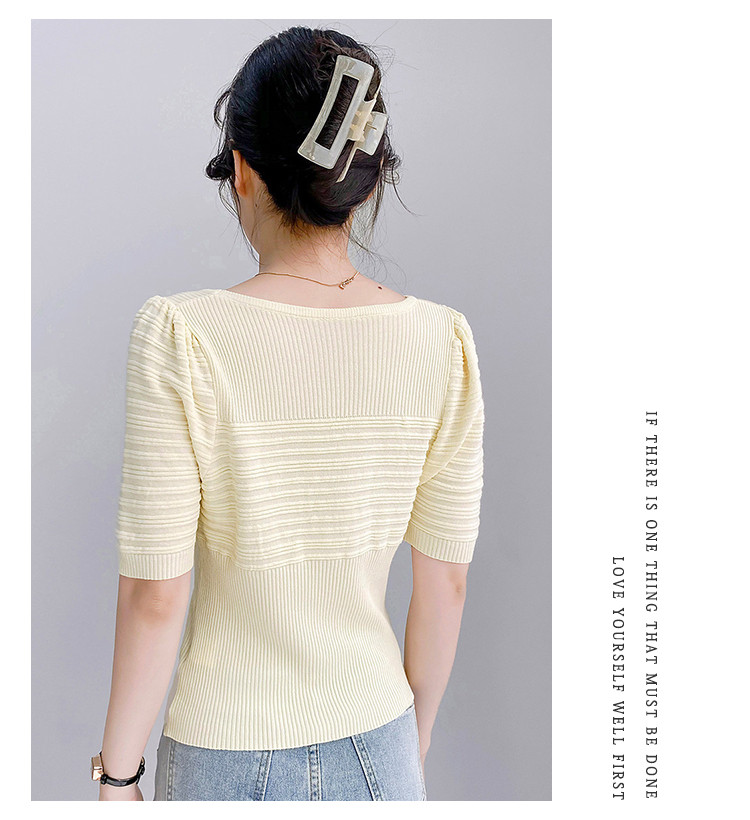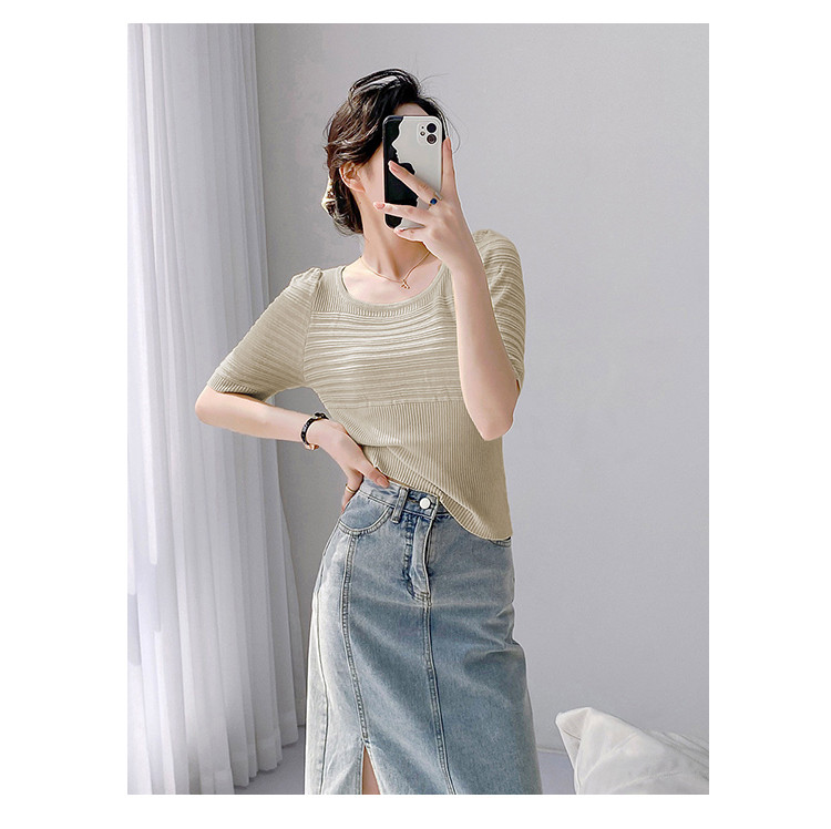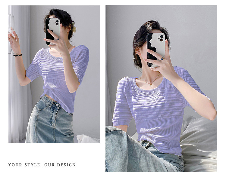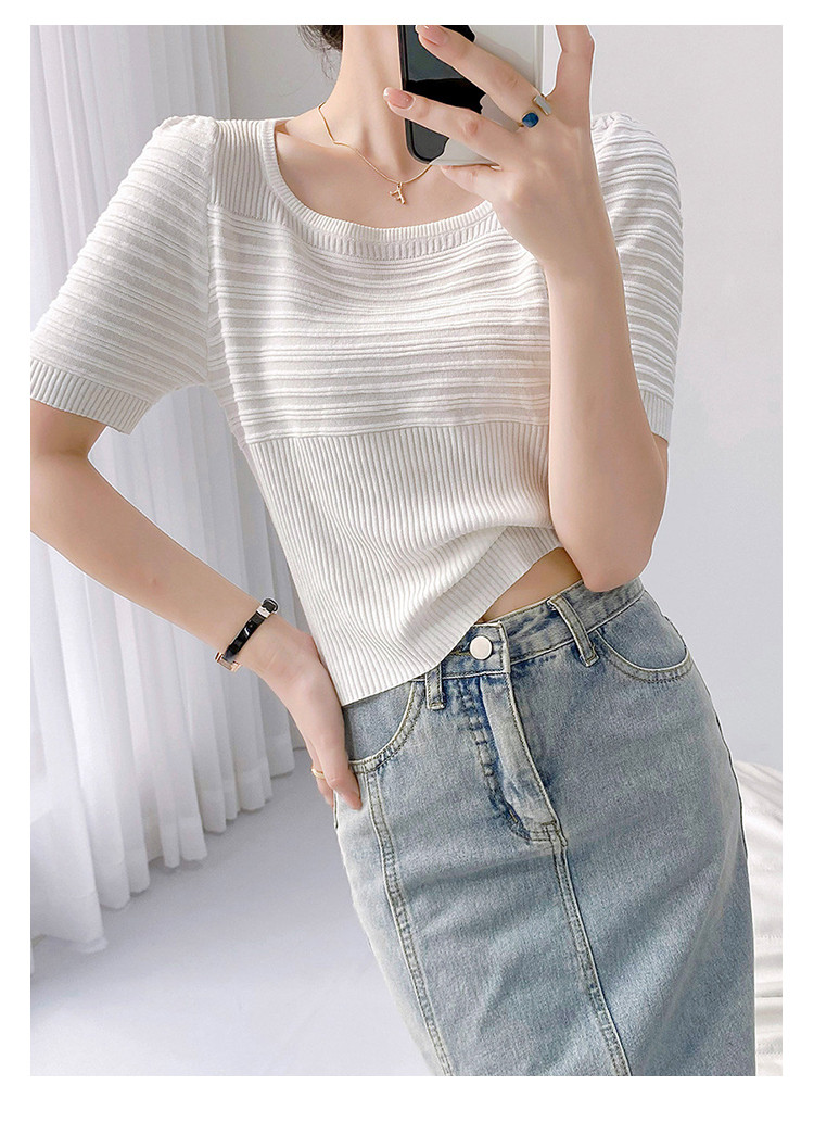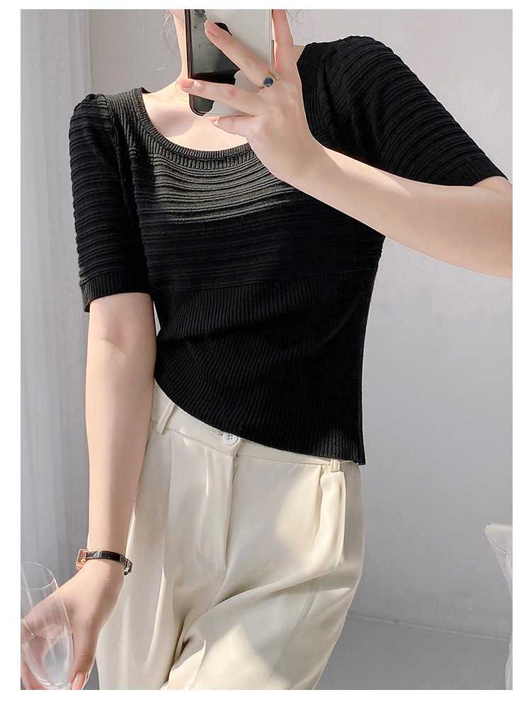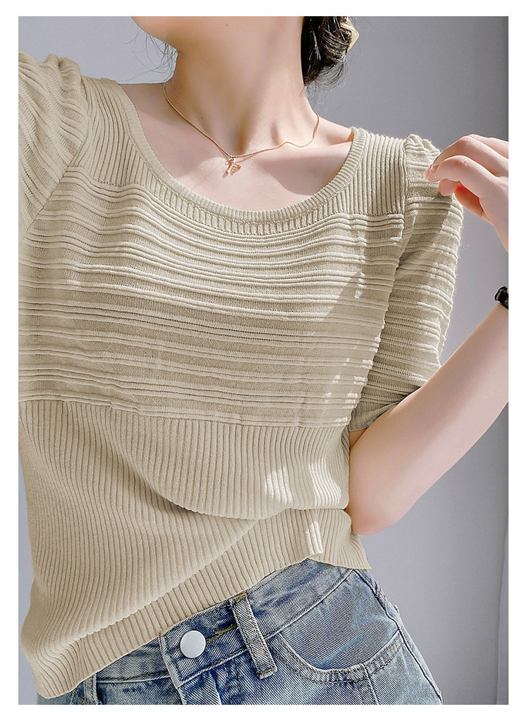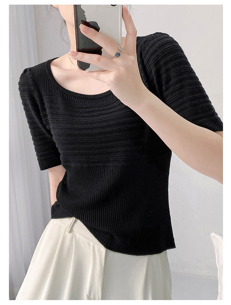 商品名称:法式淑女短袖针织衫女设计感圆领气质短款打底外穿上衣女 053955