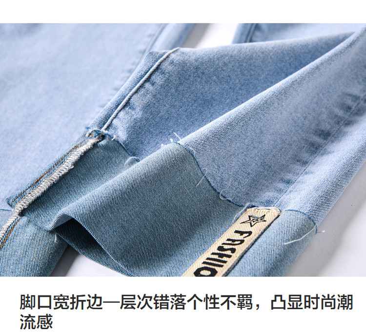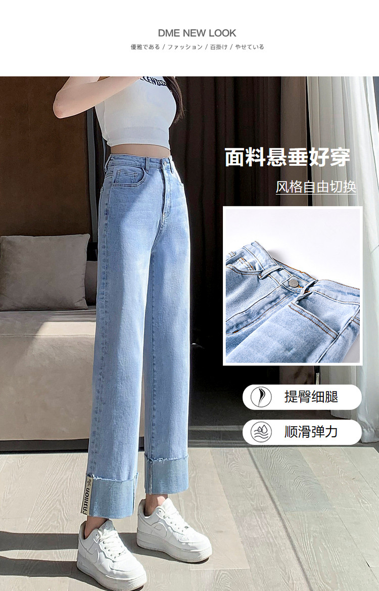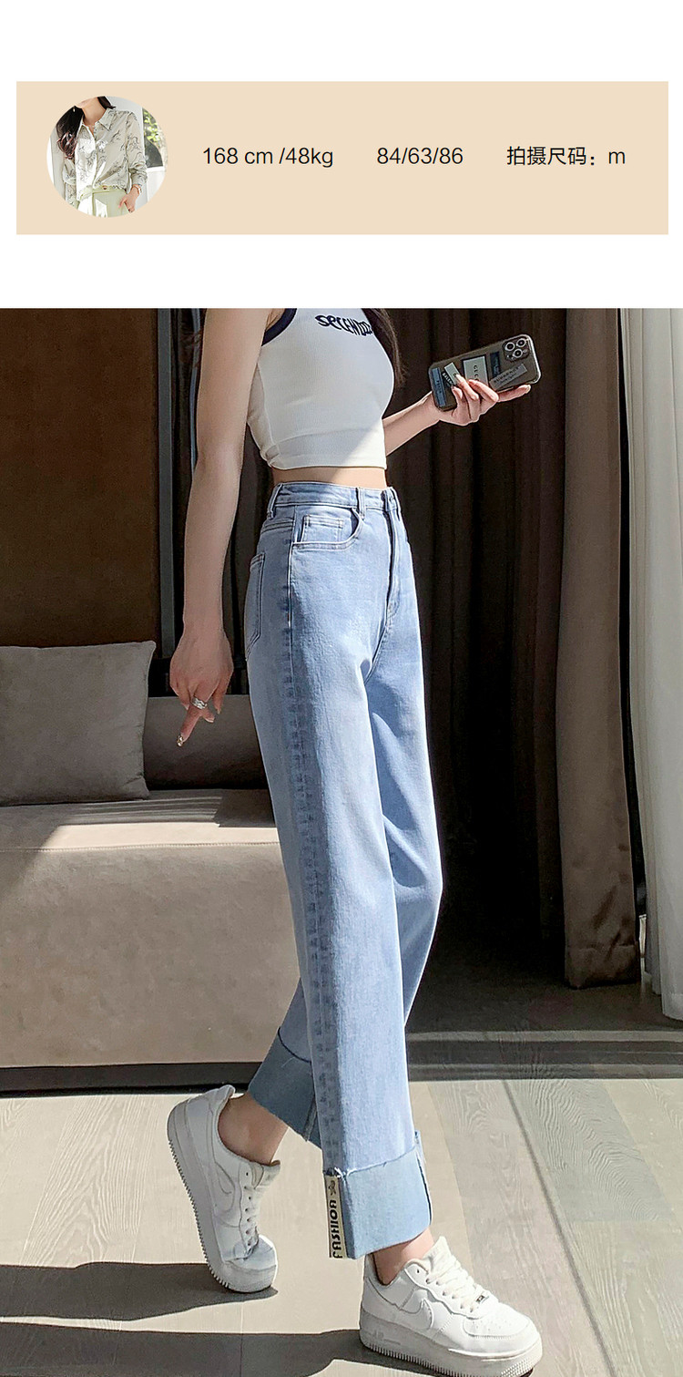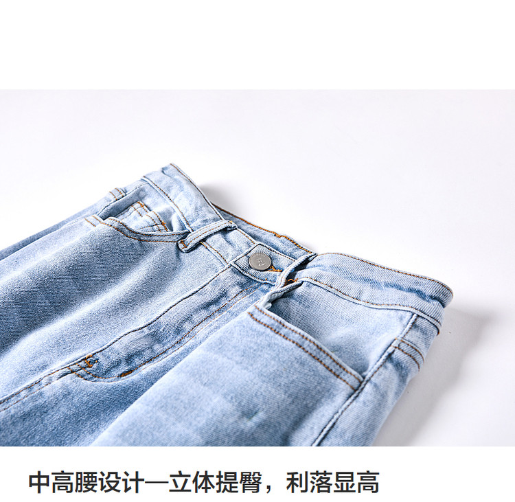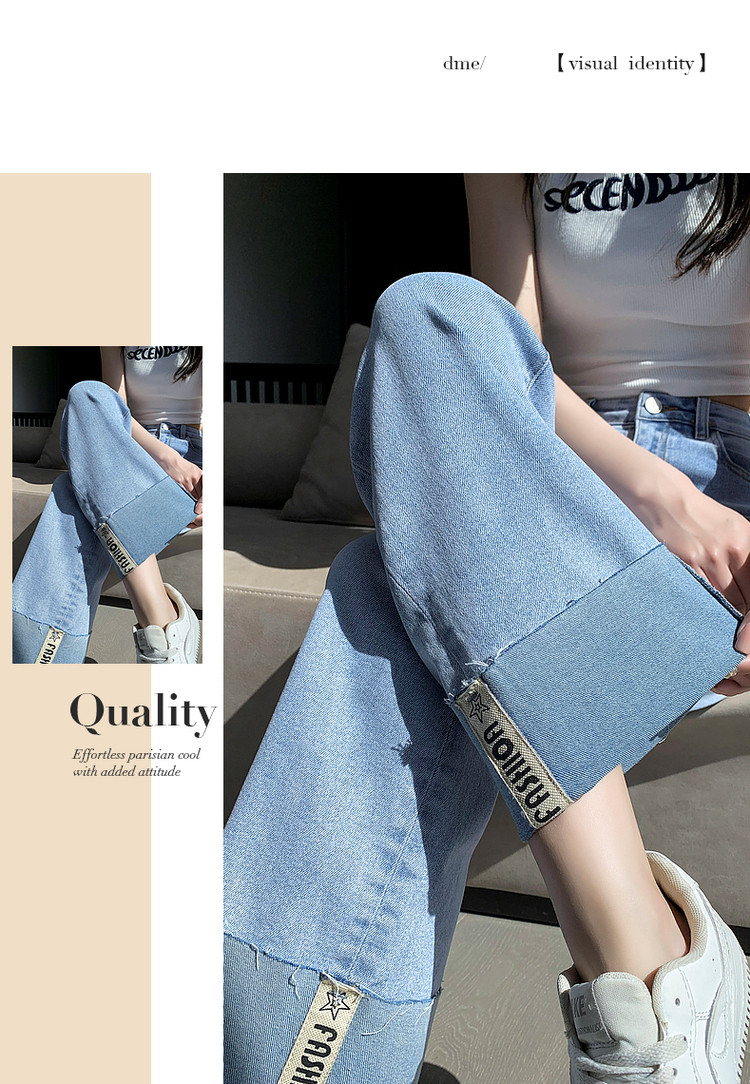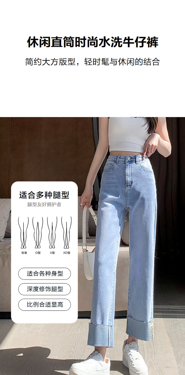 商品名称:【时尚毛边织带牛仔裤】春秋中腰水洗棉质直筒牛仔裤女 991233