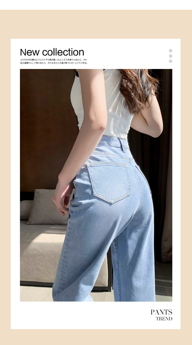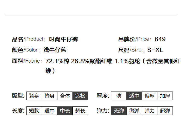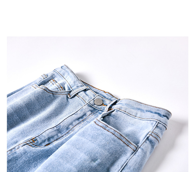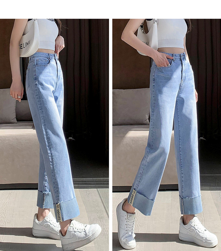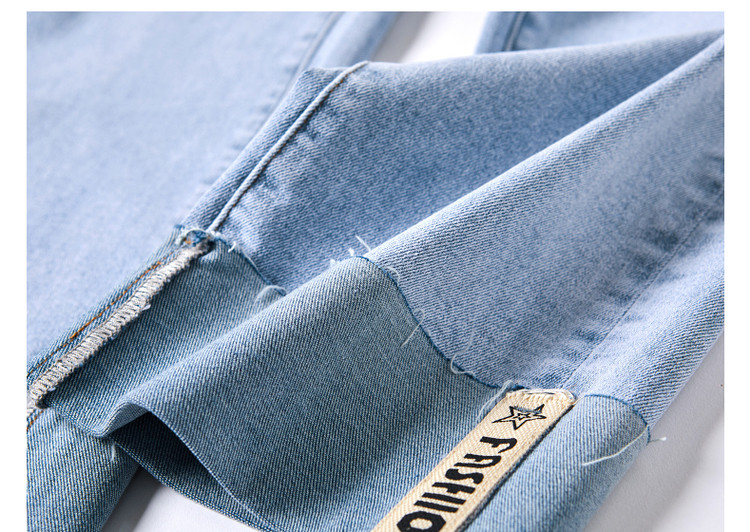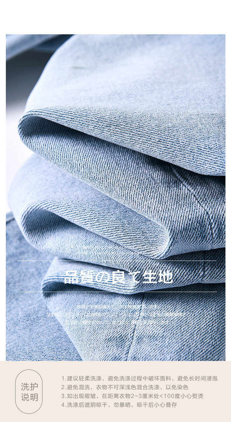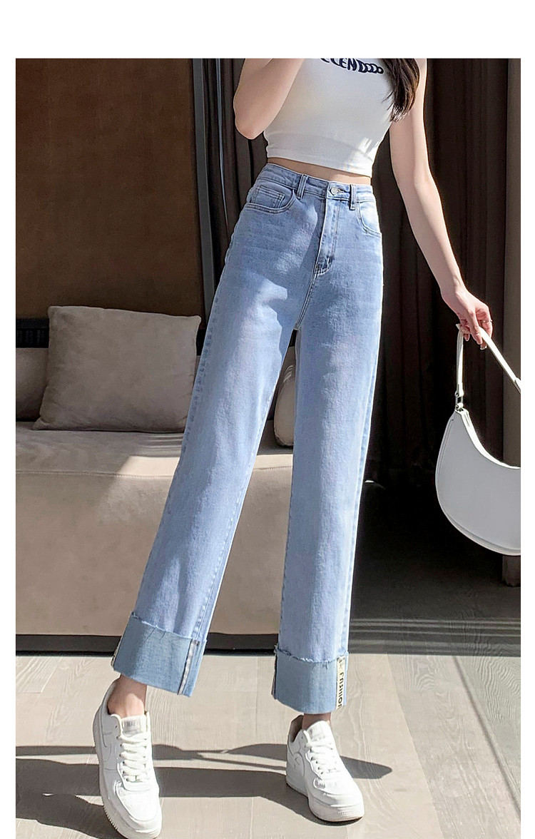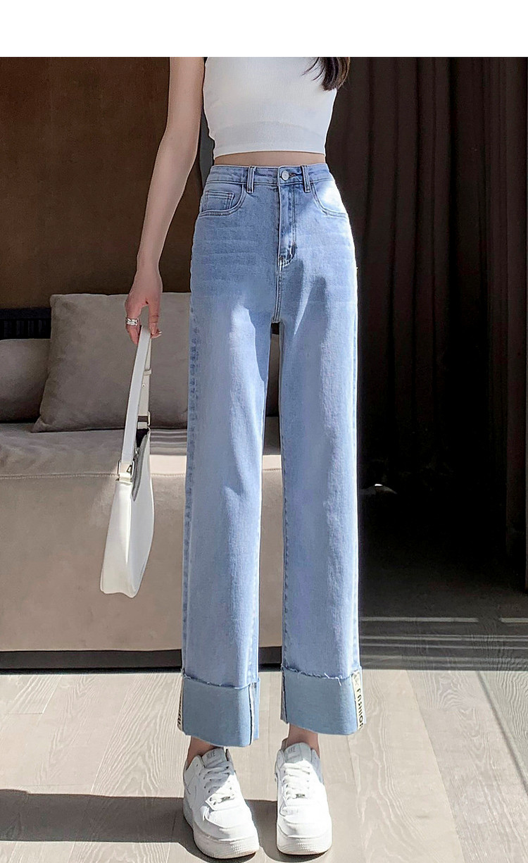 商品名称:【时尚毛边织带牛仔裤】春秋中腰水洗棉质直筒牛仔裤女 991233