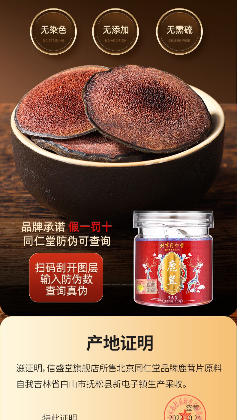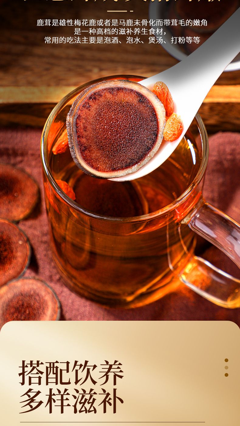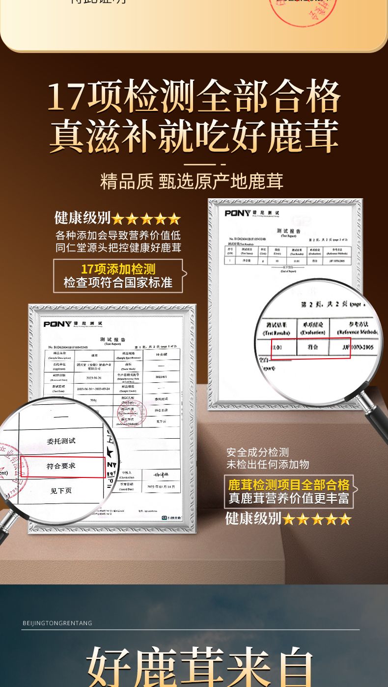 商品名称:2瓶北京同仁堂鹿茸10g切片红粉片含血量足鹿鞭切片泡酒料滋补泡水喝泡茶