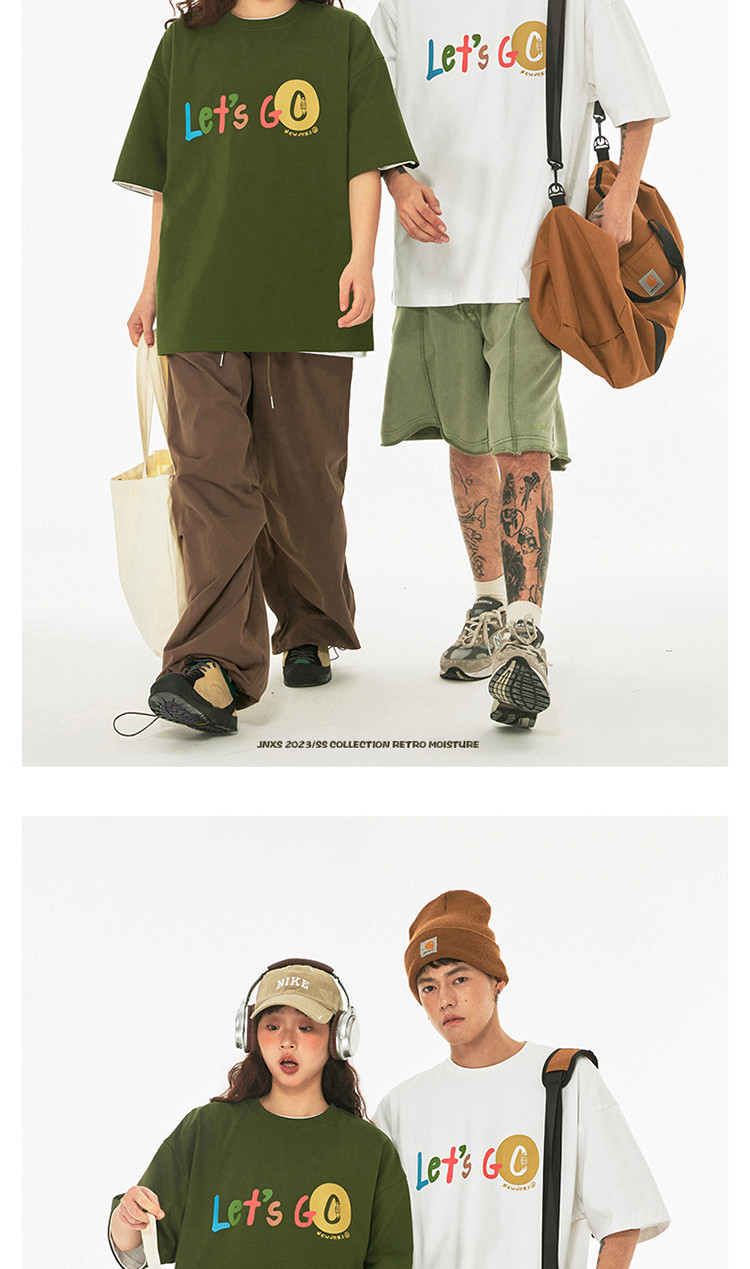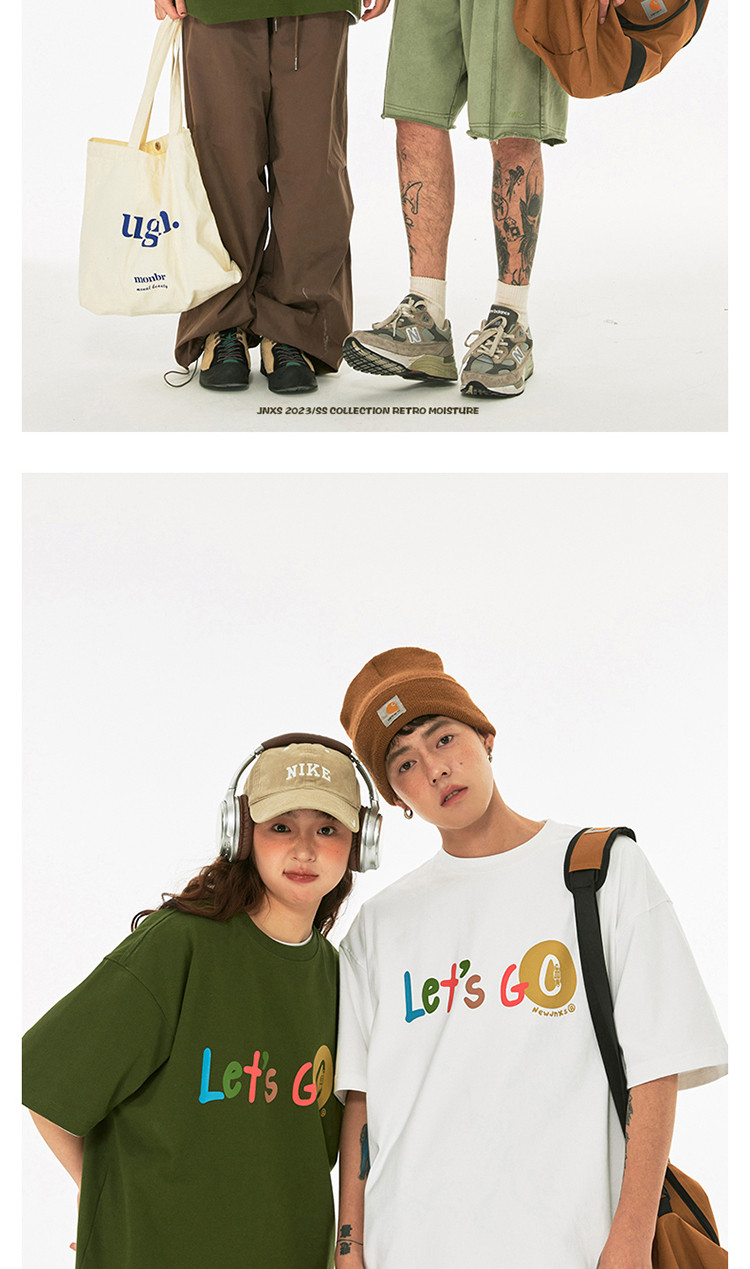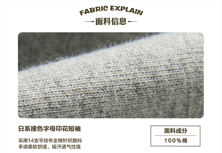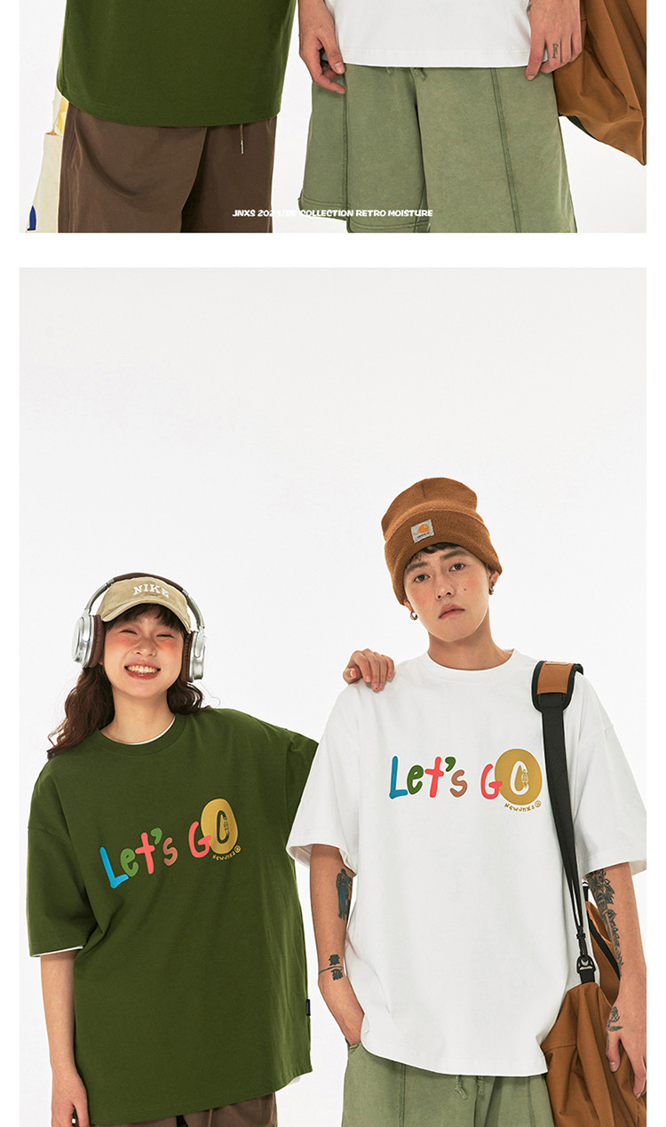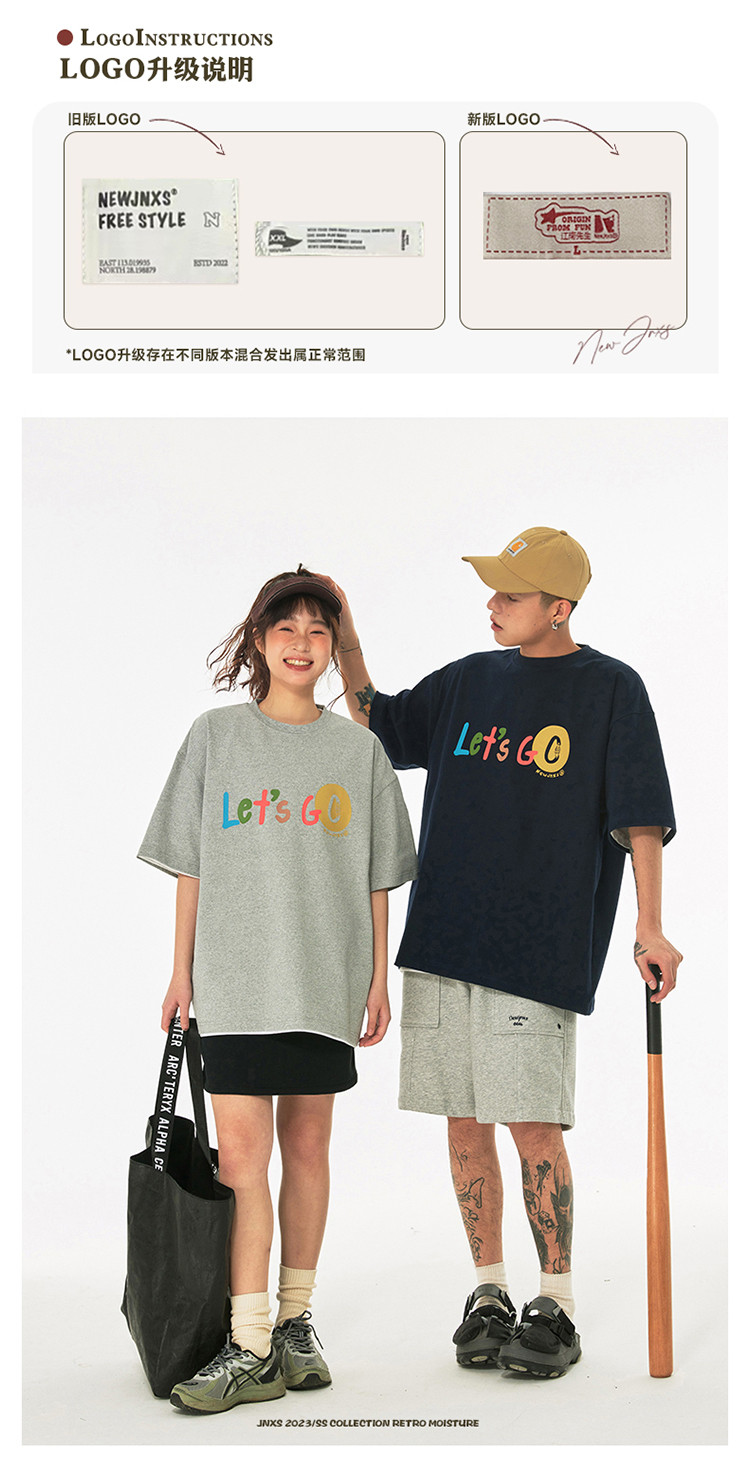 商品名称:JNXS江南先生日系撞色字母印花短袖t恤男女夏季潮牌情侣装半袖tee 229329