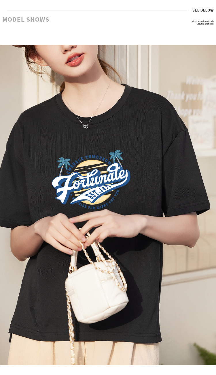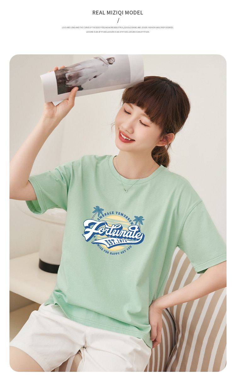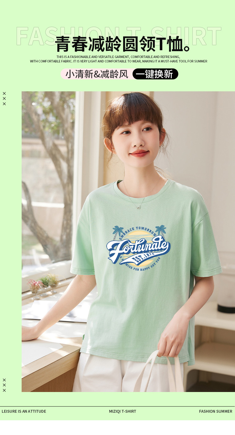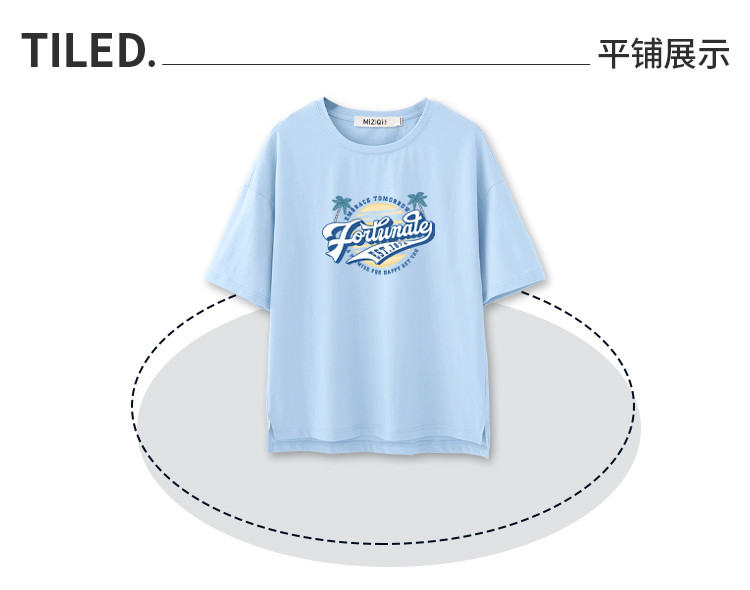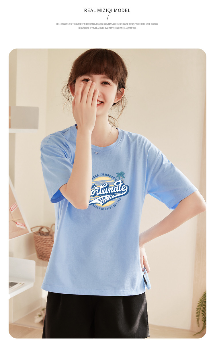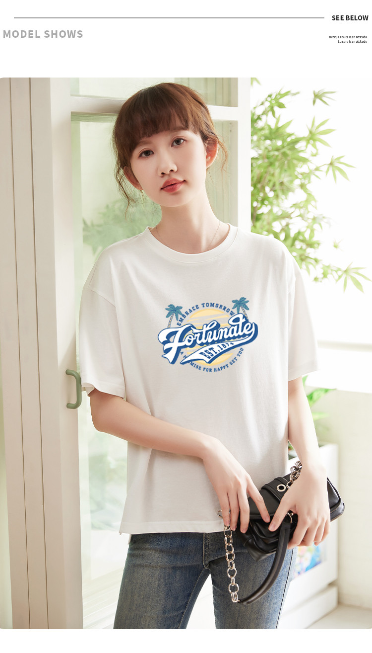 商品名称:米子旗夏季圆领创意印花女式大码T恤宽松版休闲显瘦短袖上衣 692250