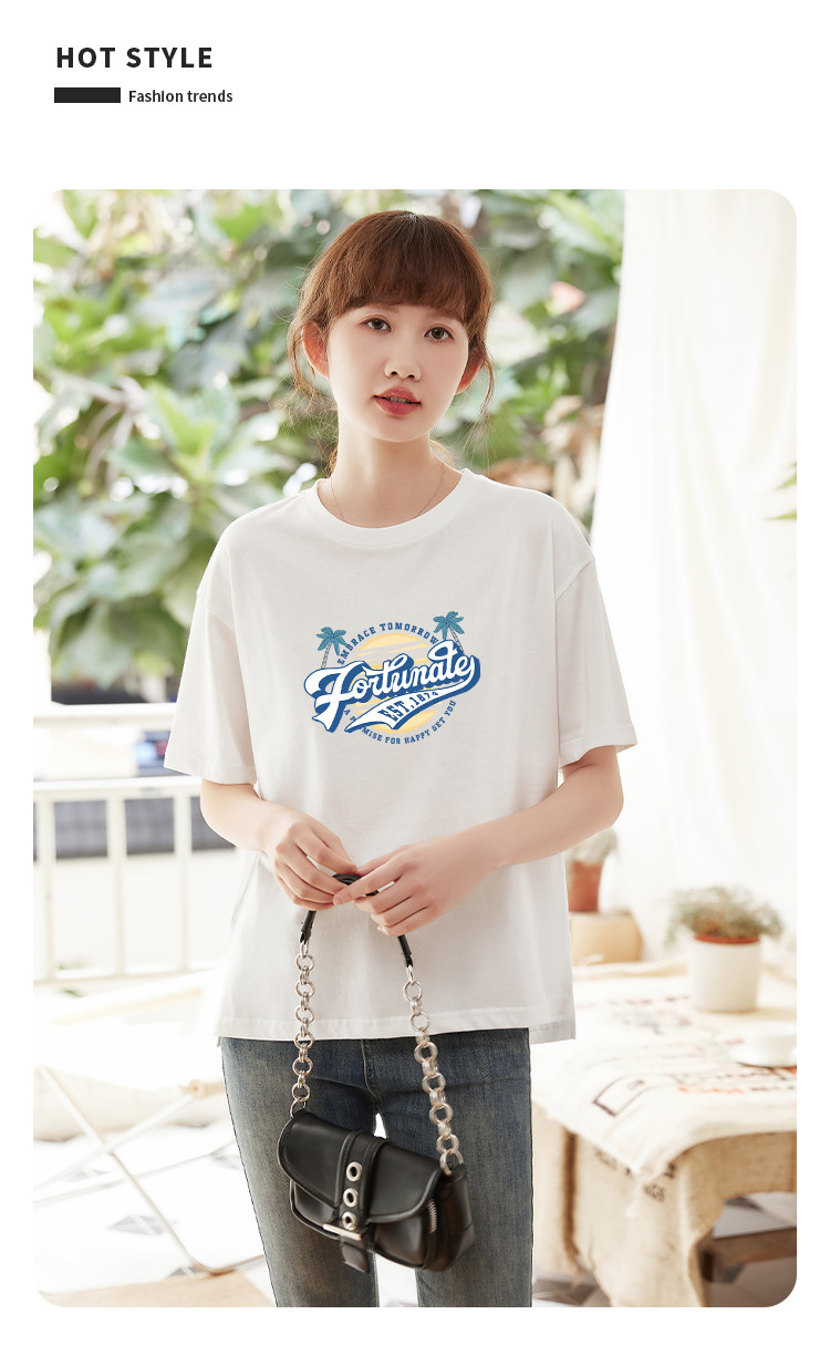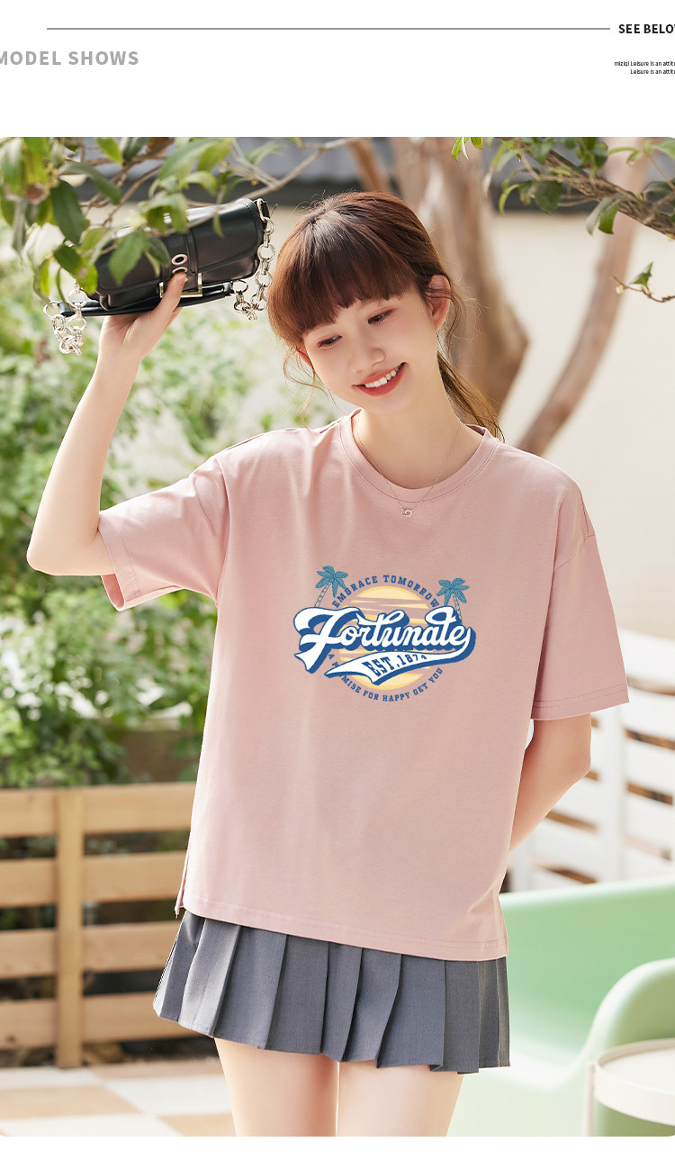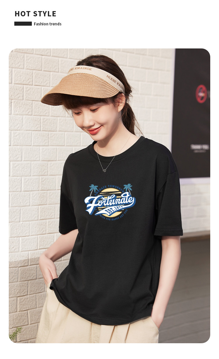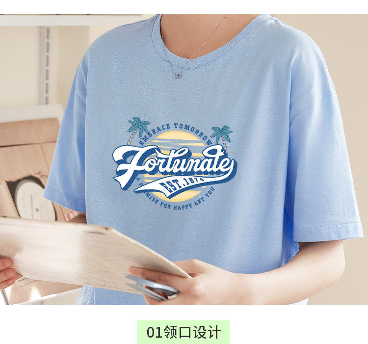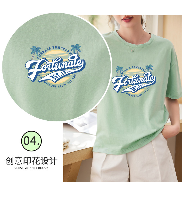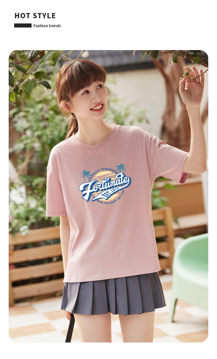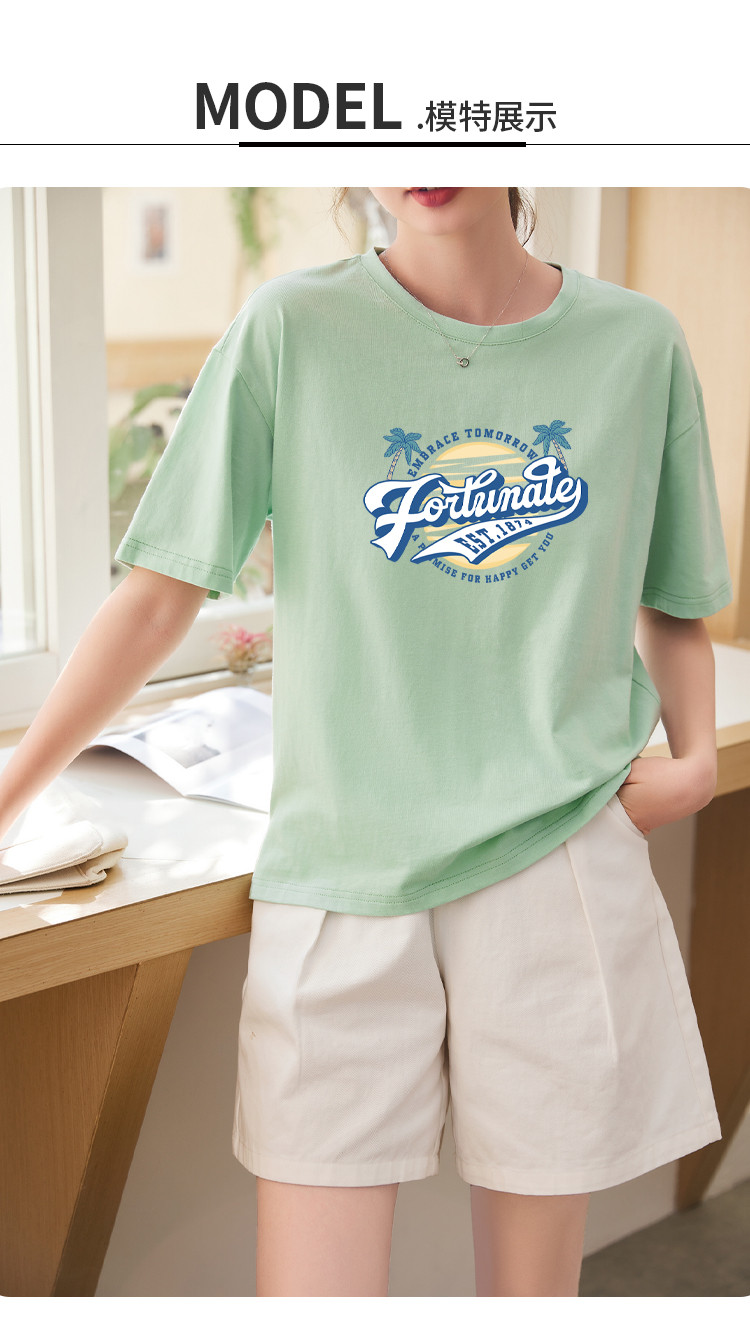 商品名称:米子旗夏季圆领创意印花女式大码T恤宽松版休闲显瘦短袖上衣 692250