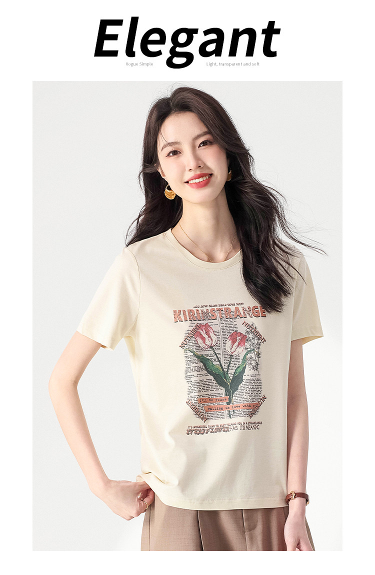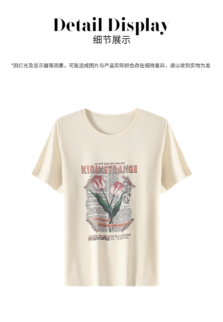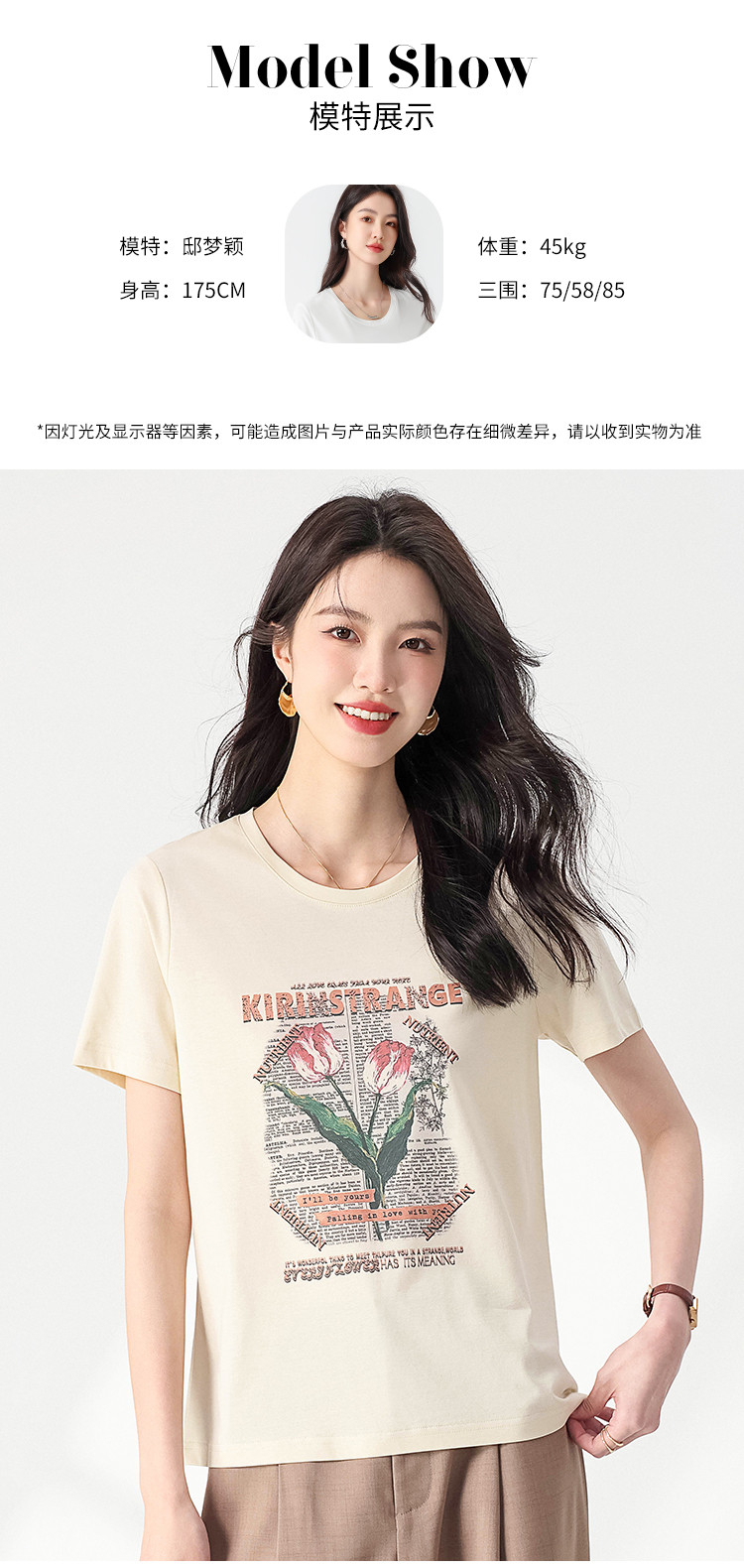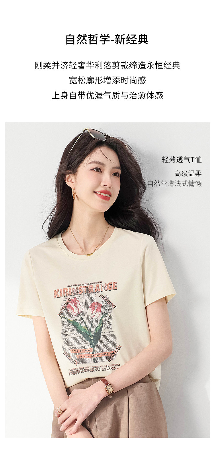 商品名称:【含桑蚕丝】夏季轻薄透气印花圆领短袖t恤女上衣 003859