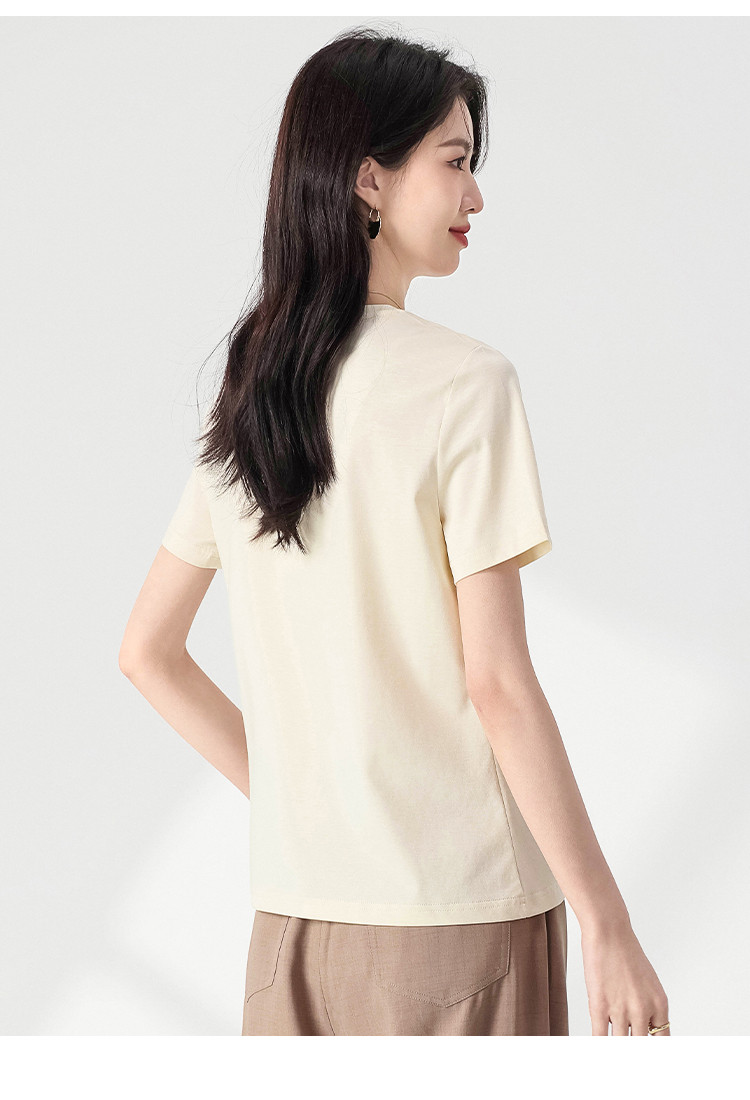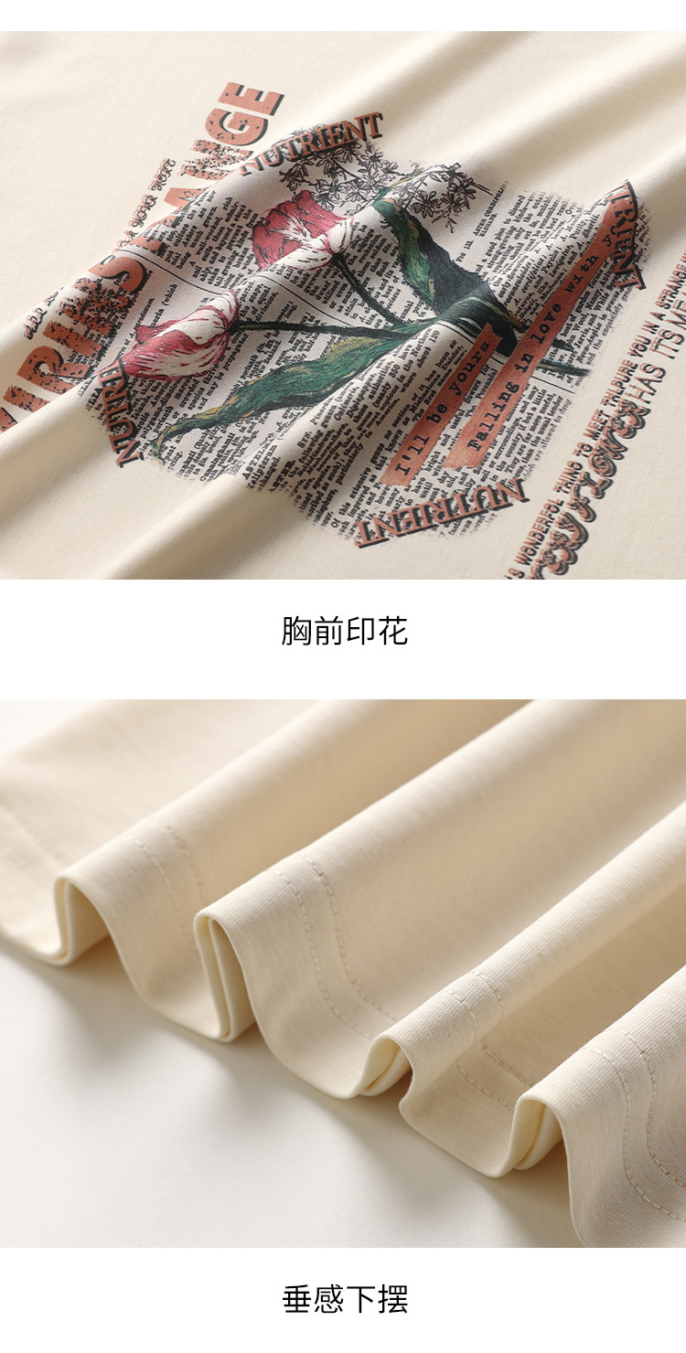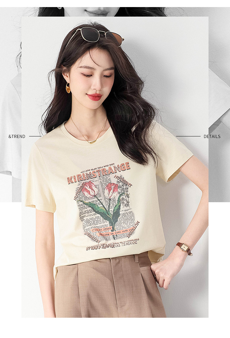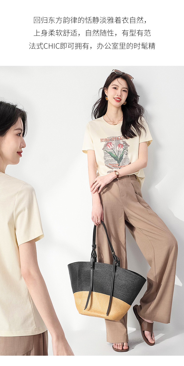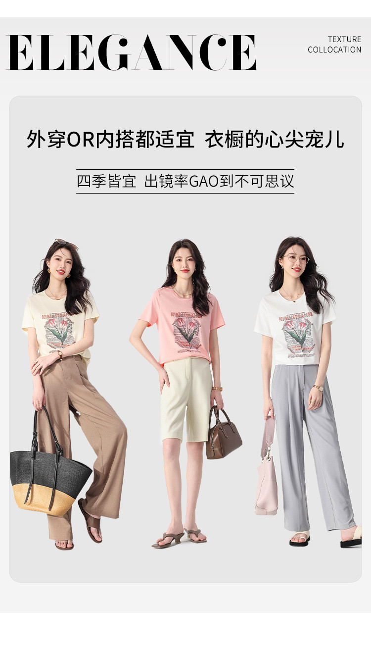 商品名称:【含桑蚕丝】夏季轻薄透气印花圆领短袖t恤女上衣 003859