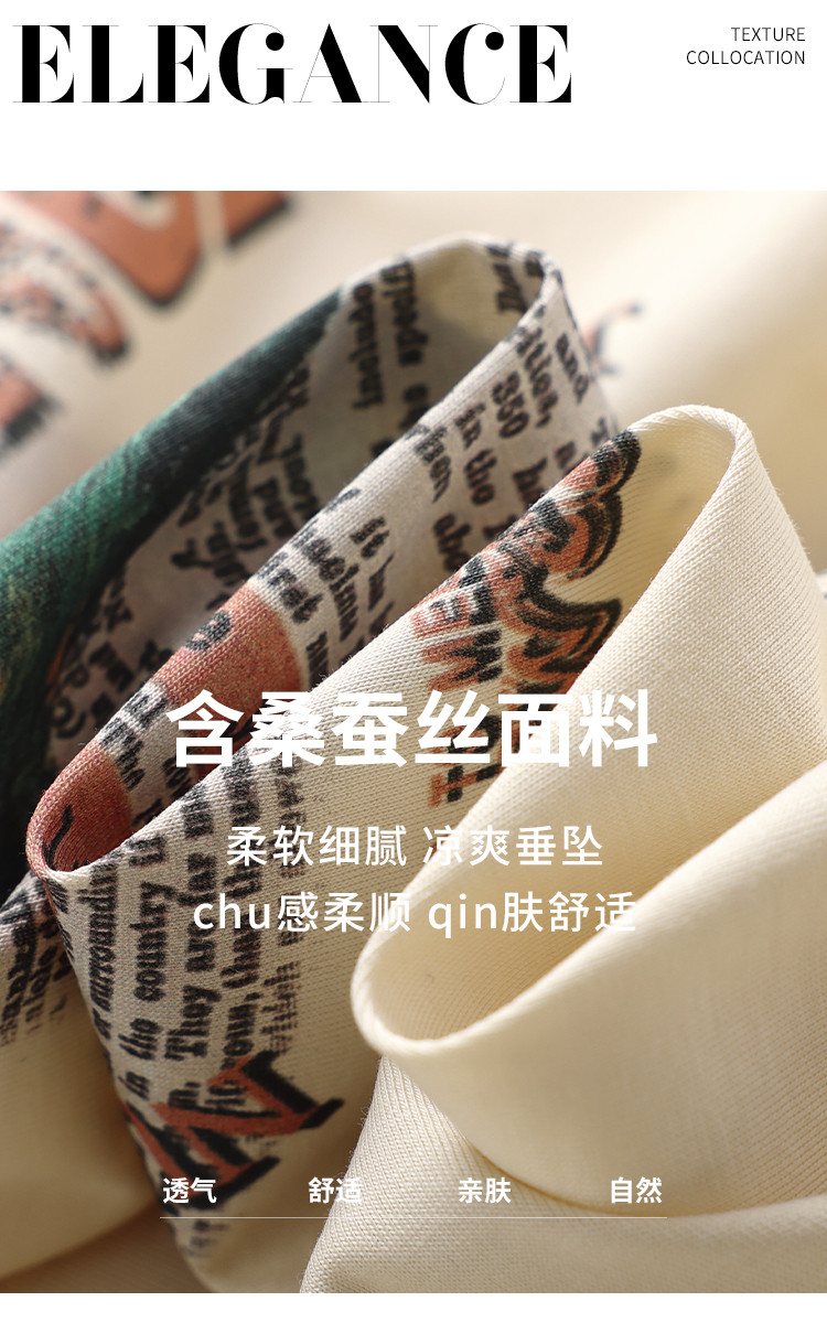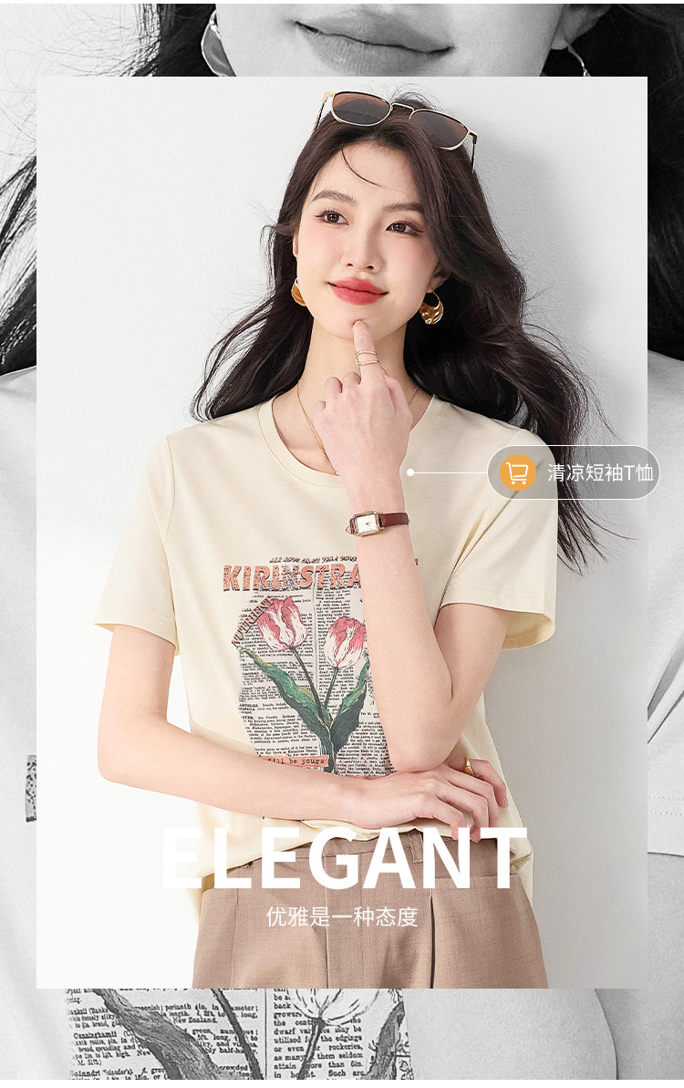 【含桑蚕丝】夏季轻薄透气印花圆领短袖t恤女上衣 003859