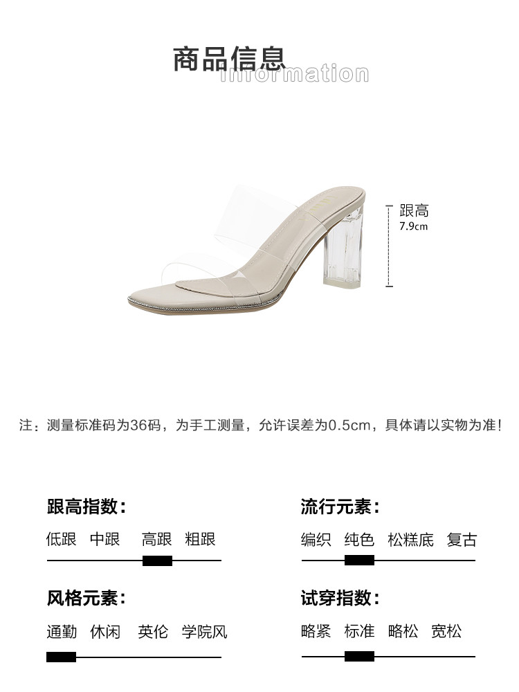 商品名称:春夏透明片时尚方头外穿高跟穆勒拖女鞋女凉鞋拖鞋 087169