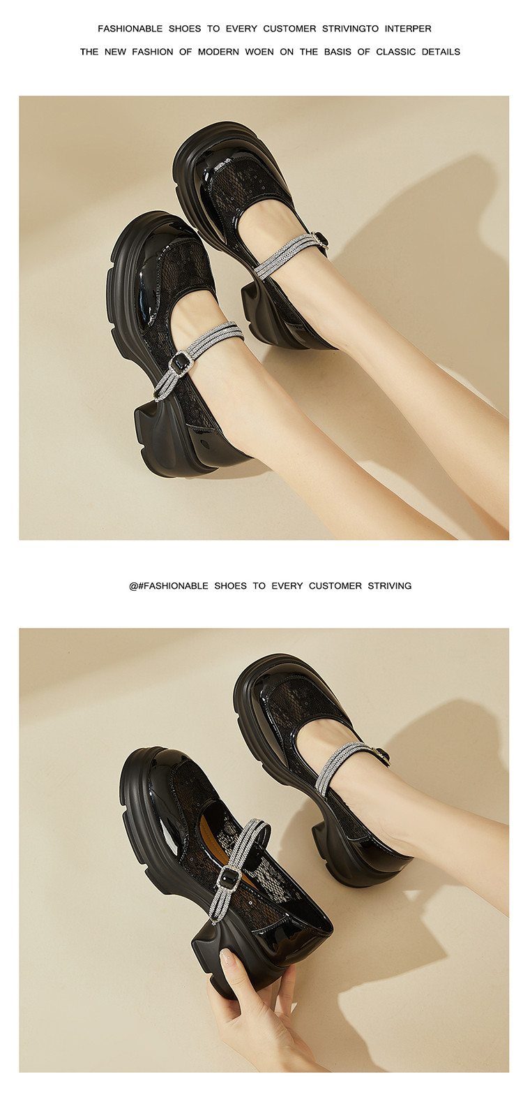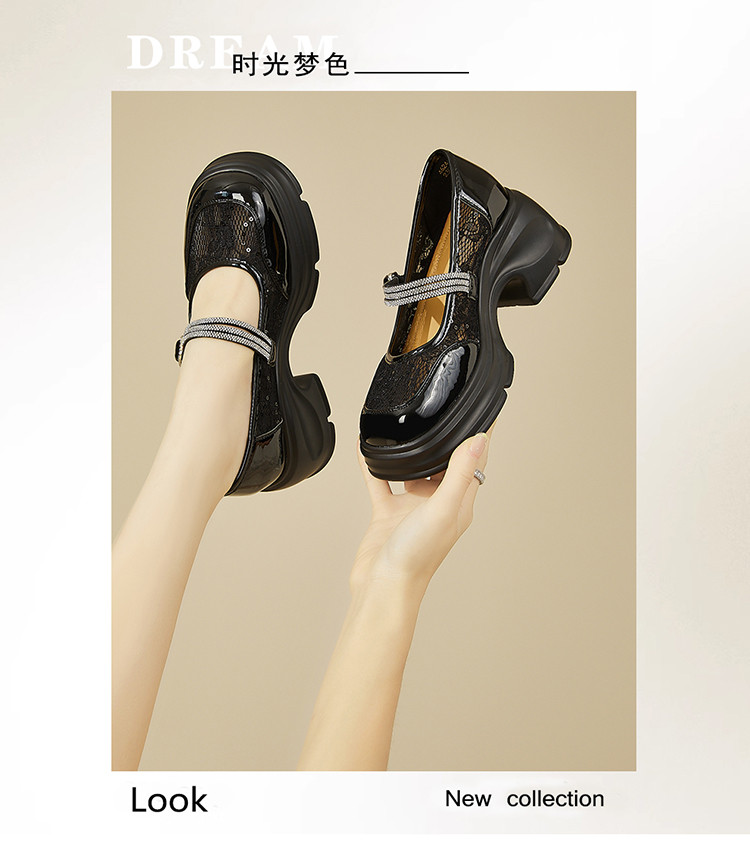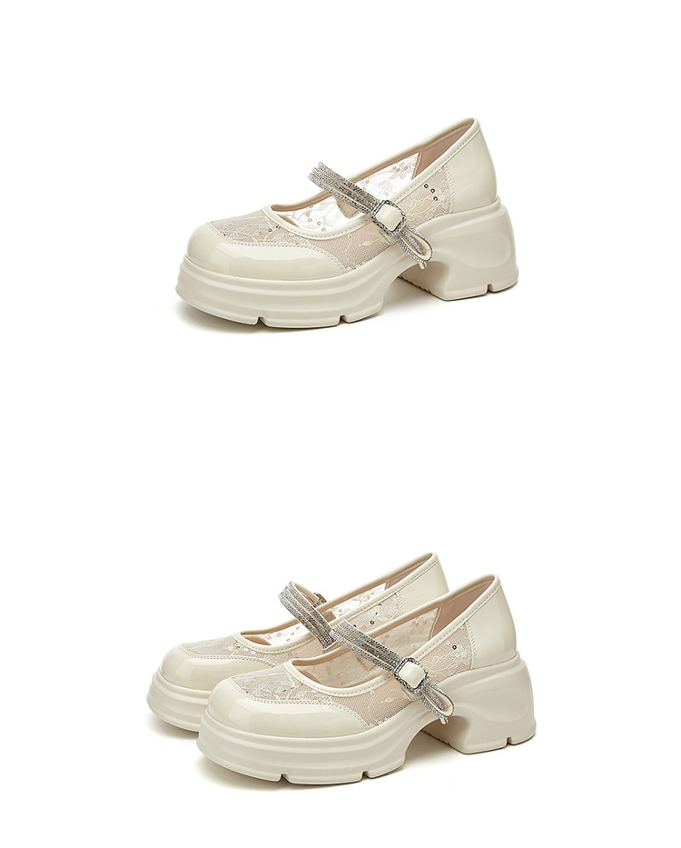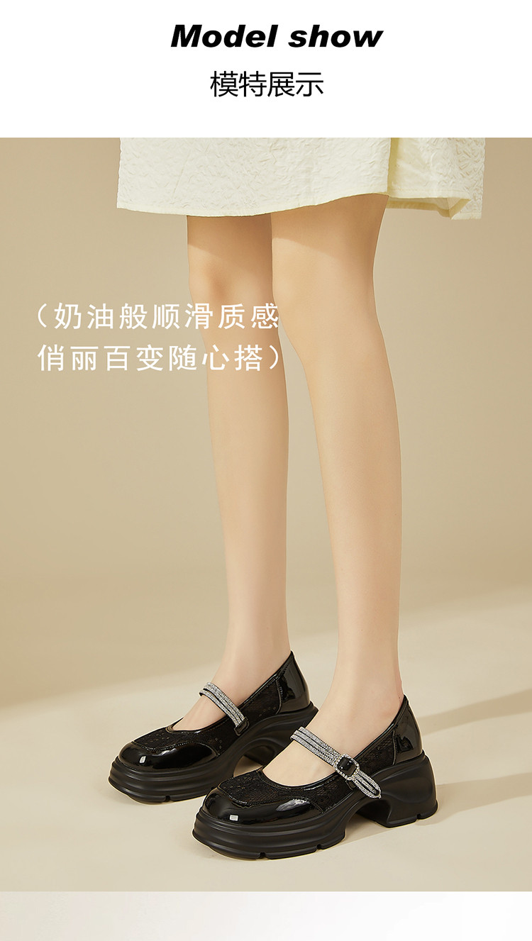 【爆款推荐】夏季蕾丝网纱玛丽珍鞋女粗跟乐福鞋透气厚底女鞋子 035351