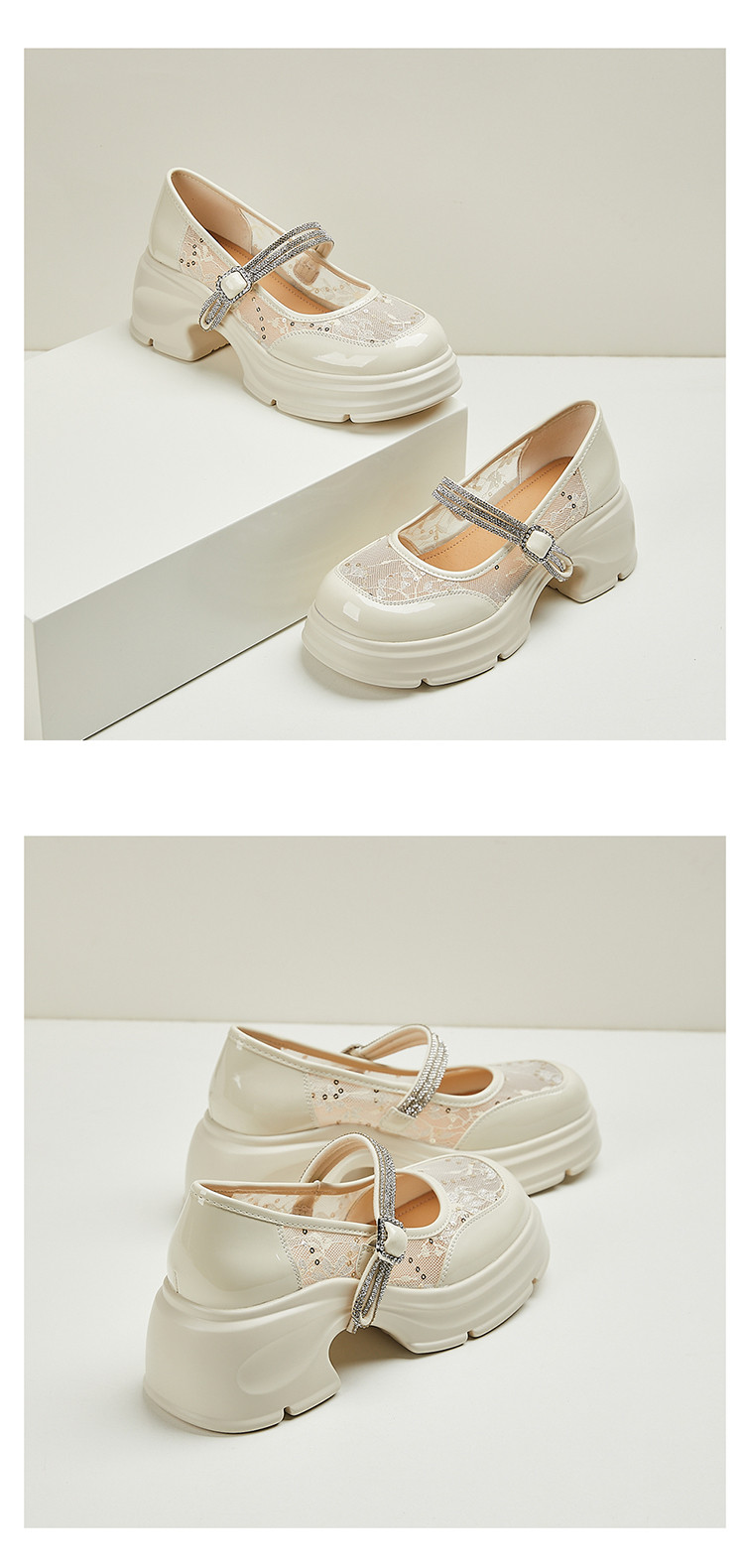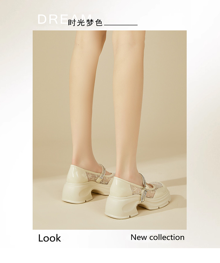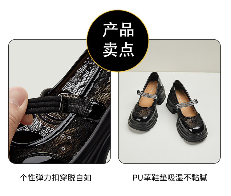商品名称:【爆款推荐】夏季蕾丝网纱玛丽珍鞋女粗跟乐福鞋透气厚底女鞋子 035351