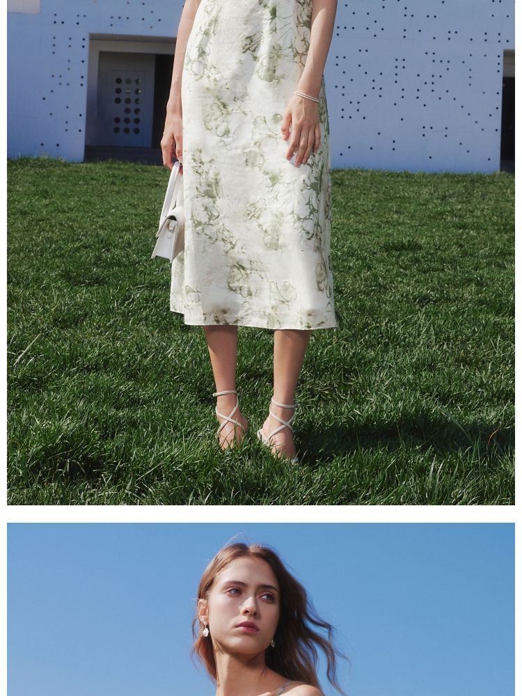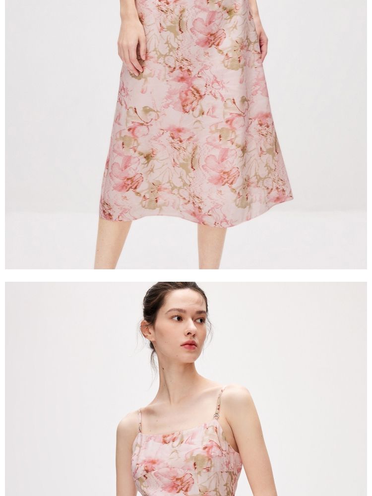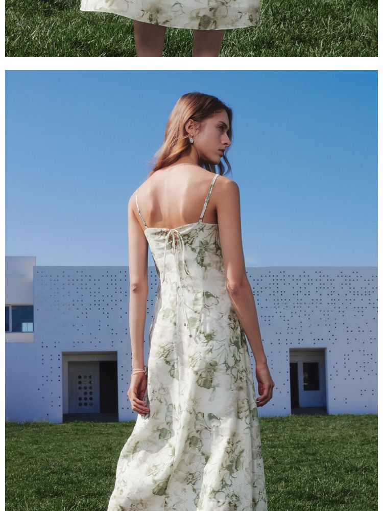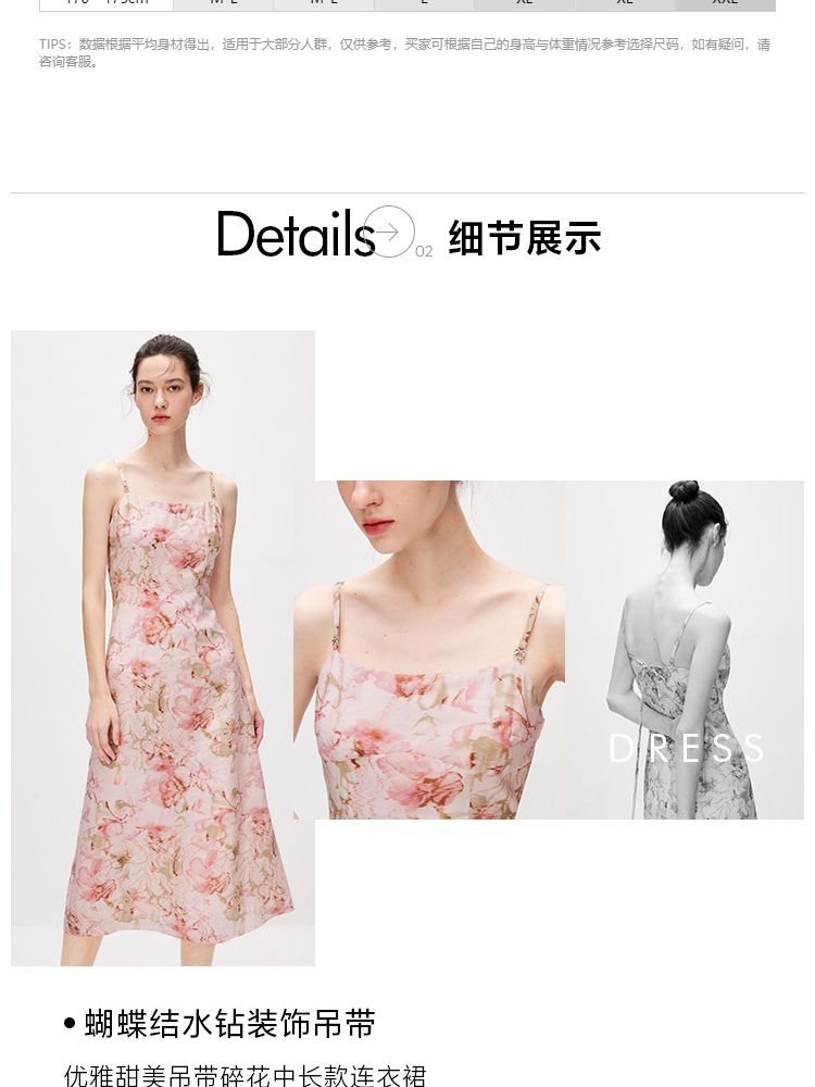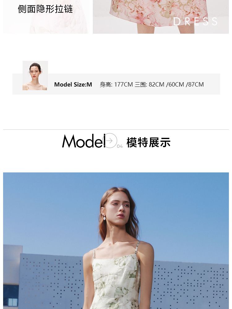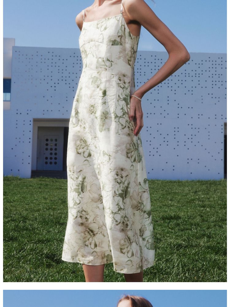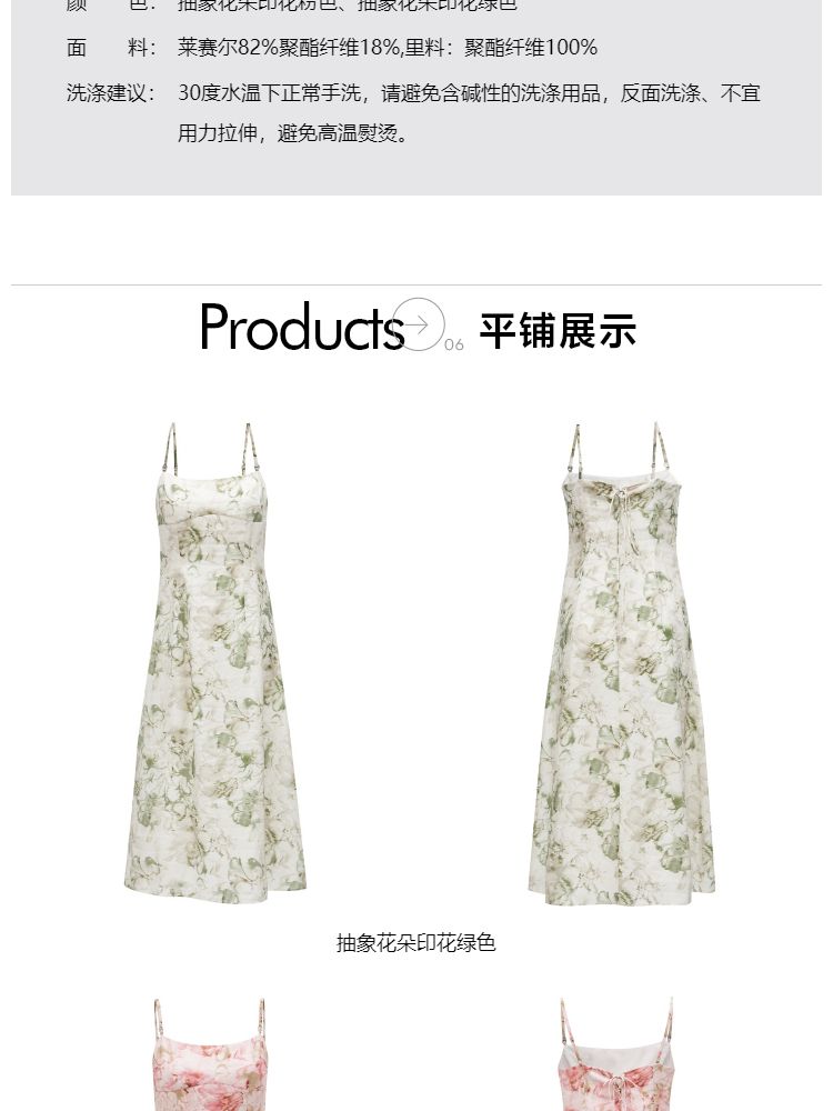 商品名称:【莱赛尔】 夏季吊带碎花中长款气质田园风连衣裙女 030554