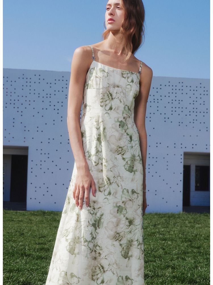 【莱赛尔】 夏季吊带碎花中长款气质田园风连衣裙女 030554