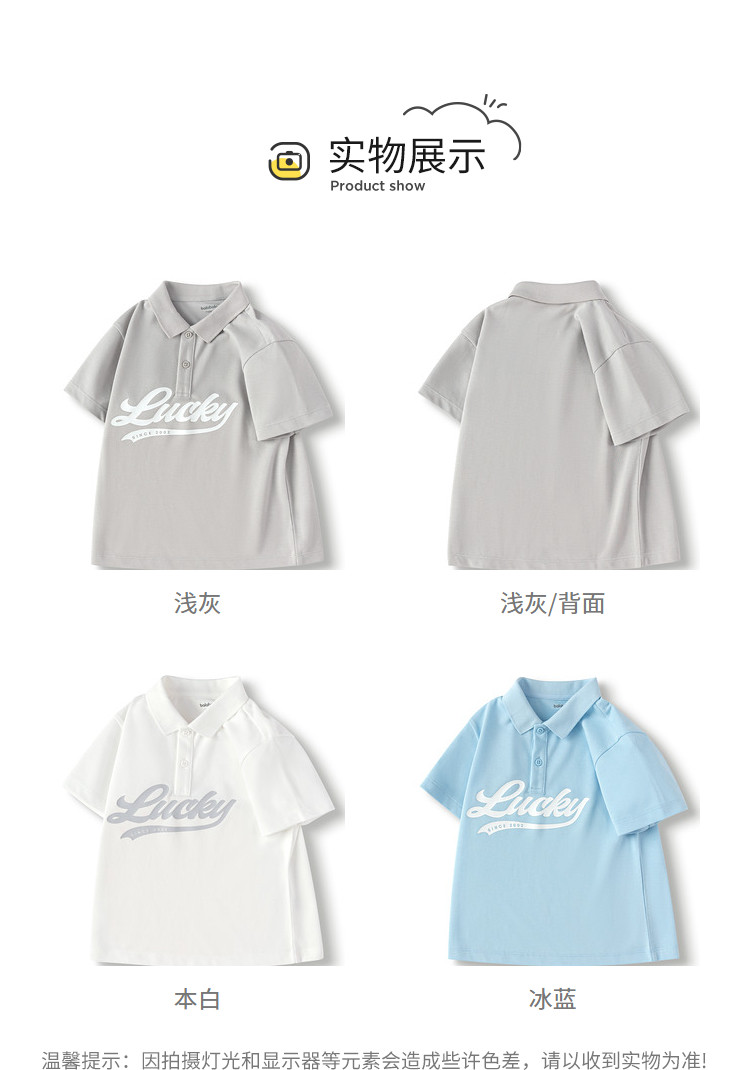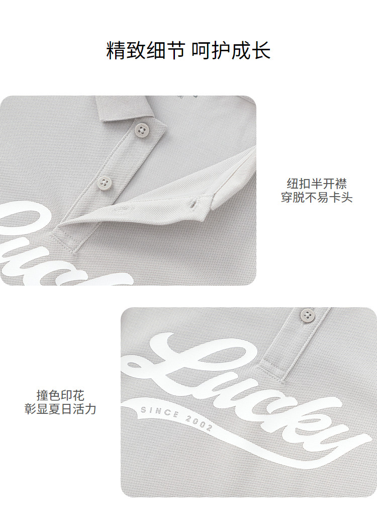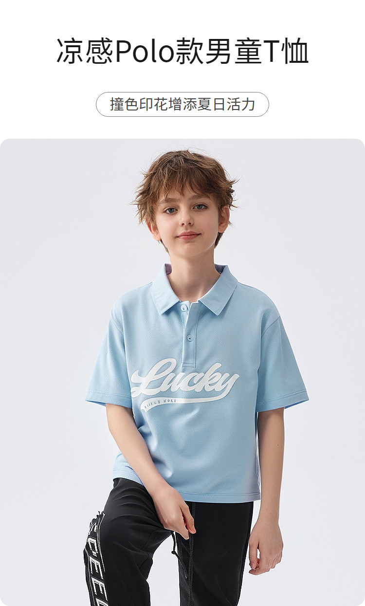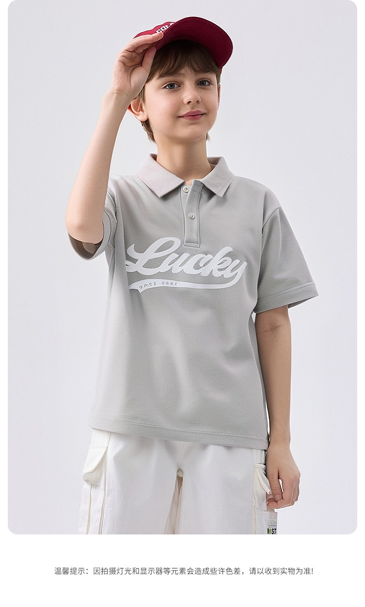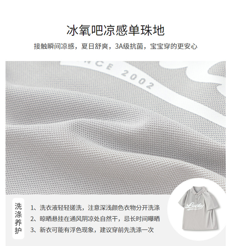 商品名称:凉感抑菌儿童T恤男童短袖夏装上衣半开襟设计校园风字母印花童装 734213