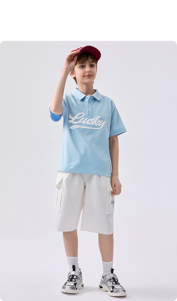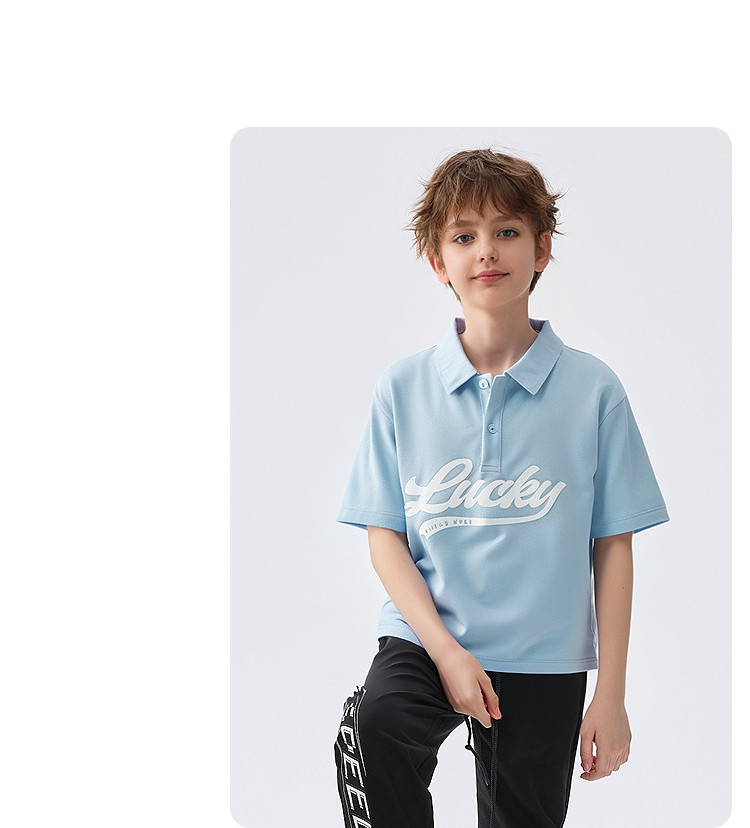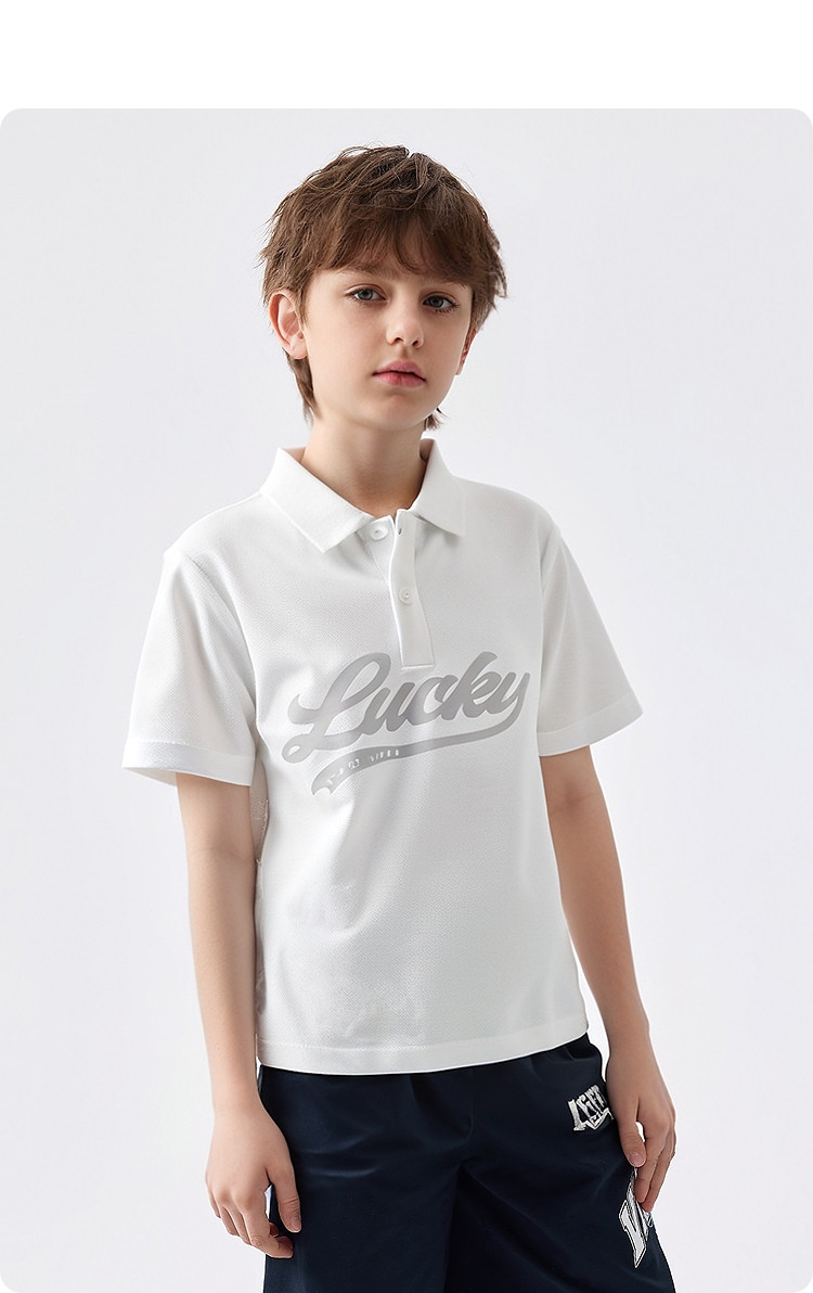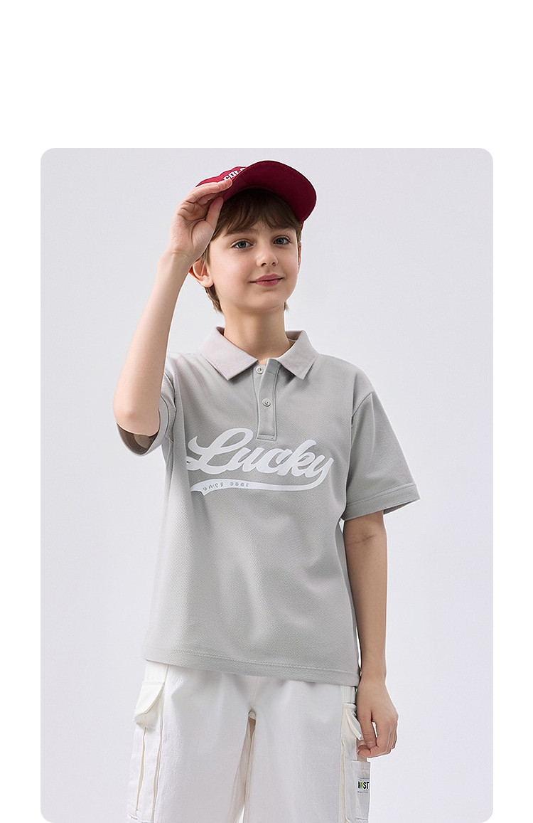 商品名称:凉感抑菌儿童T恤男童短袖夏装上衣半开襟设计校园风字母印花童装 734213