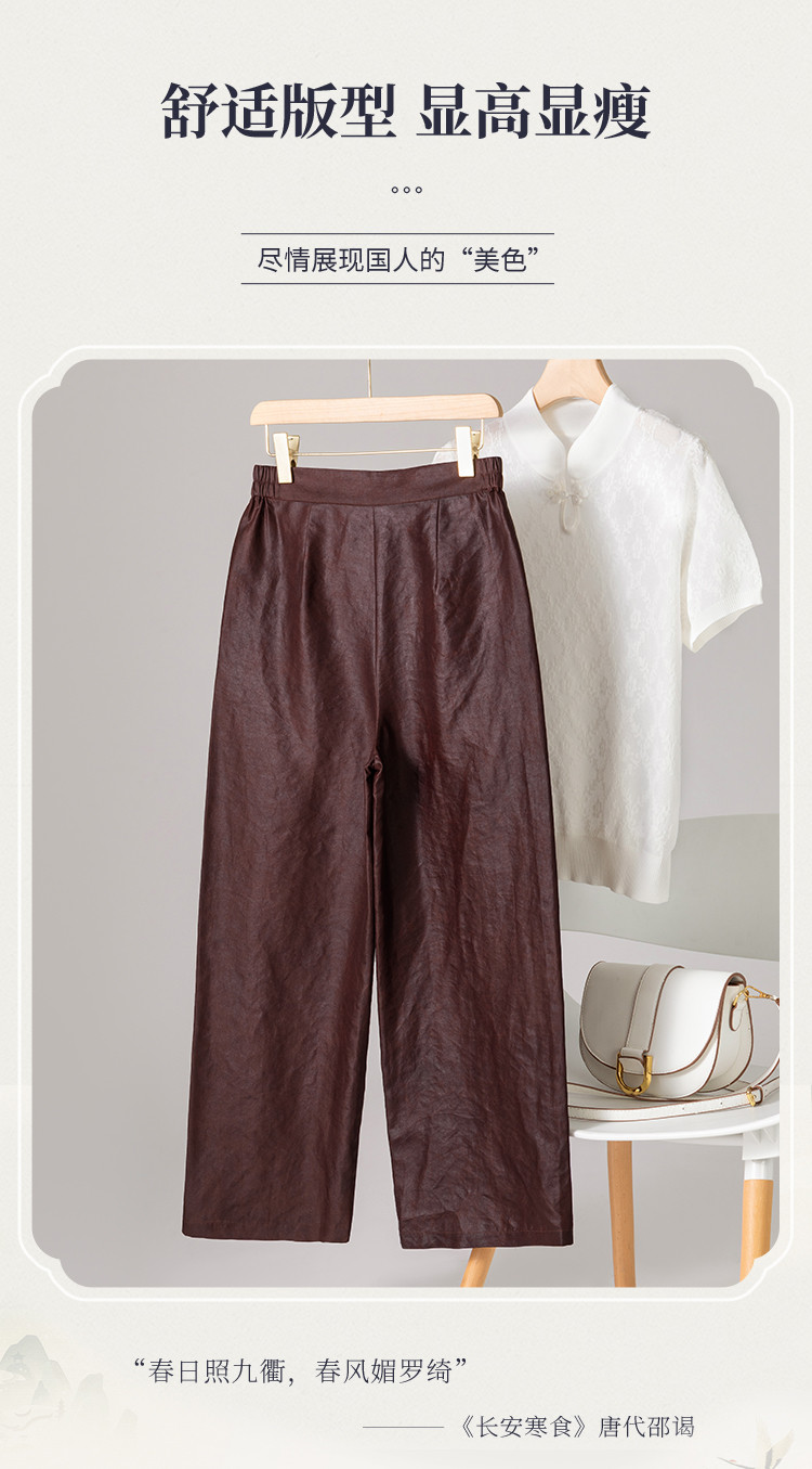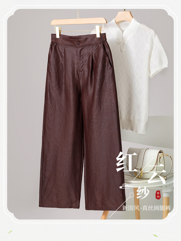 商品名称:【红云纱】国风新中式龟裂纹真丝阔腿裤100%桑蚕丝休闲裤女 519379